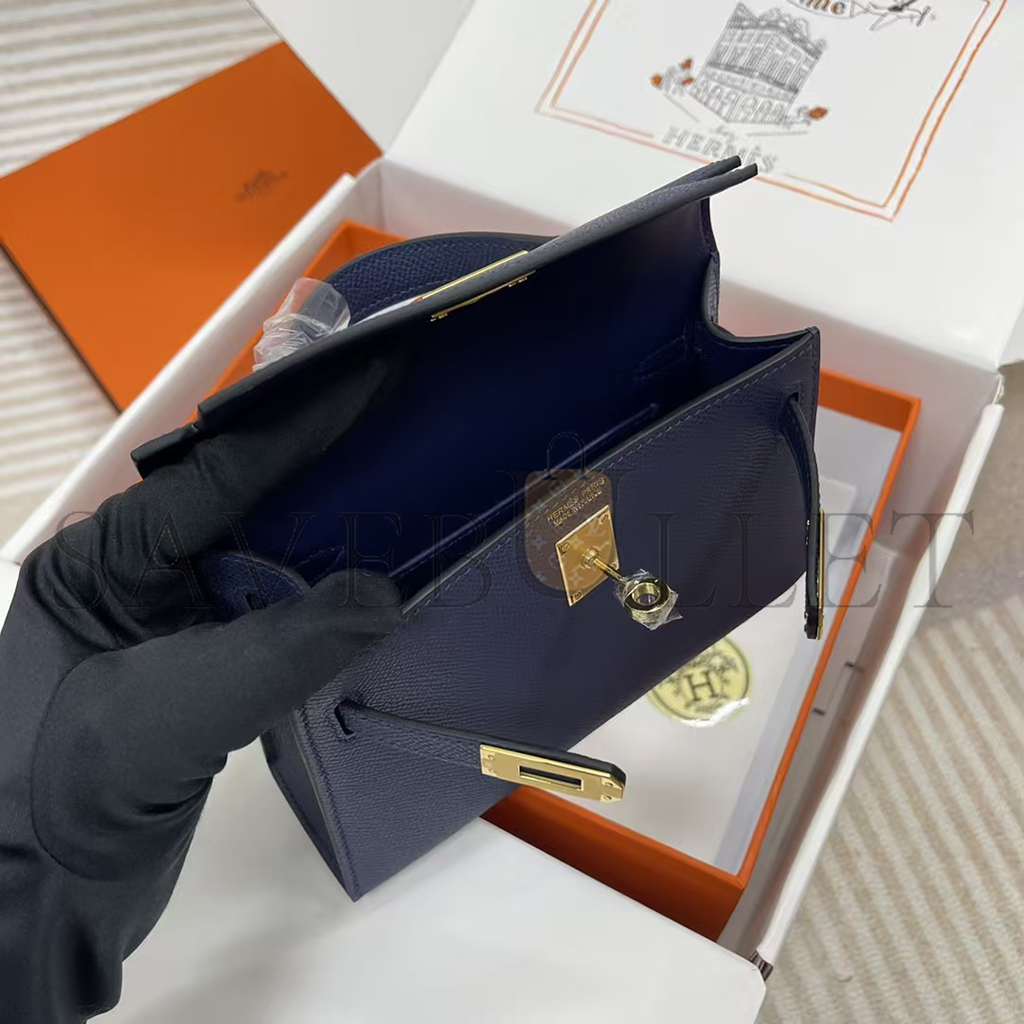 HERMÈS KELLY MINI II BLUE SAPPHIRE EPSOM (19*12*5.5cm)
