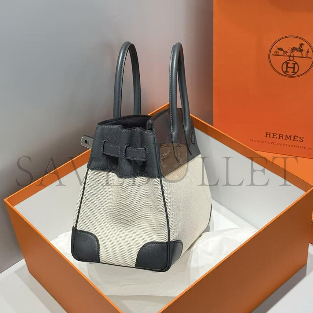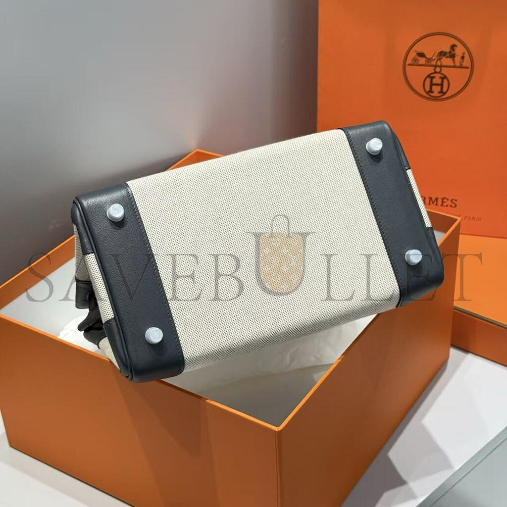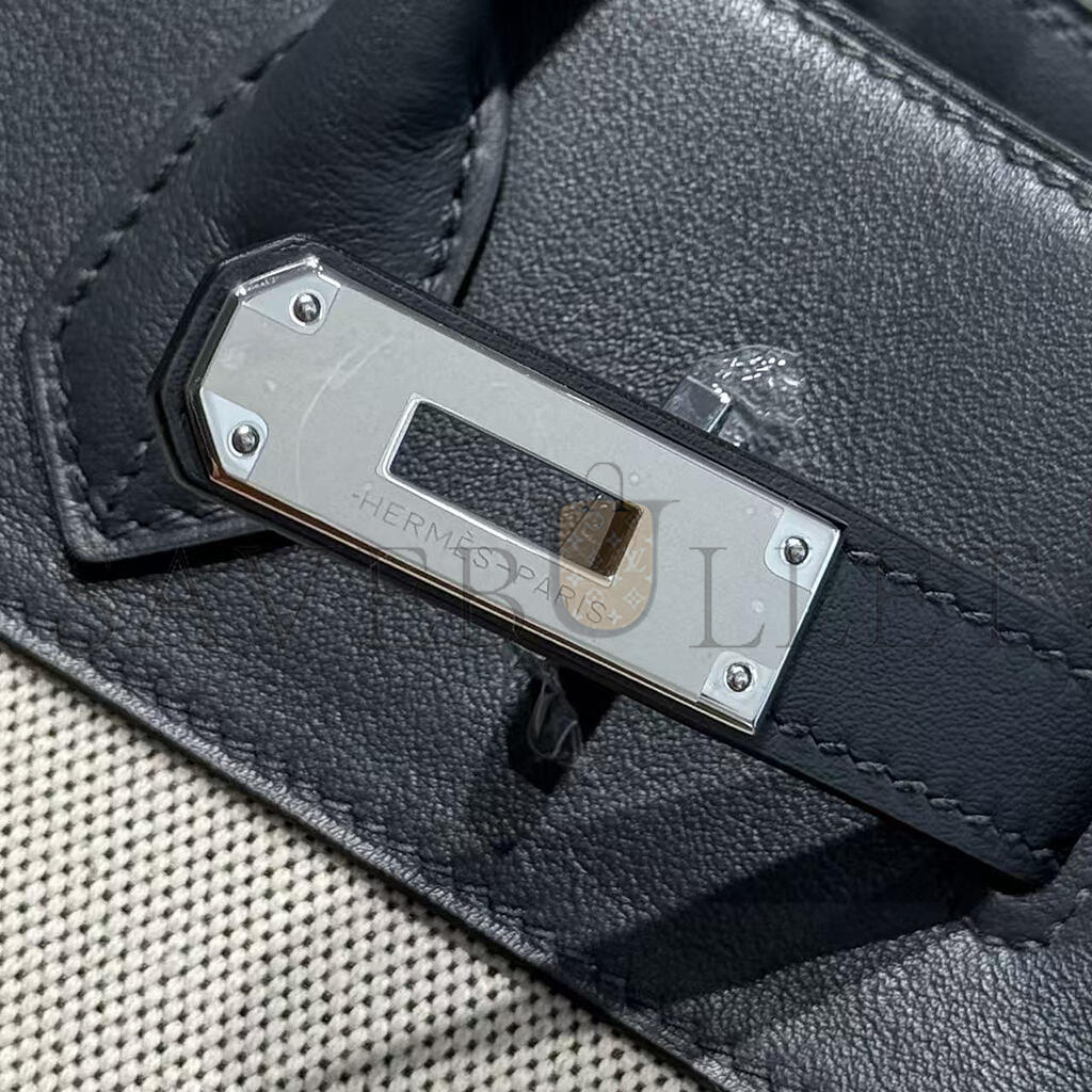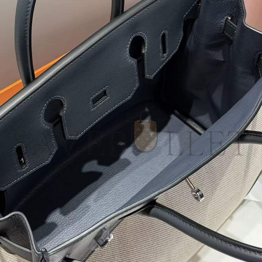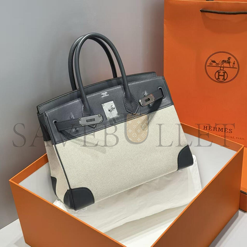 HERMÈS BIRKIN 30 BLACK SWIFT AND ECRU TOILE PALLADIUM HARDWARE (30*22*15cm)