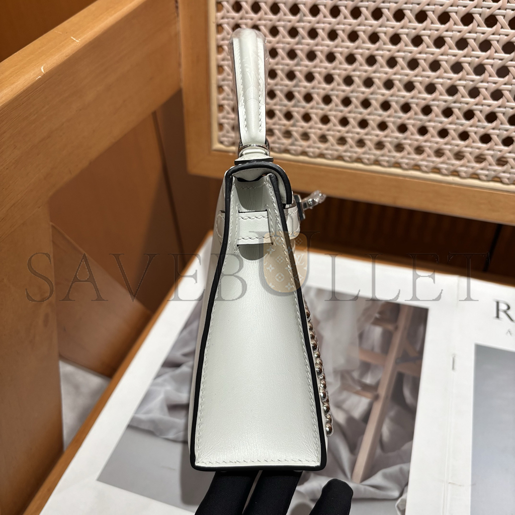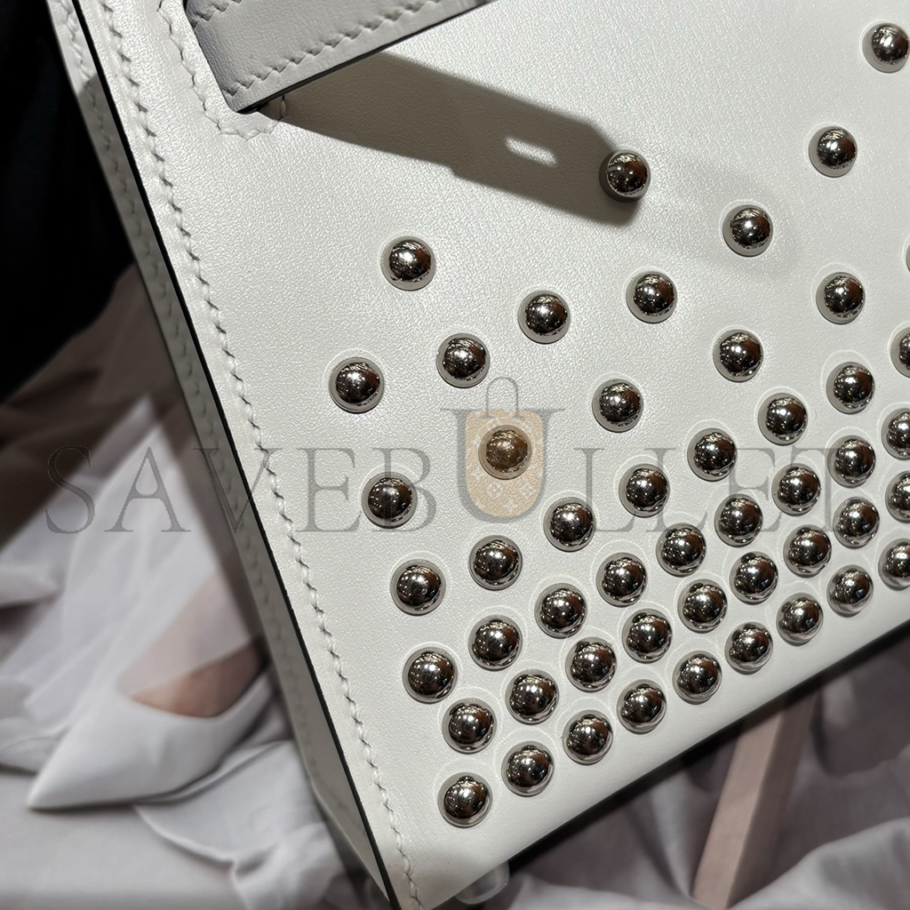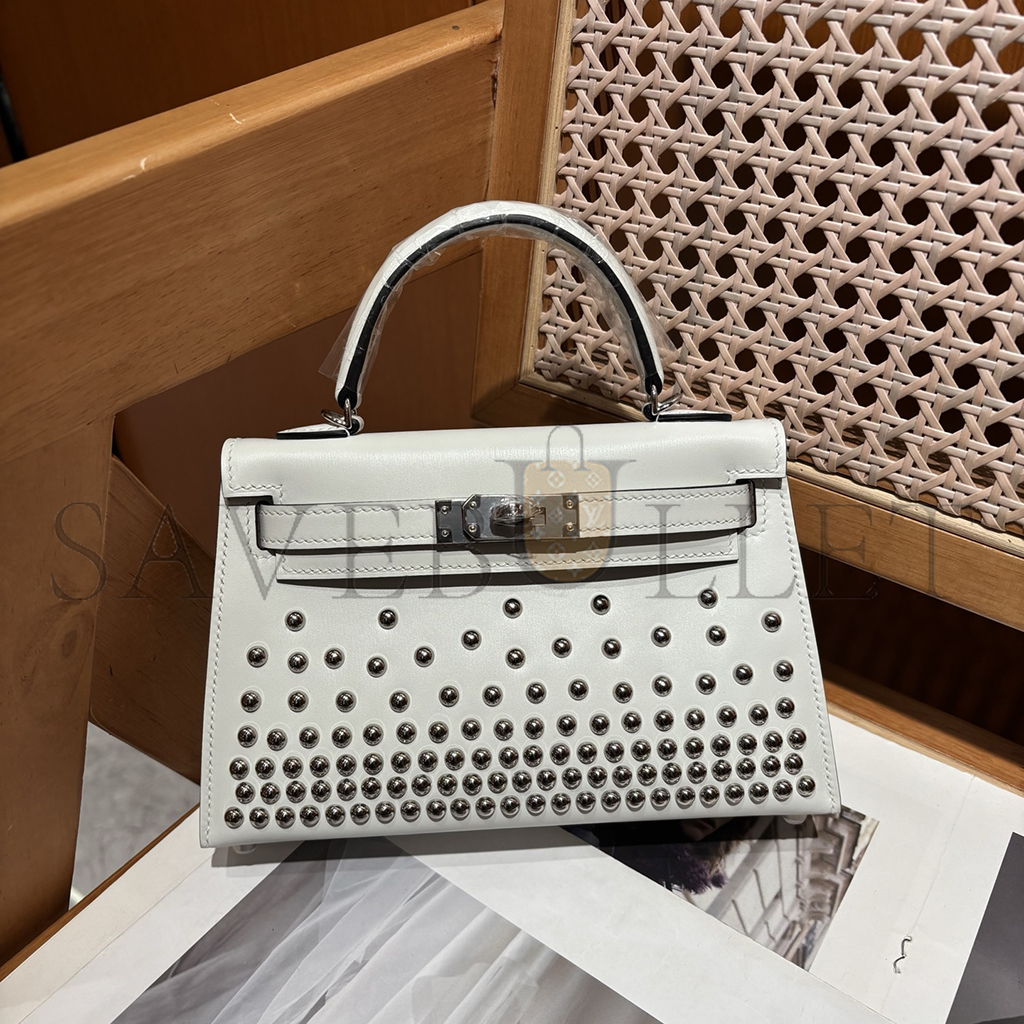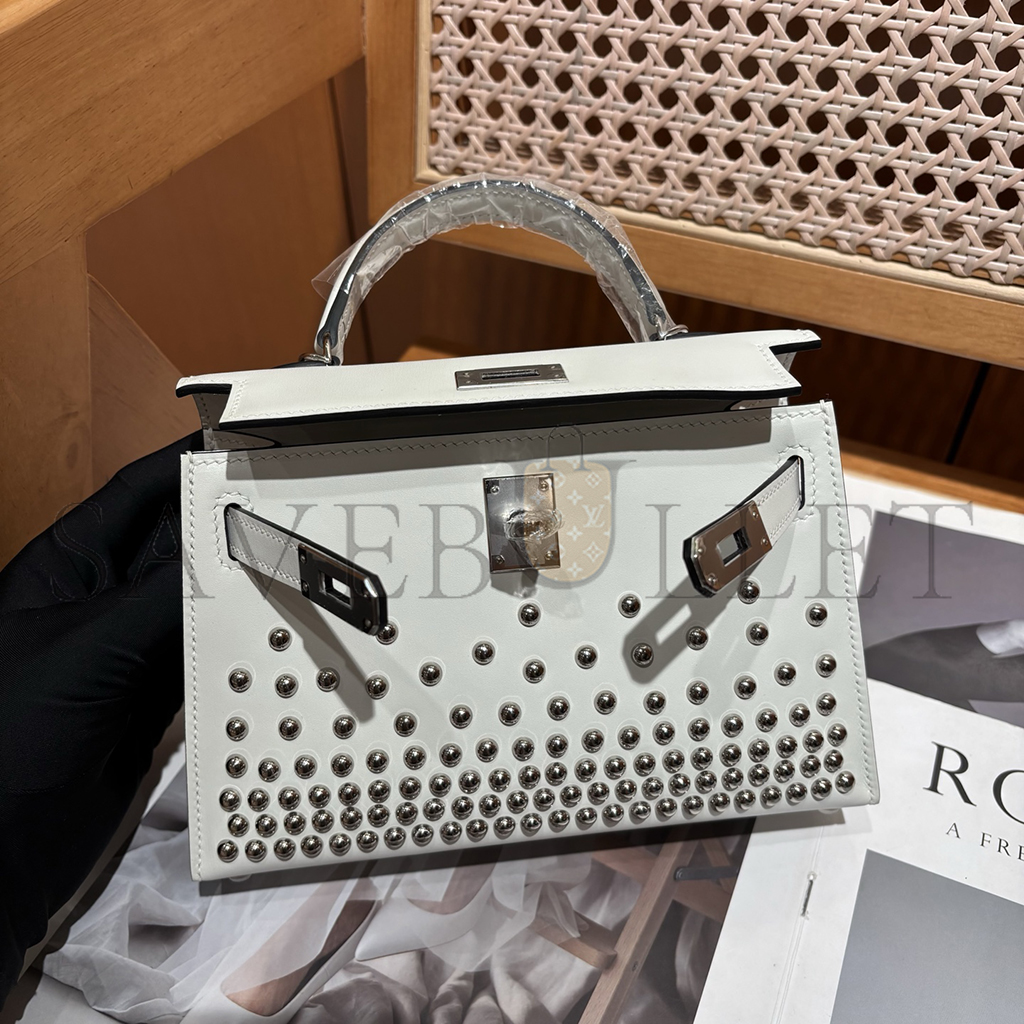 HERMES MINI KELLY BOX STUDDED PALLADIUM HARDWARE (19*12*5.5cm)