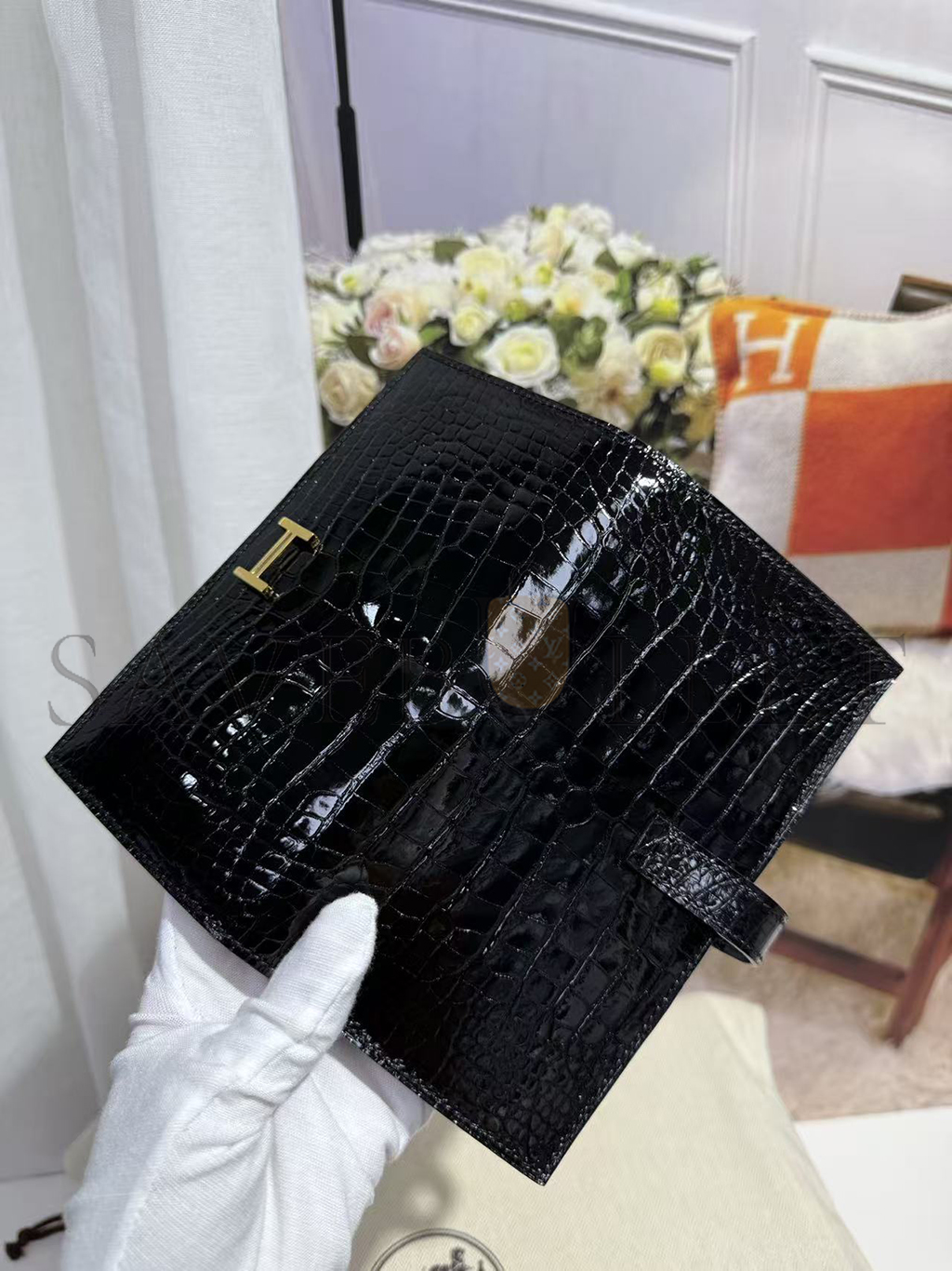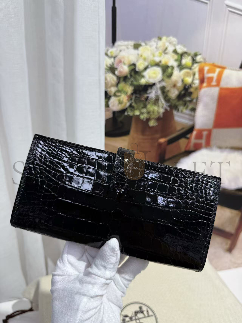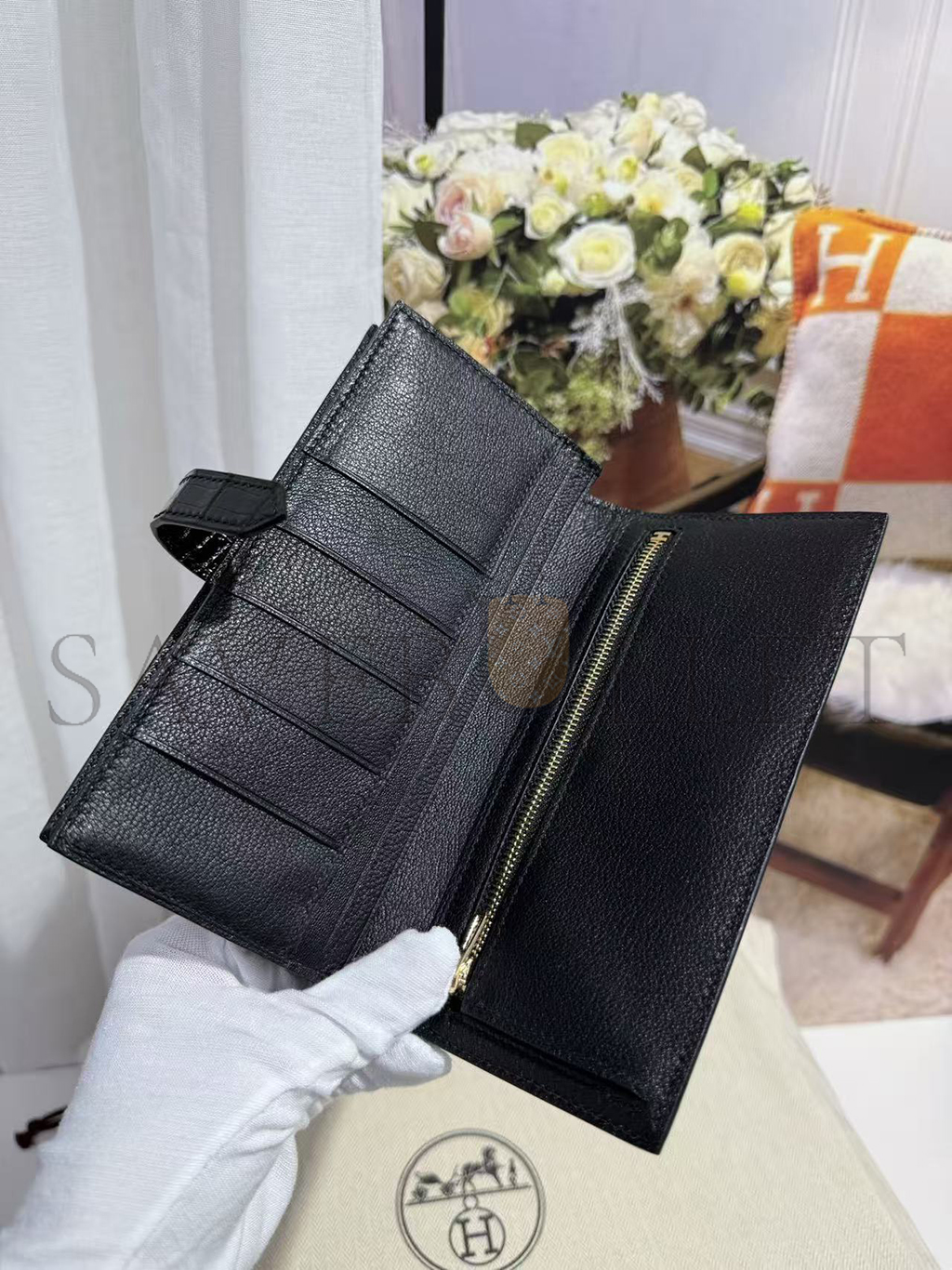 HERMES SHINY ALLIGATOR BEARN WALLET BLEU MARINE (17.5*9cm)