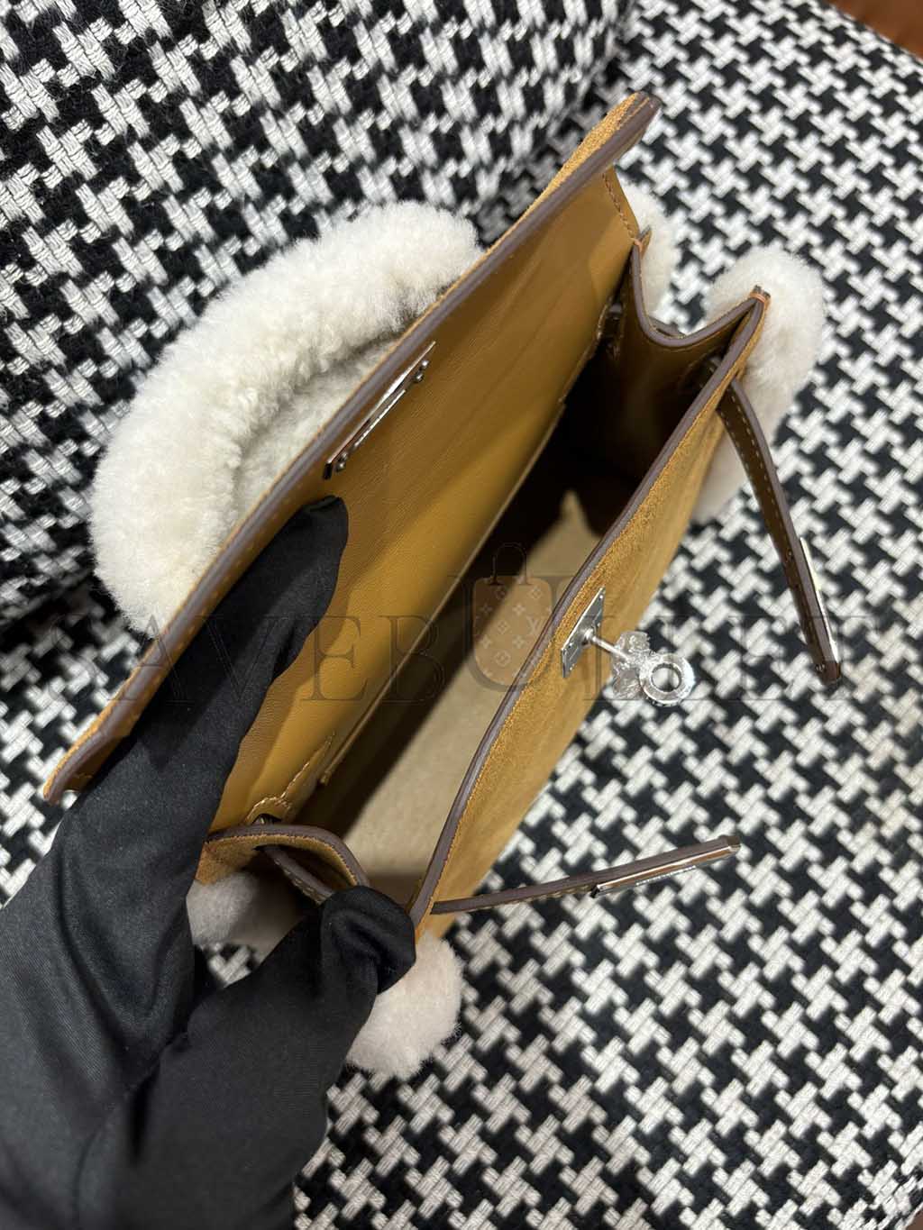HERMÈS TEDDY KELLY 20 CHAMOIS SHEARLING AND SWIFT PALLADIUM (20*15*8cm)