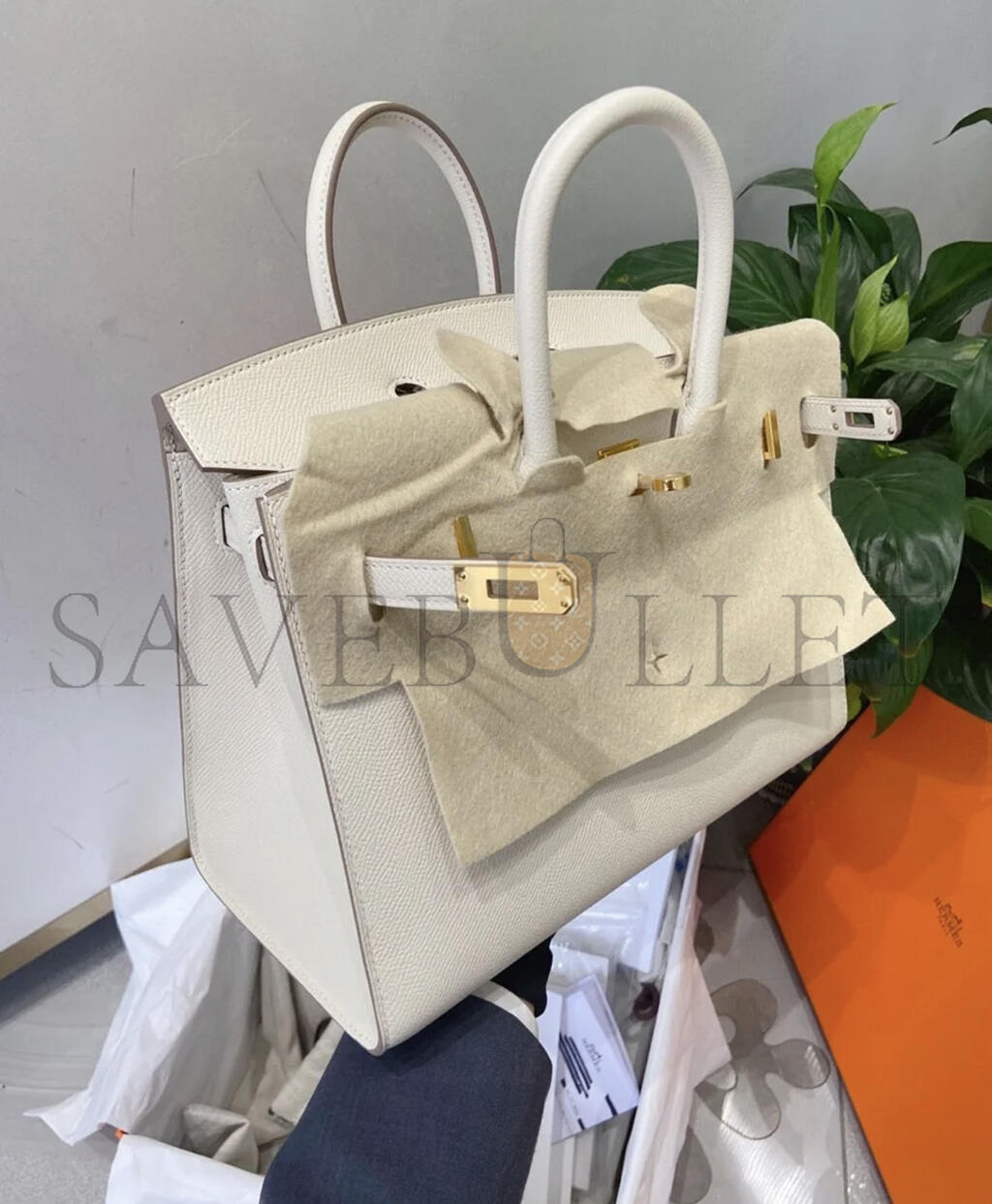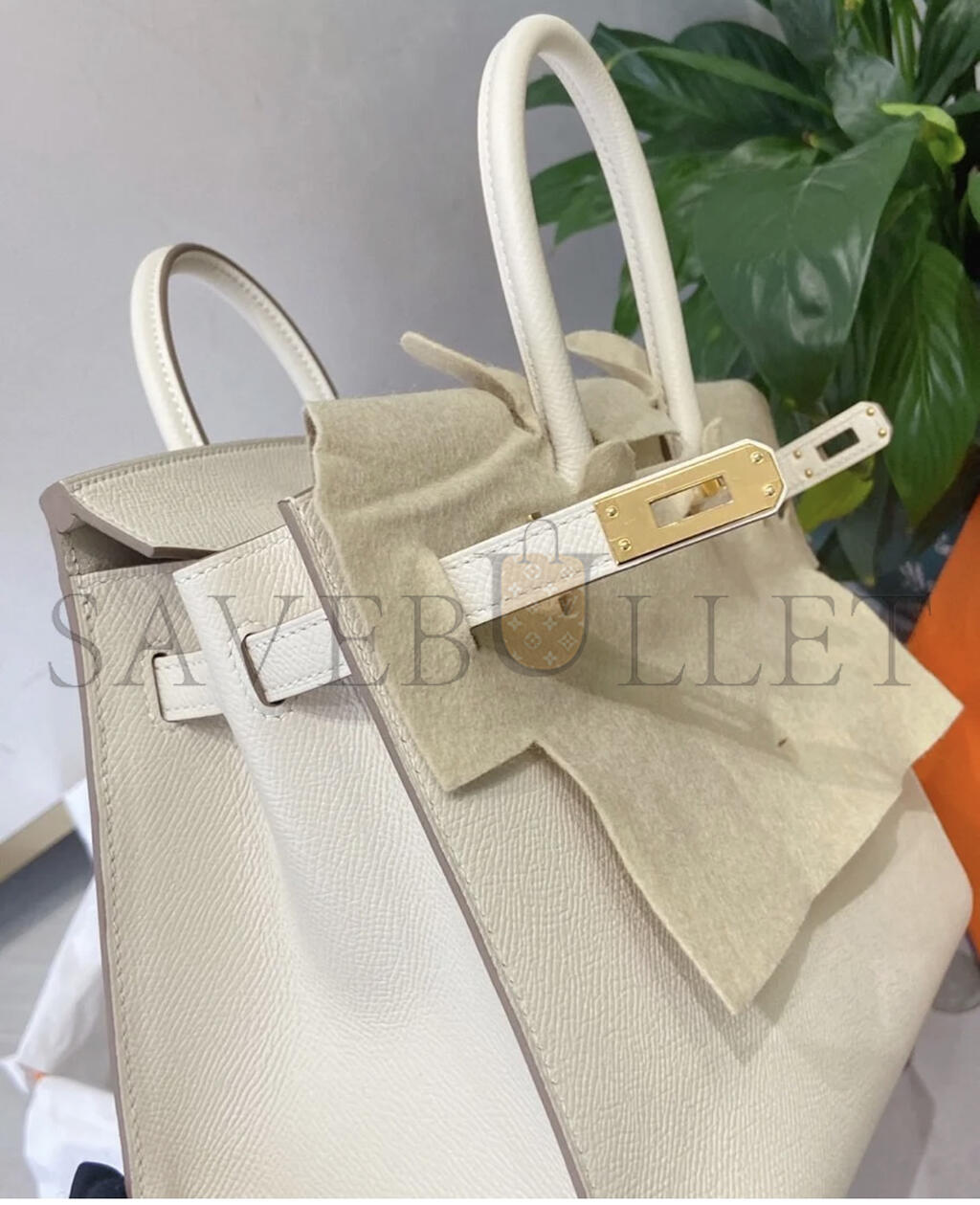 HERMES BIRKIN 25 SELLIER EPSOM CRAIE GOLD HARDWARE H079234VCC10 (25*20*13cm)