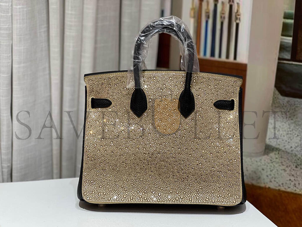 HERMÈS MASTER BIRKIN 25 BLACK TOGO WITH RHINESTONE SUEDE GOLD HARDWARE (25*20*13cm)