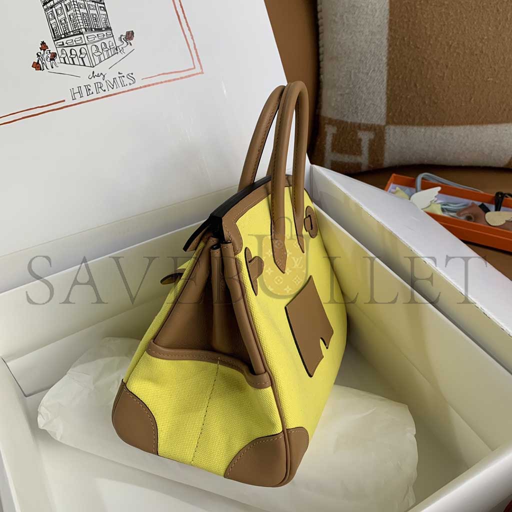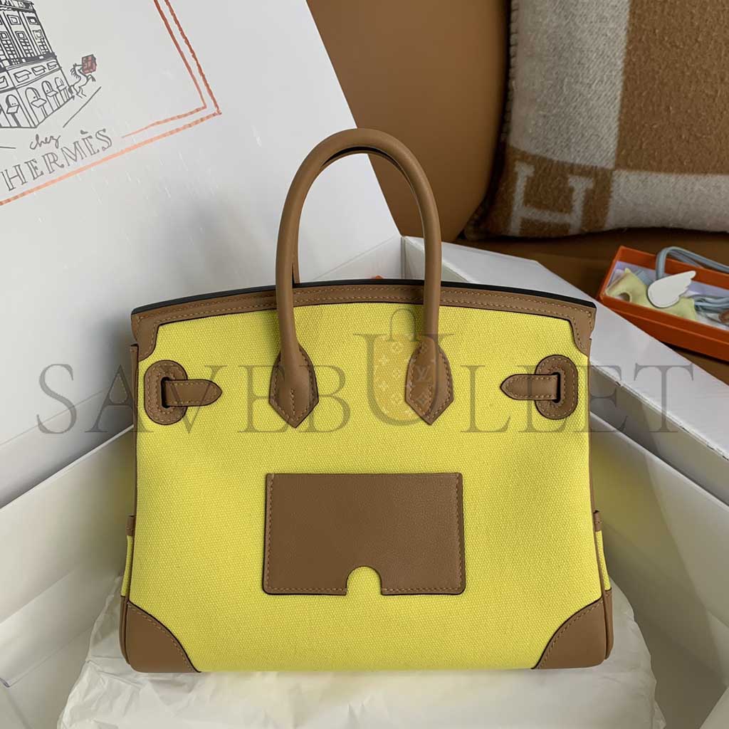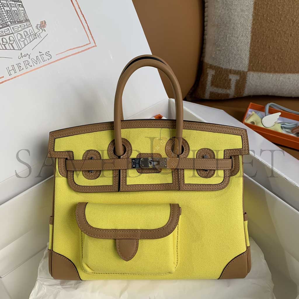 HERMÈS MASTER BIRKIN CARGO 25 TOILE SWIFT JAUNE CITRON CHAI (25*20*13cm)
