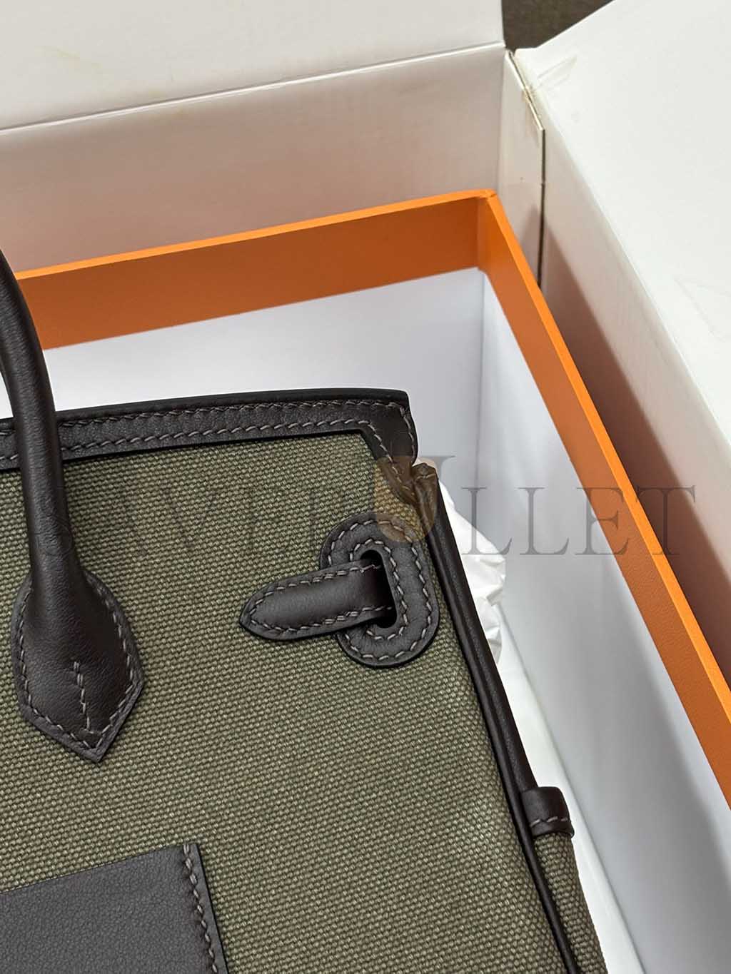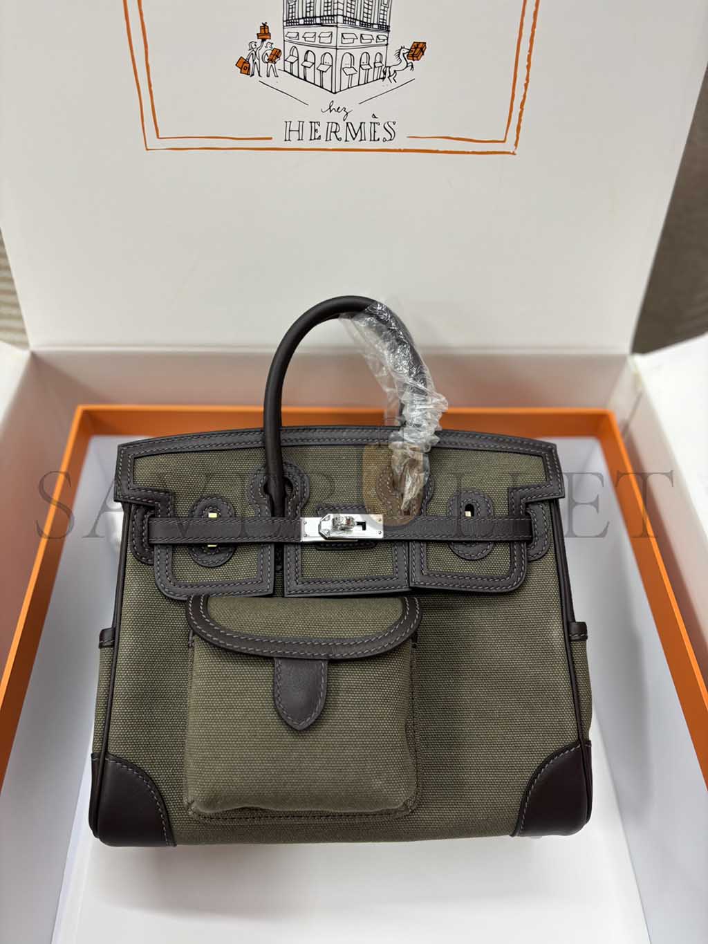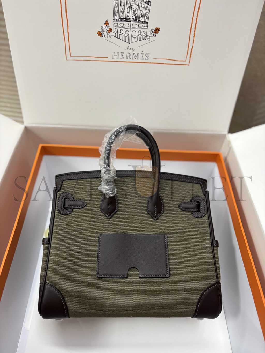 HERMÈS MASTER CARGO BIRKIN 25 CM DARK BRONZE EBENE WITH PALLADIUM CANVAS AND SWIFT LEATHER (25*20*13cm)