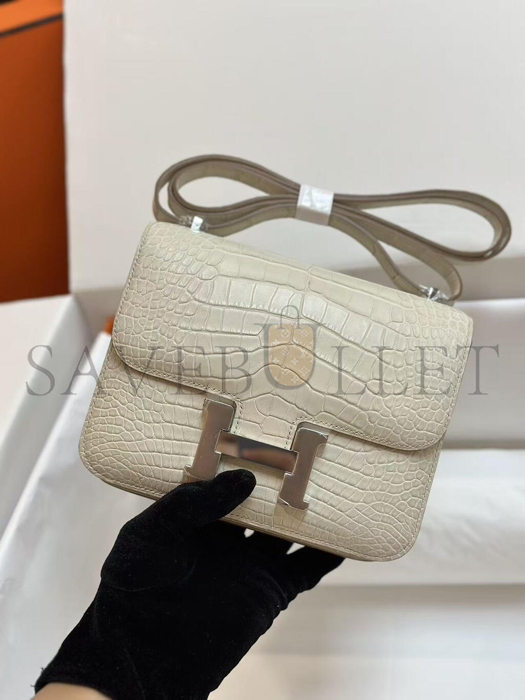 HERMES MASTER CONSTANCE 18 MATTE ALLIGATOR PALLADIUM HARDWARE (18*15*4cm)