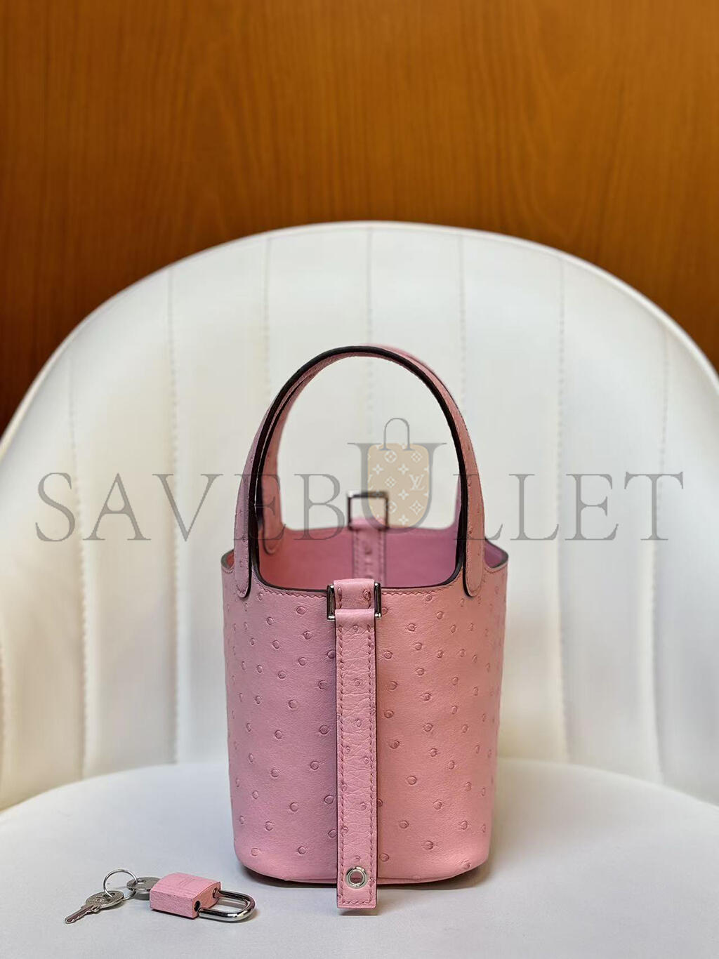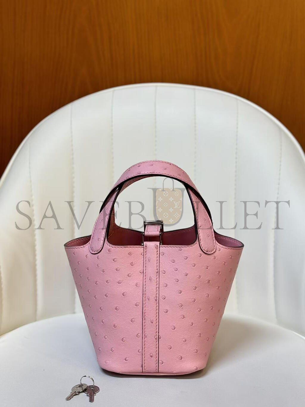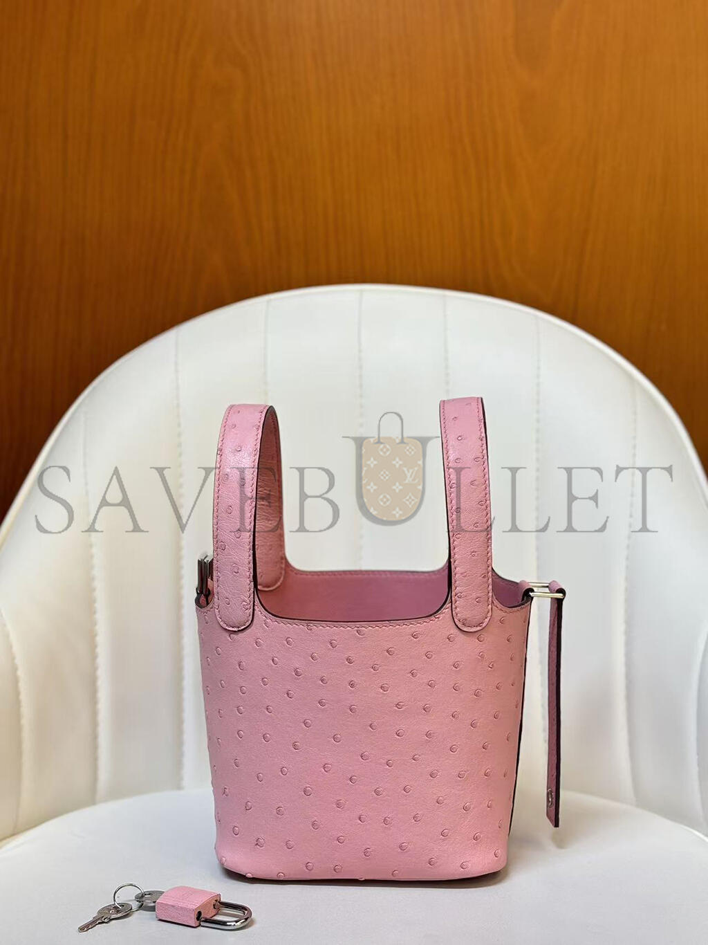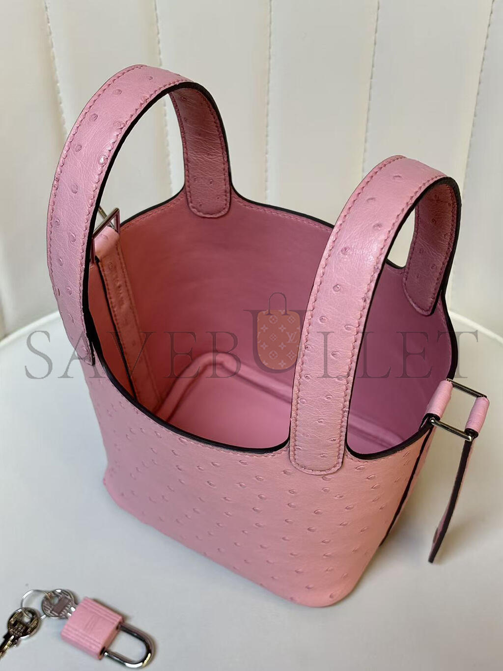 HERMÈS MASTER MICRO PICOTIN LOCK 14 BUBBLEGUM OSTRICH PALLADIUM HARDWARE (14*12*10cm)