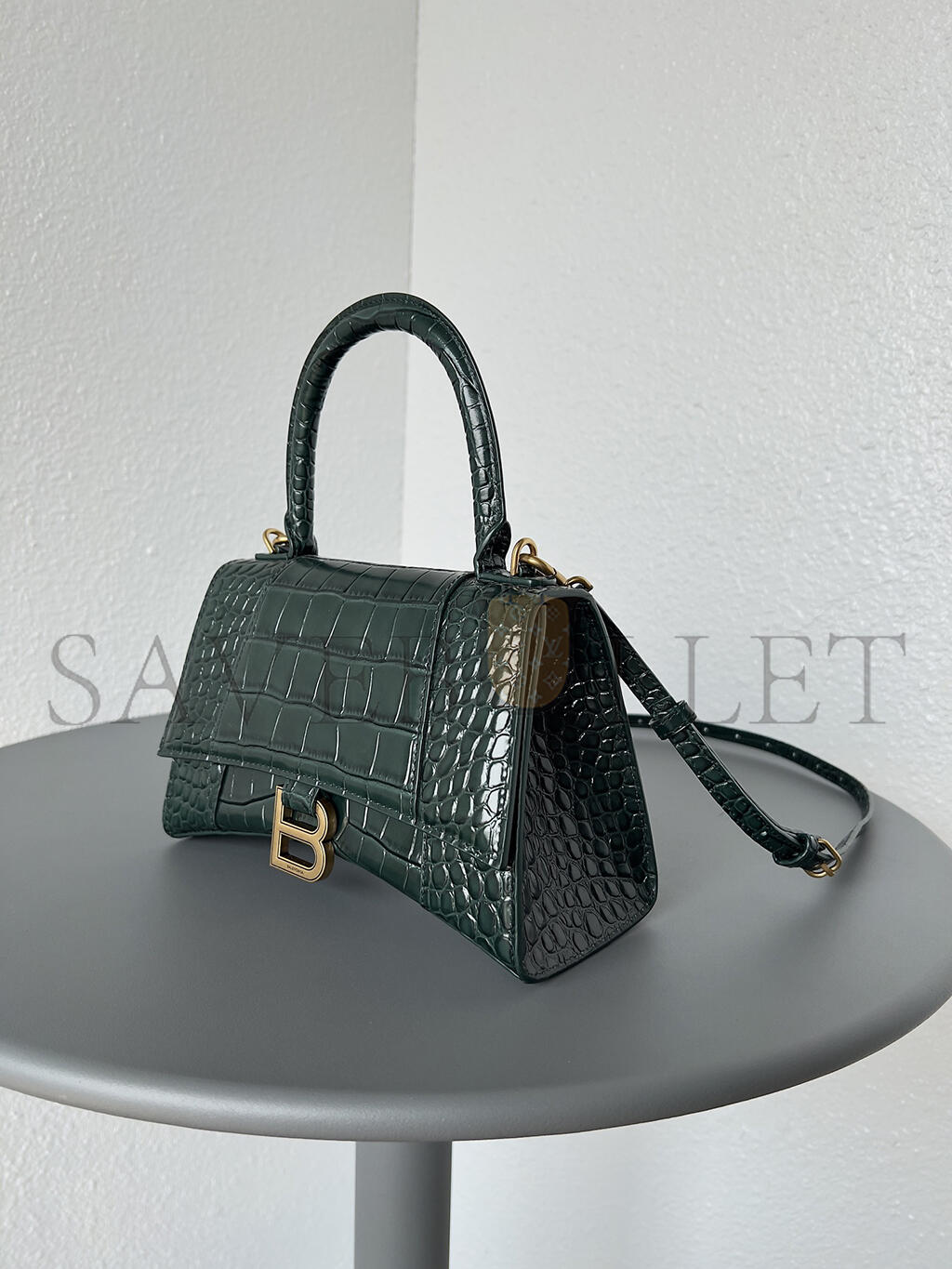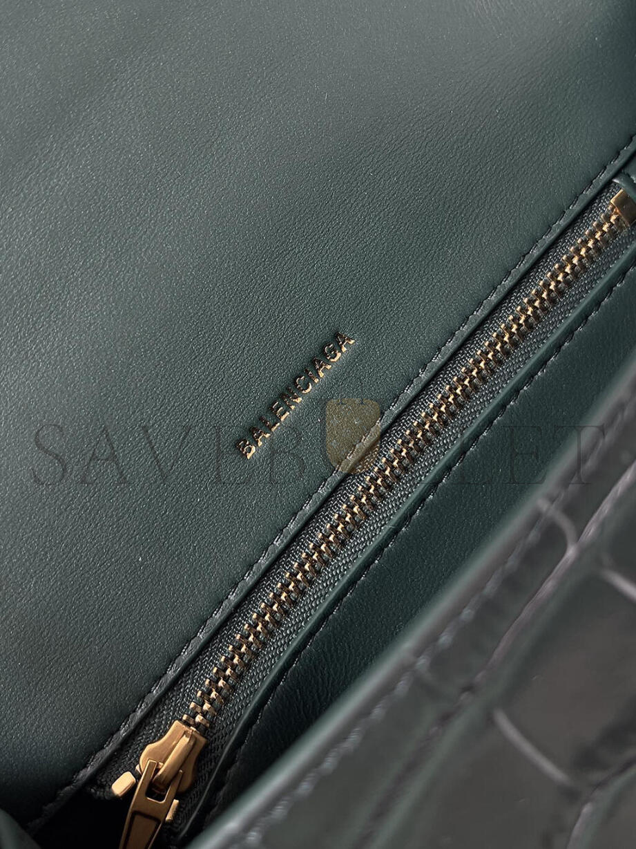 BALENCIAGA WOMEN'S HOURGLASS HANDBAG SMALL IN DARK GREEN 5935461LRGM3011 (22.9*15*9.9cm)