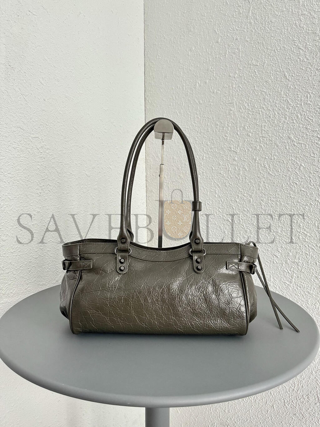 BALENCIAGA WOMEN'S LE CITY BAG EAST-WEST IN ARMY GREEN 8457042ABEK3258 (39.8*17.7*14.9cm)