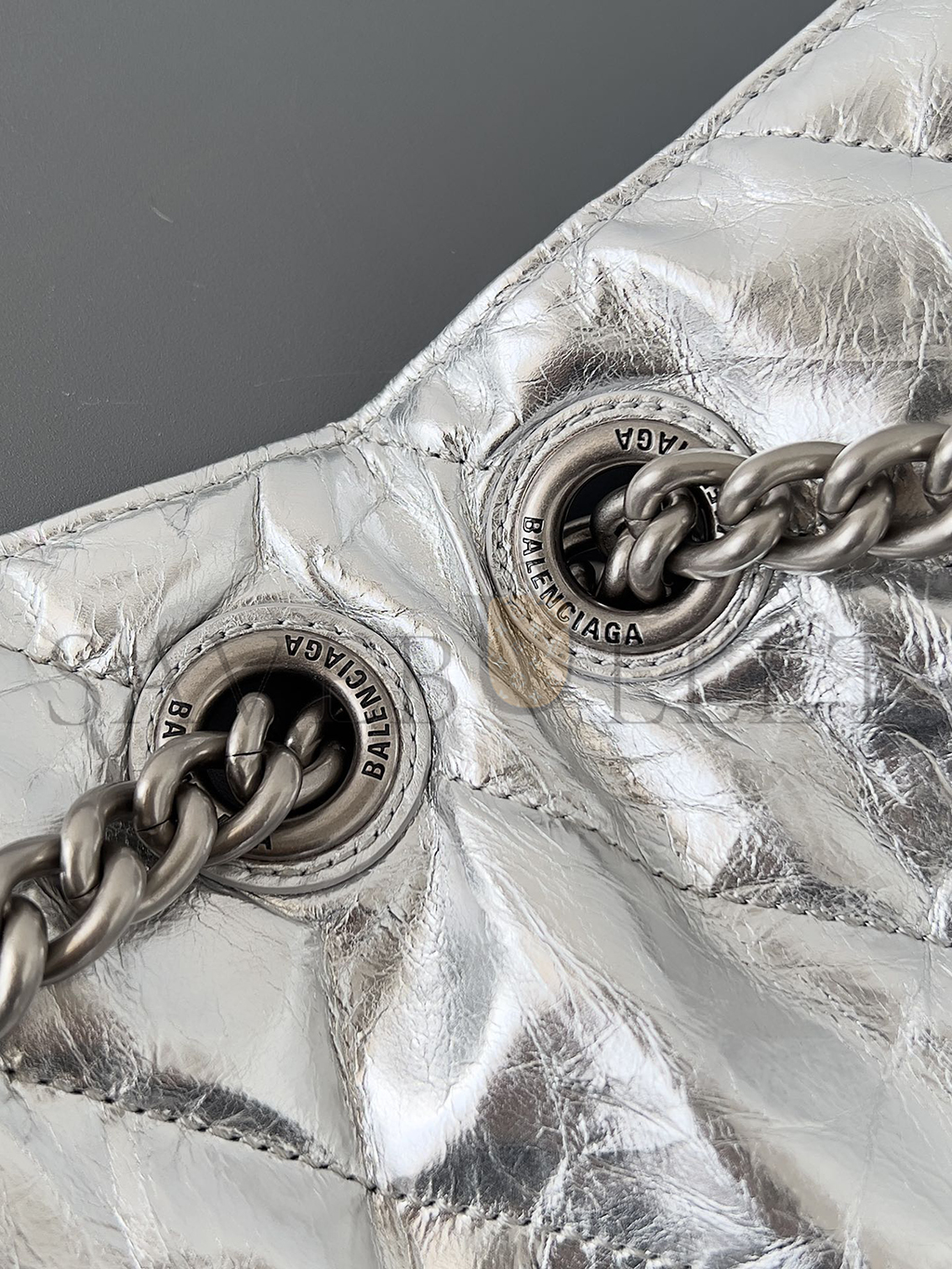 BALENCIAGA WOMEN'S CRUSH CHAIN BAG IN MEDIUM SILVER 7163938110P528147 (31*19.8*6.9cm)