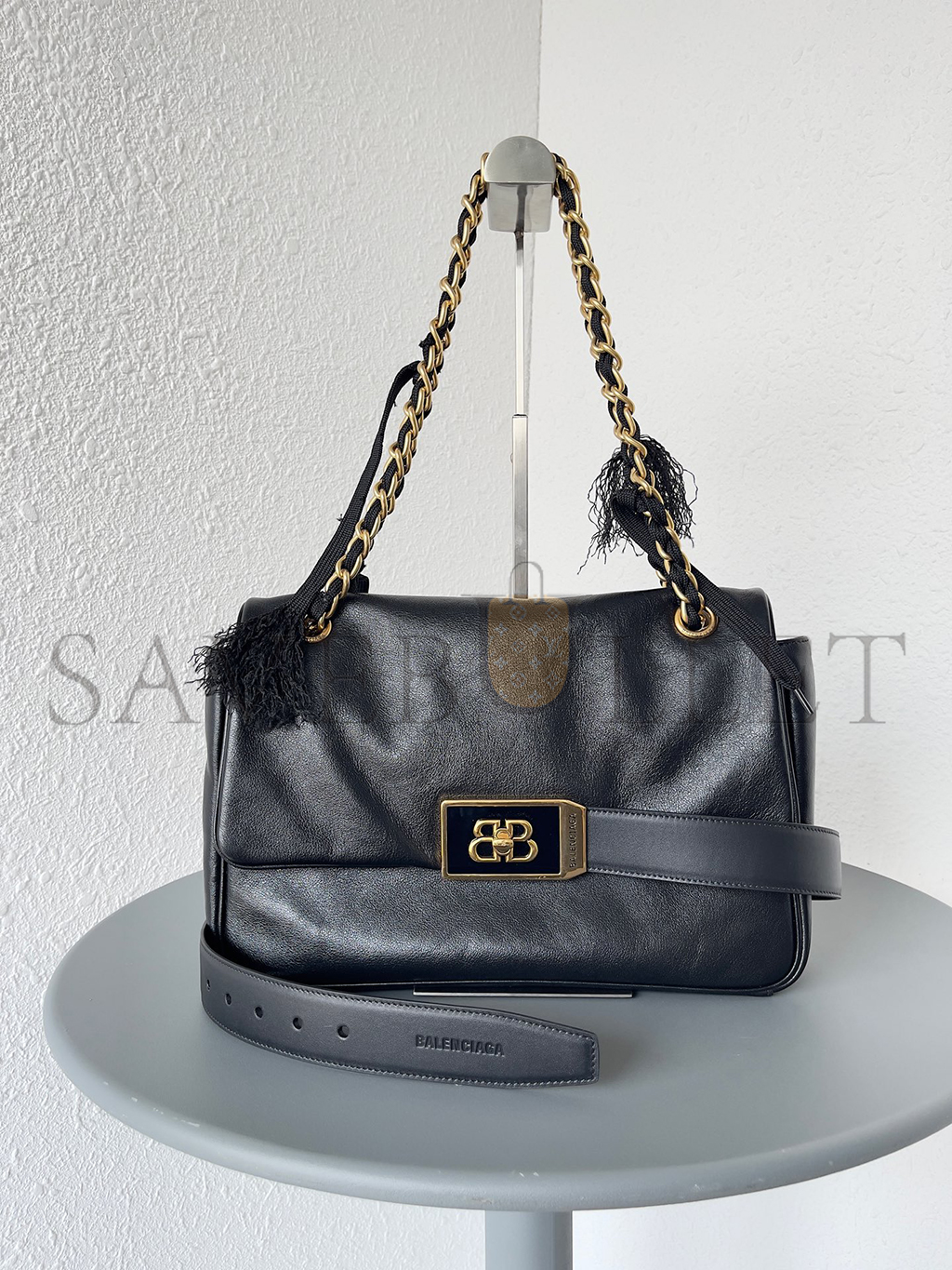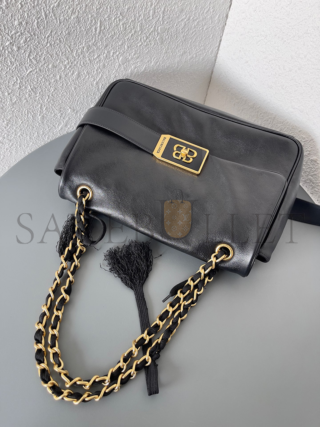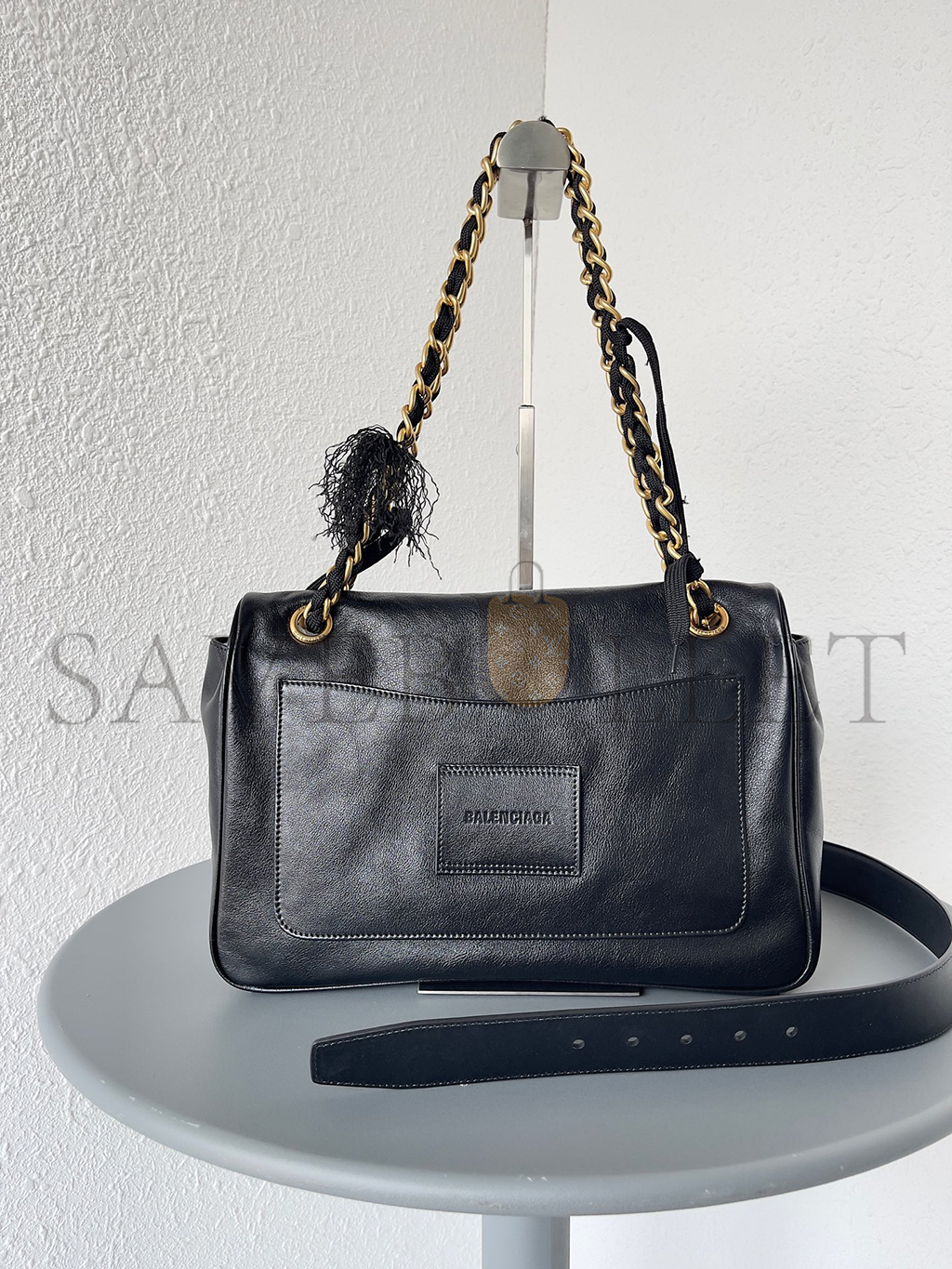 BALENCIAGA WOMEN'S MODU FLAP CHAIN BAG IN BLACK 8117812ABIW1060 (29.8*20*8.8cm)