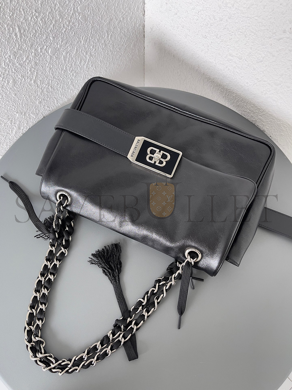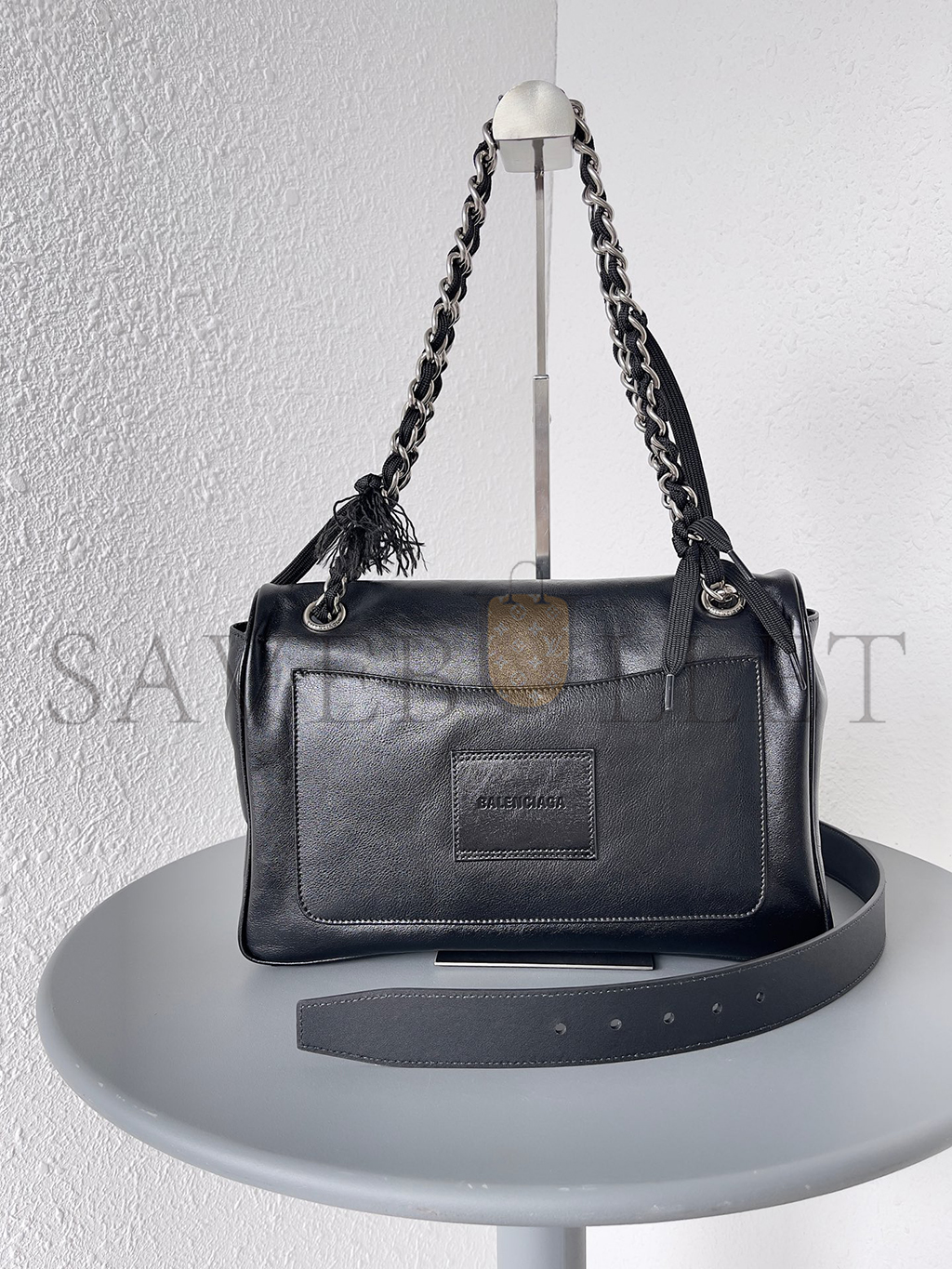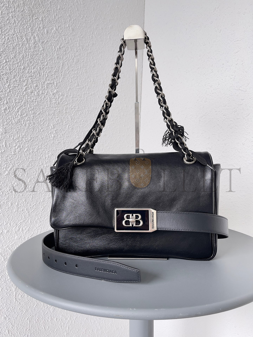 BALENCIAGA WOMEN'S MODU FLAP CHAIN BAG IN BLACK 8117812ABIV1060 (29.8*20*8.8cm)