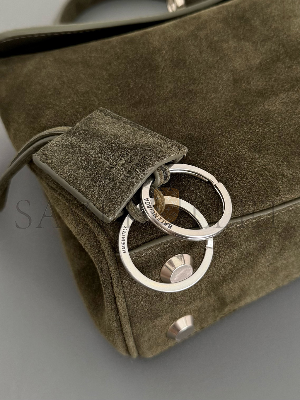 BALENCIAGA WOMEN'S RODEO HANDBAG MINI IN SUEDE KHAKI 7954562AA3V1000 (22.8*9.9*8.3cm)