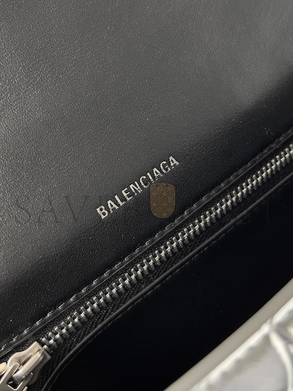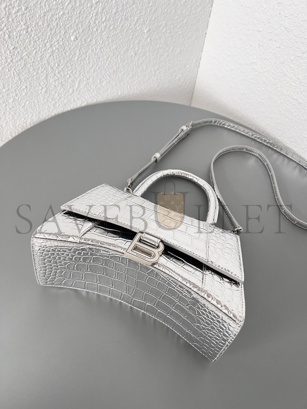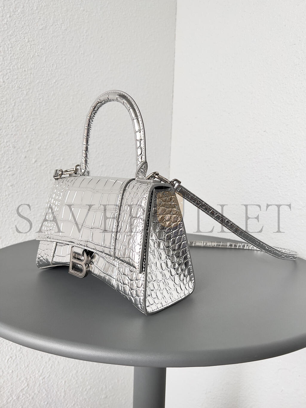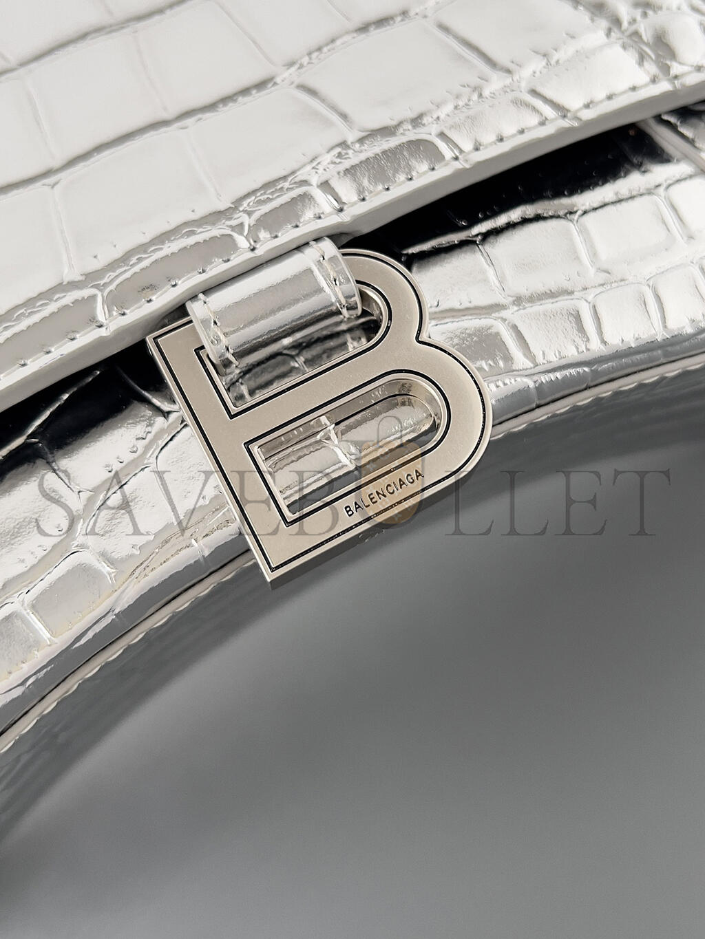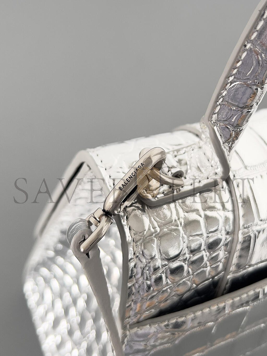 BALENCIAGA WOMEN'S HOURGLASS HANDBAG SMALL IN SILVER 5935461LRGN1000 (22.9*15*9.9cm)