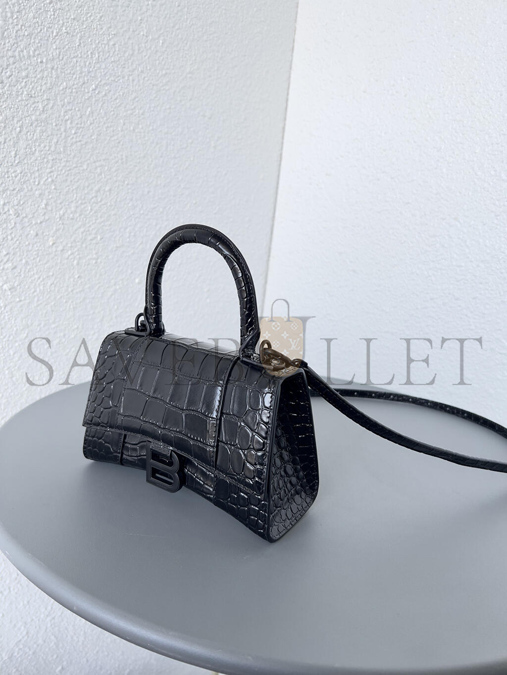 BALENCIAGA WOMEN'S HOURGLASS HANDBAG XS IN BLACK 5928331LR671000 (18.8*13*7.9cm)
