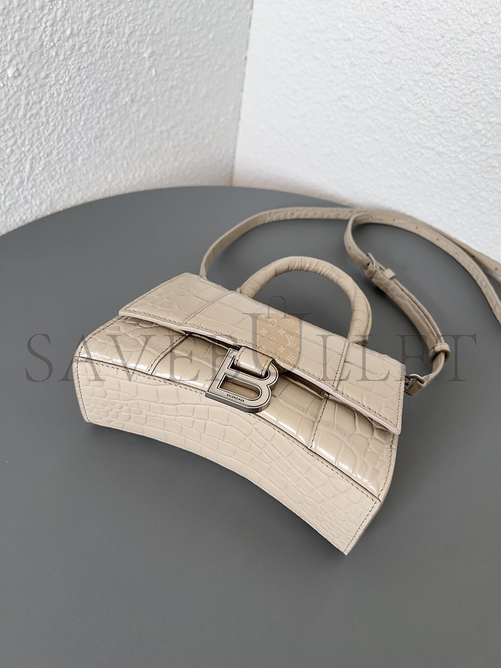 BALENCIAGA WOMEN'S HOURGLASS HANDBAG XS IN BEIGE GRAY 5928331LL6Y3712 (18.8*13*7.9cm)