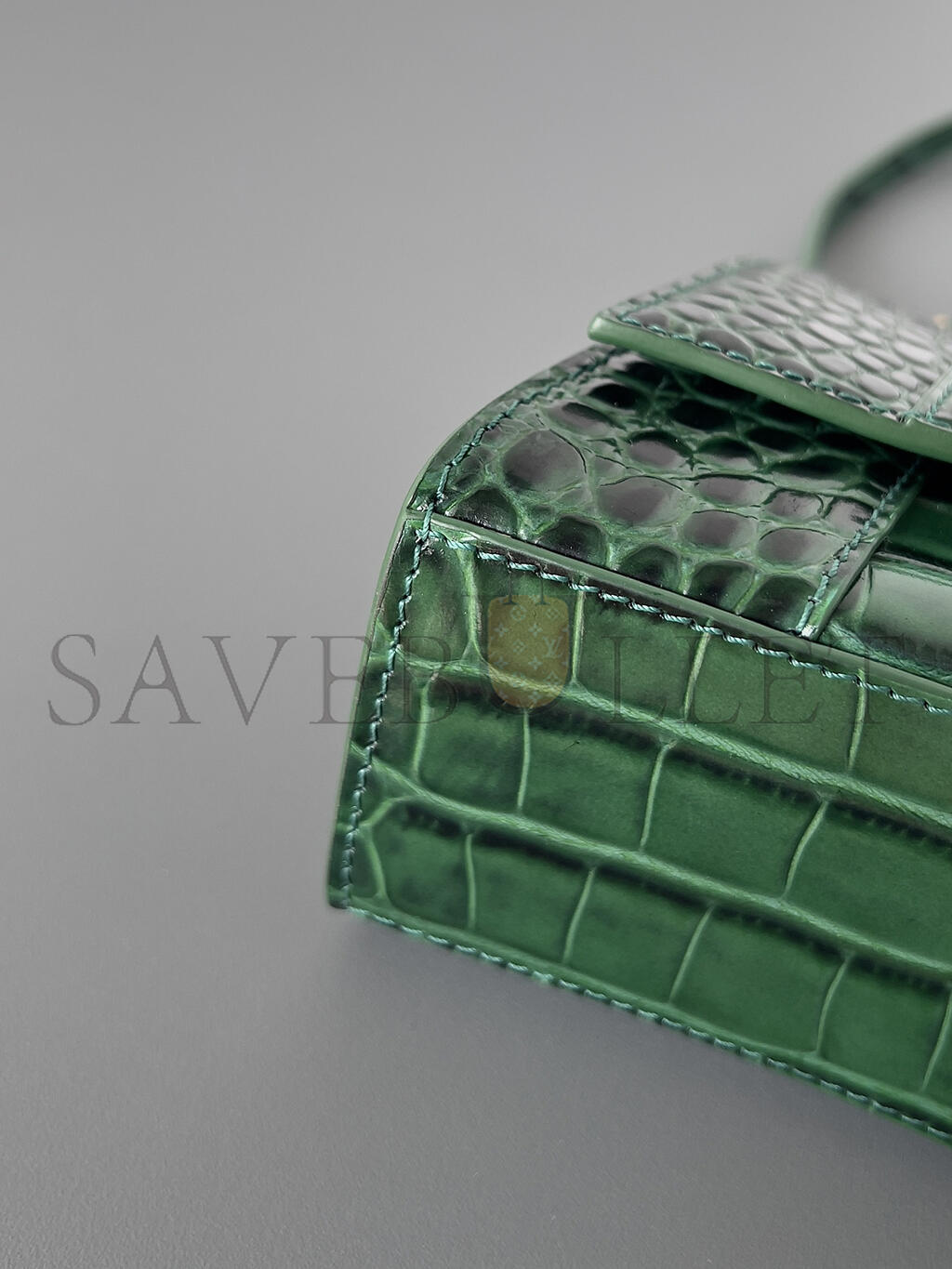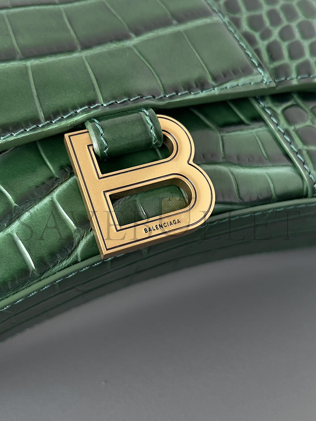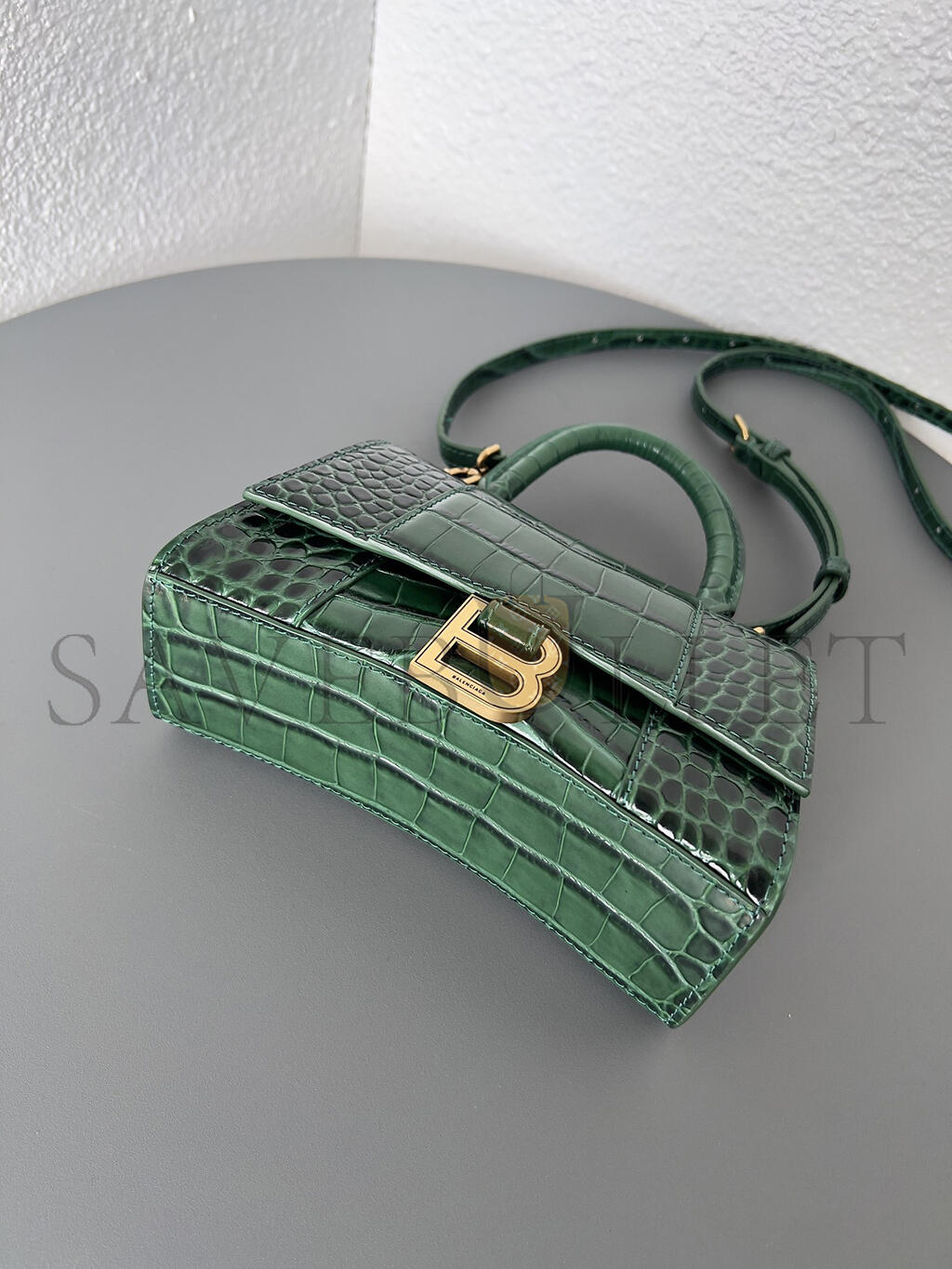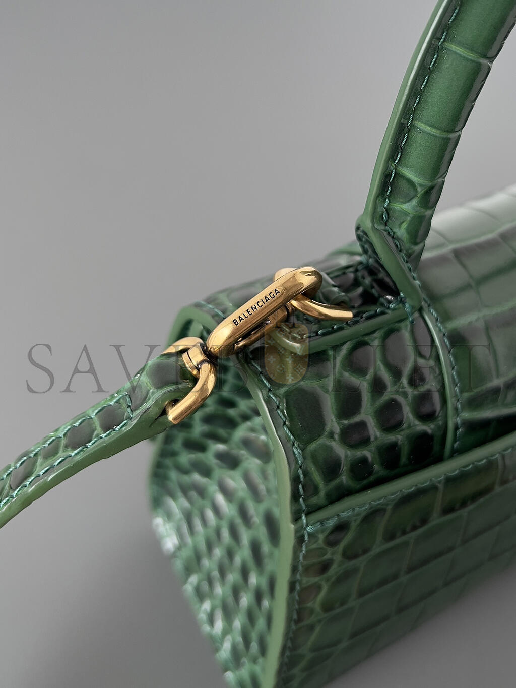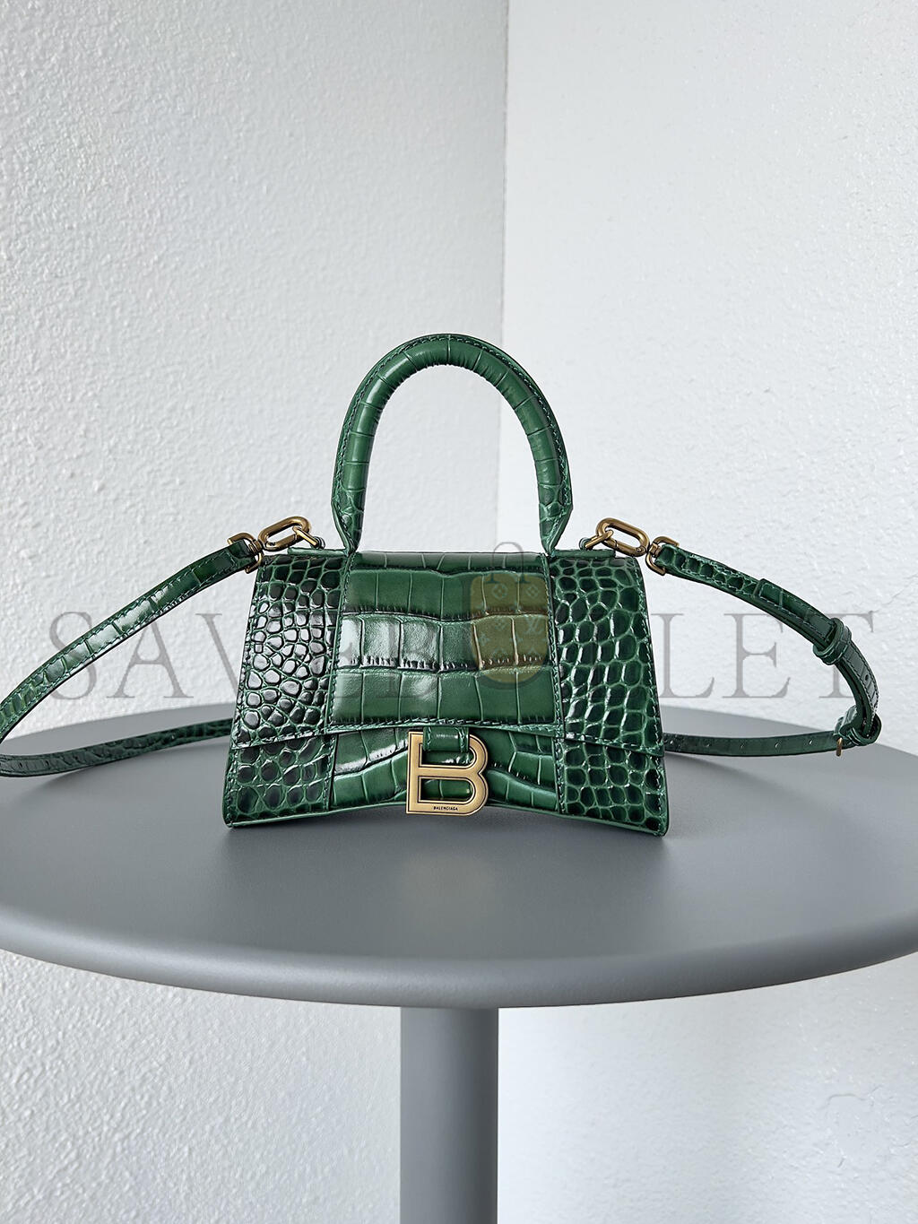 BALENCIAGA WOMEN'S HOURGLASS HANDBAG XS IN GREEN 5928331LRGM2011 (18.8*13*7.9cm)