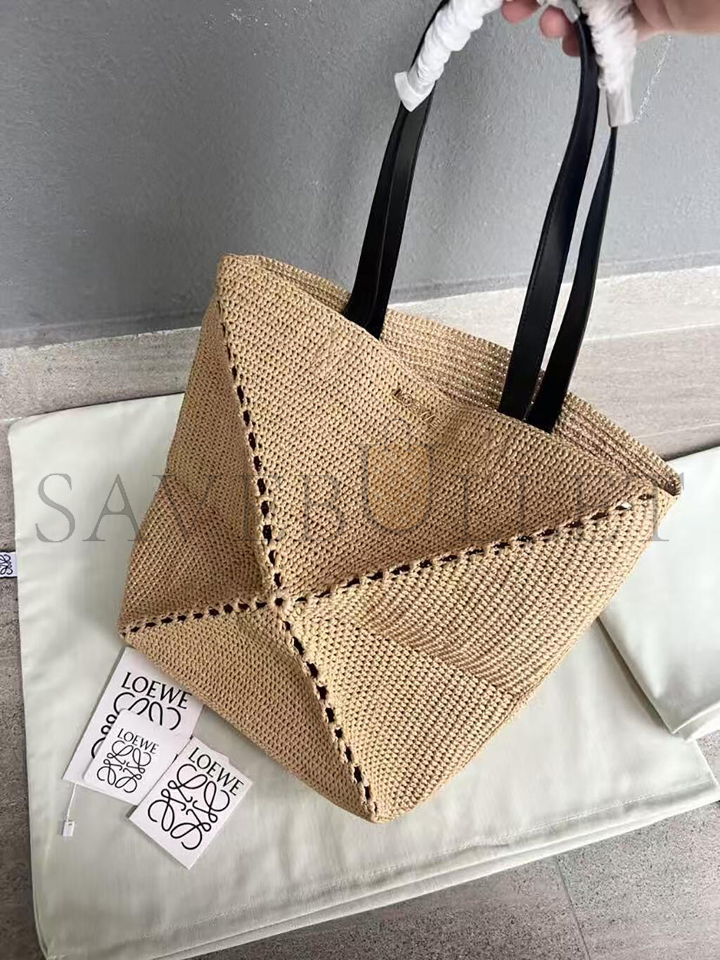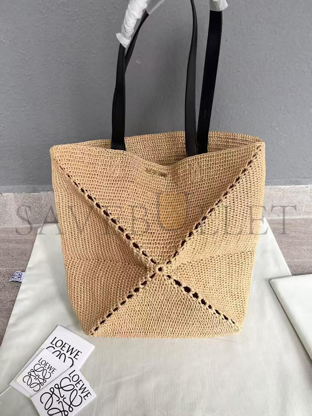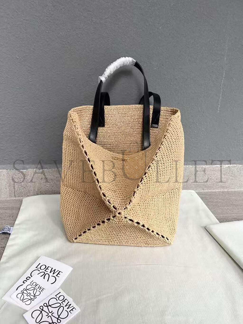 LOEWE XL PUZZLE FOLD TOTE IN RAFFIA B779Q18X18 (42*41*18cm)