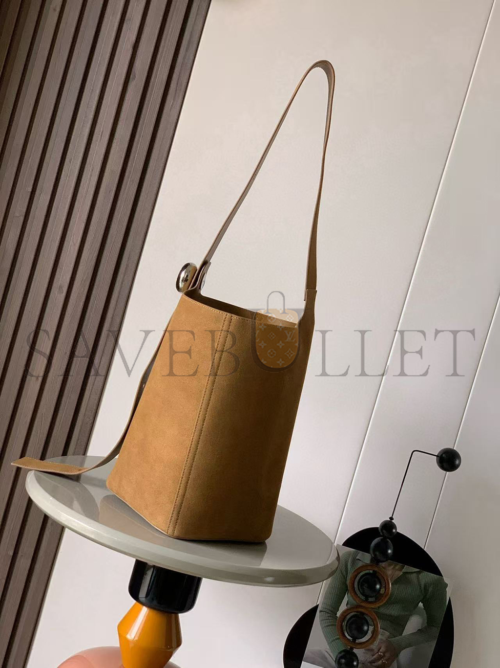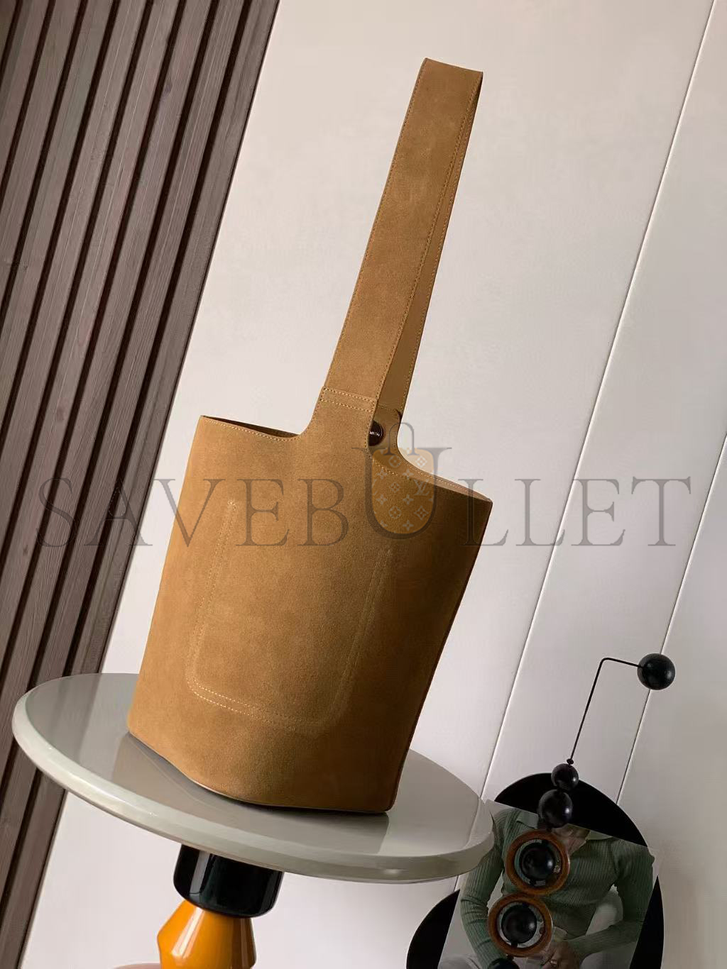 LOEWE LARGE PEBBLE BUCKET BAG IN SUEDE CALFSKIN BANBBBHX01 (33*28*28cm)