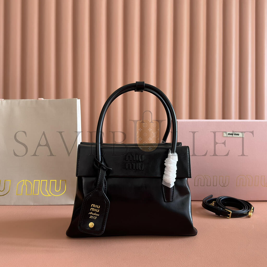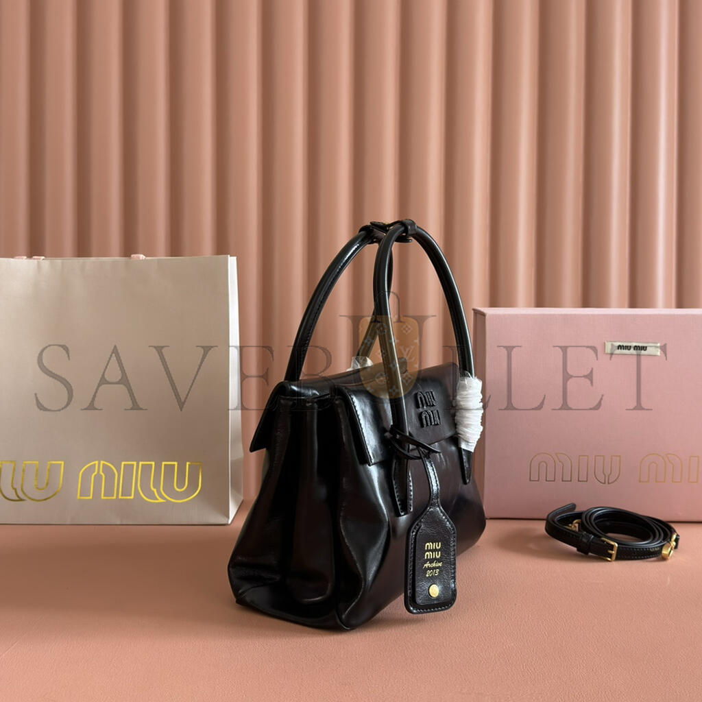 MIU MIU SMALL SOLITAIRE SHINY LEATHER BAG 5BA301 (23*18*10cm)