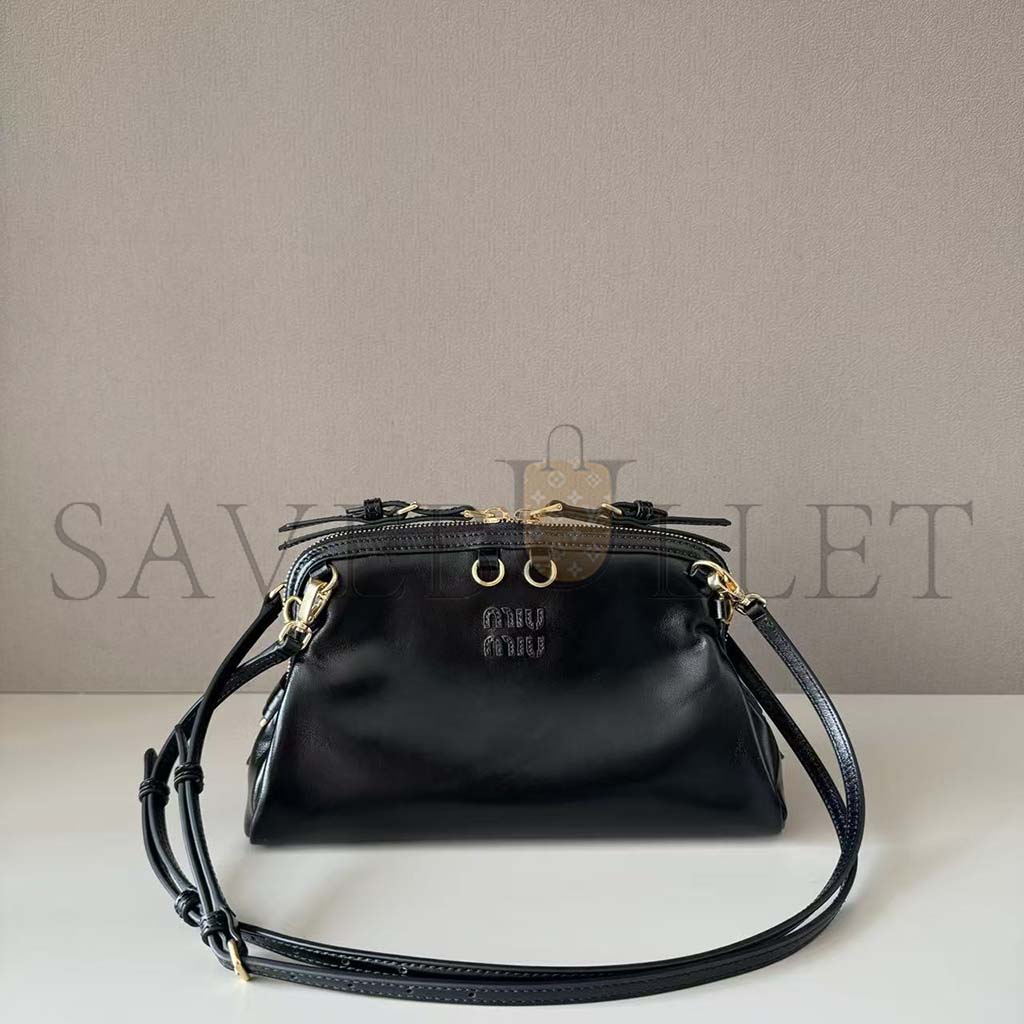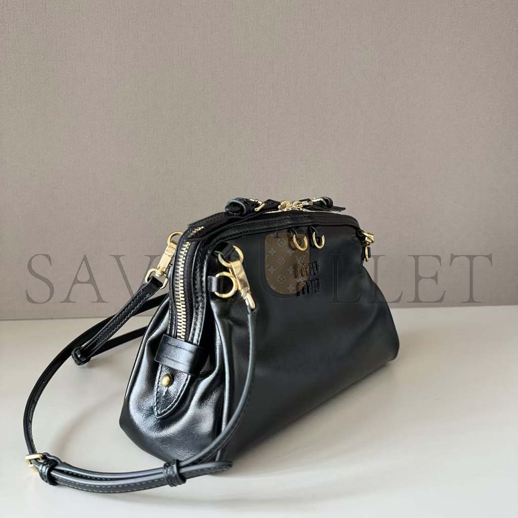 MIU MIU BLACK SOFTY SHINE BAG 5BF131 (24*14*8.5cm)