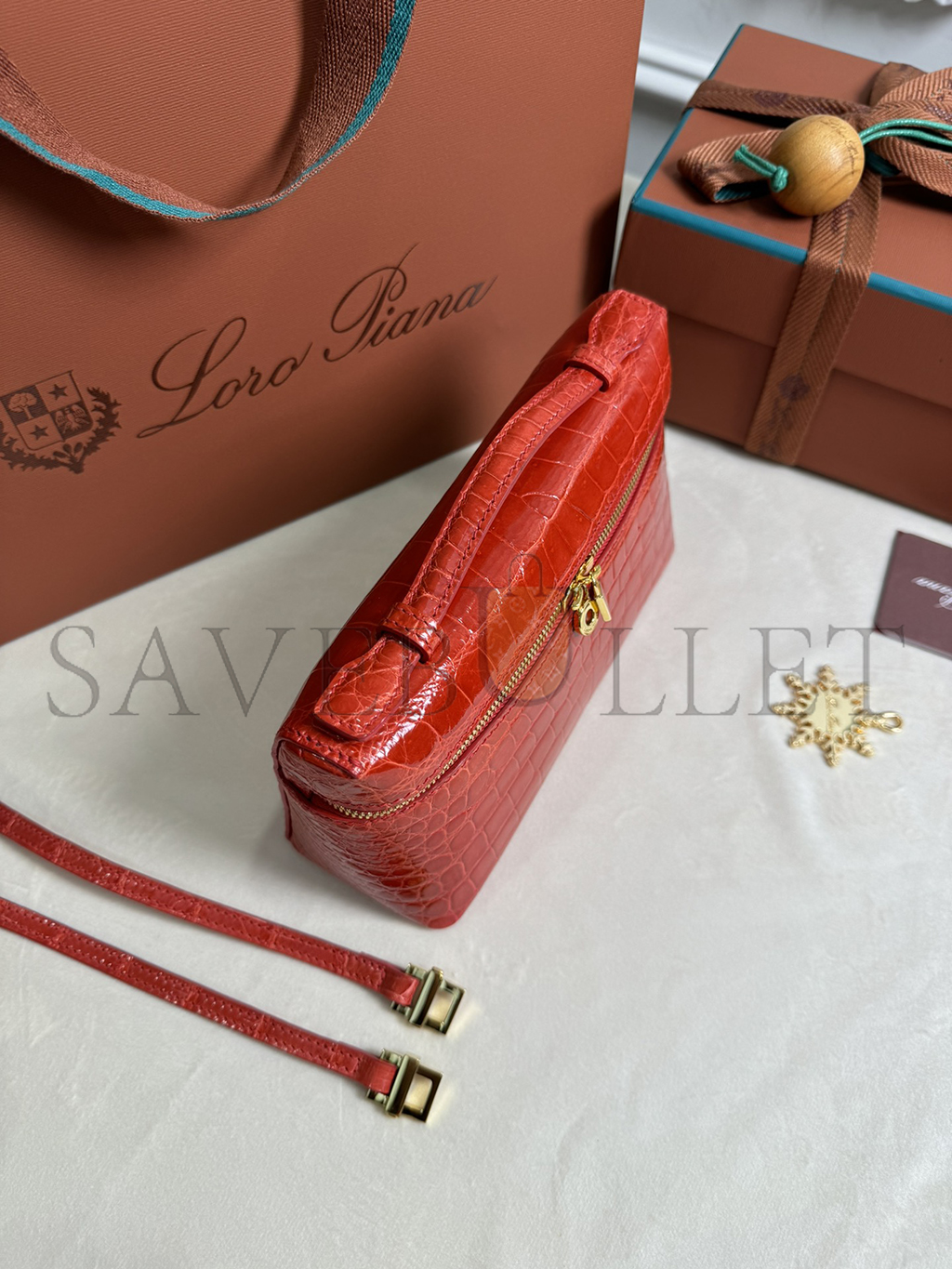 LORO PIANA EXTRA POCKET L19 CROCODILE LEATHER (19*11*6.5cm)