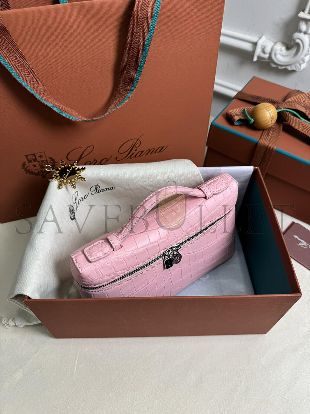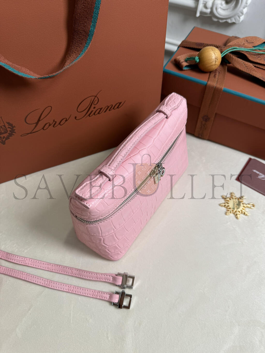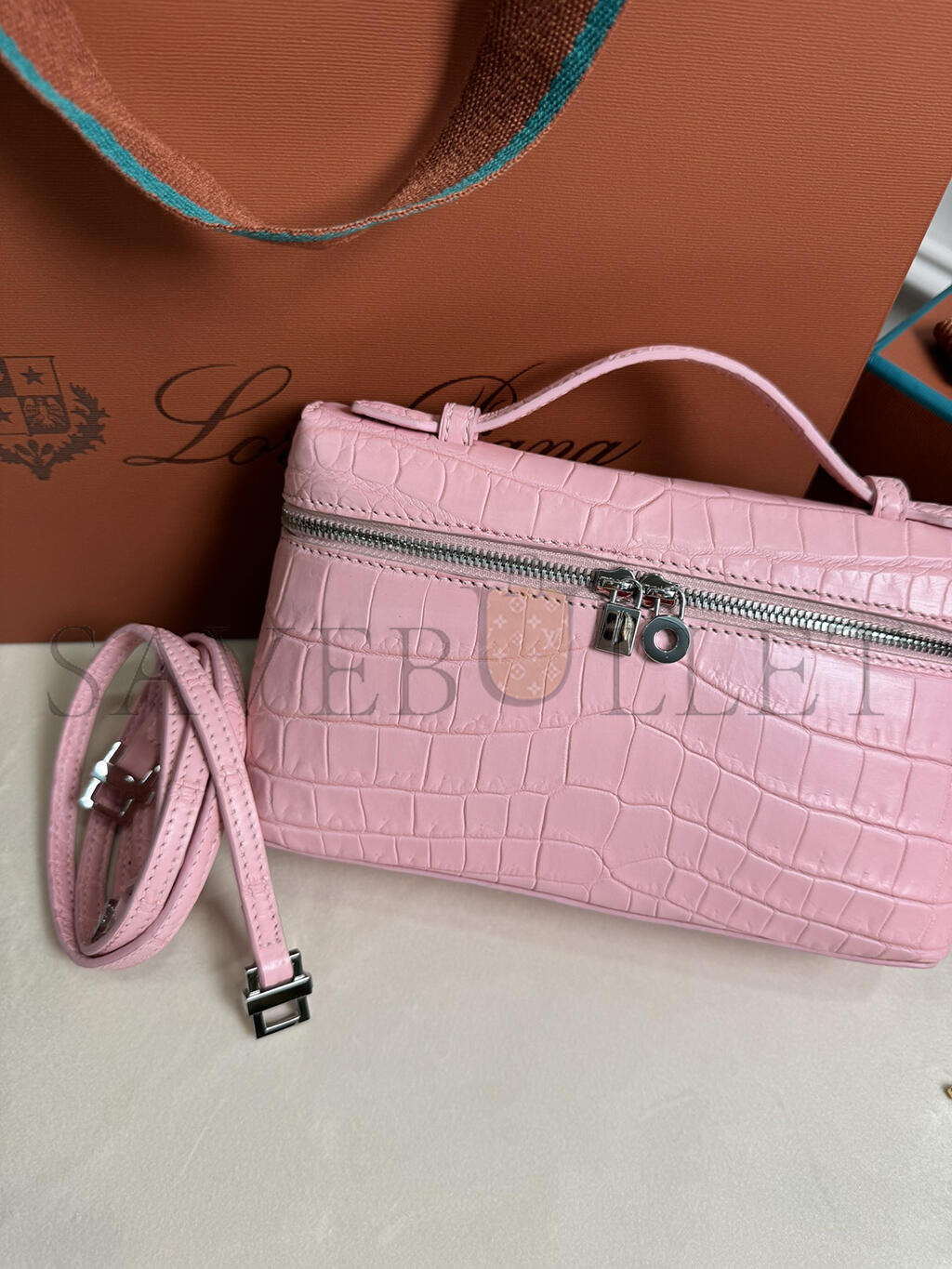 LORO PIANA EXTRA POCKET L19 CROCODILE LEATHER (19*11*6.5cm)