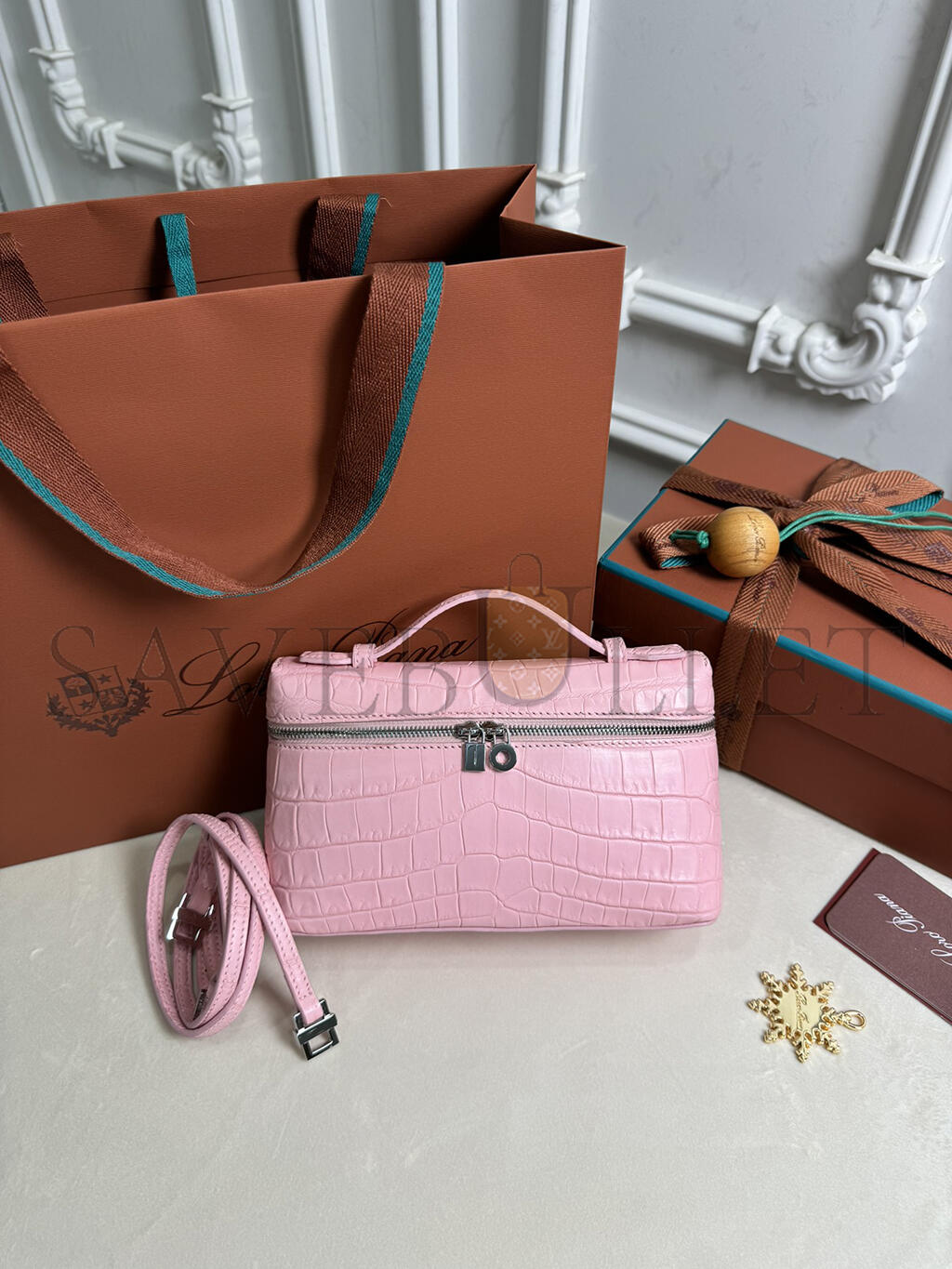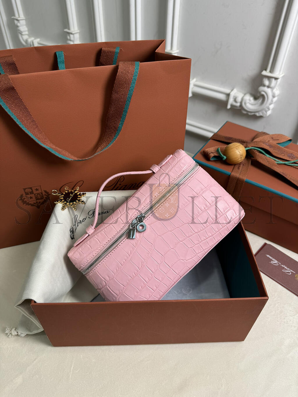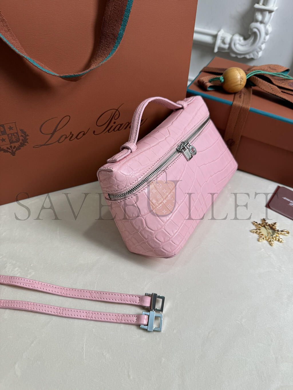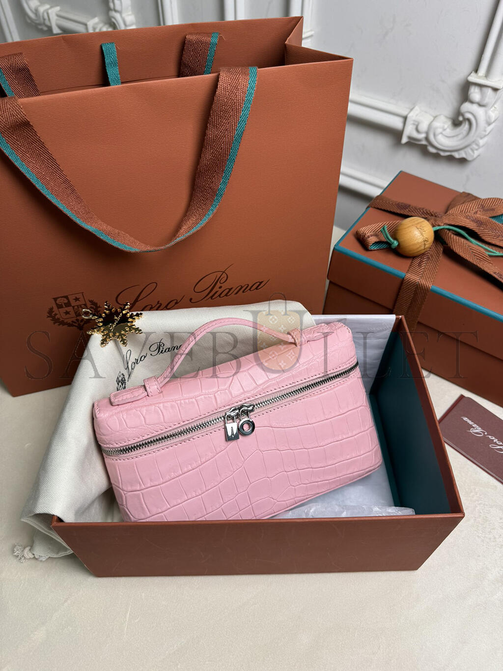 LORO PIANA EXTRA POCKET L19 CROCODILE LEATHER (19*11*6.5cm)