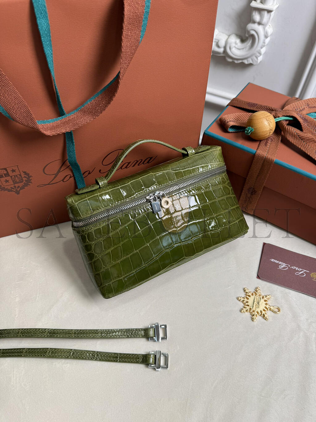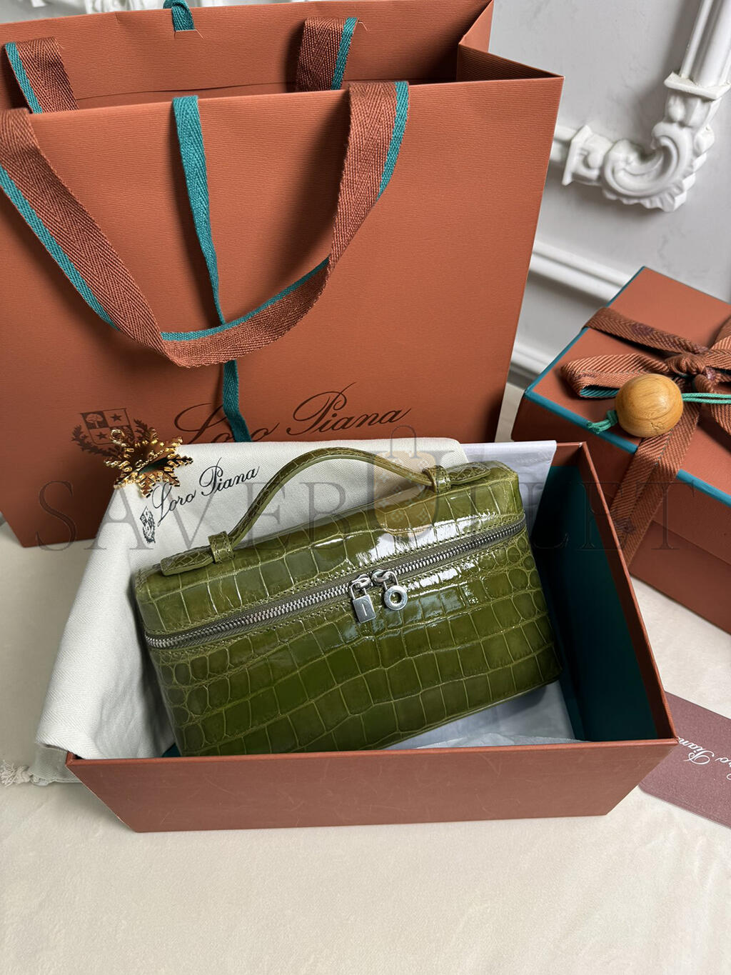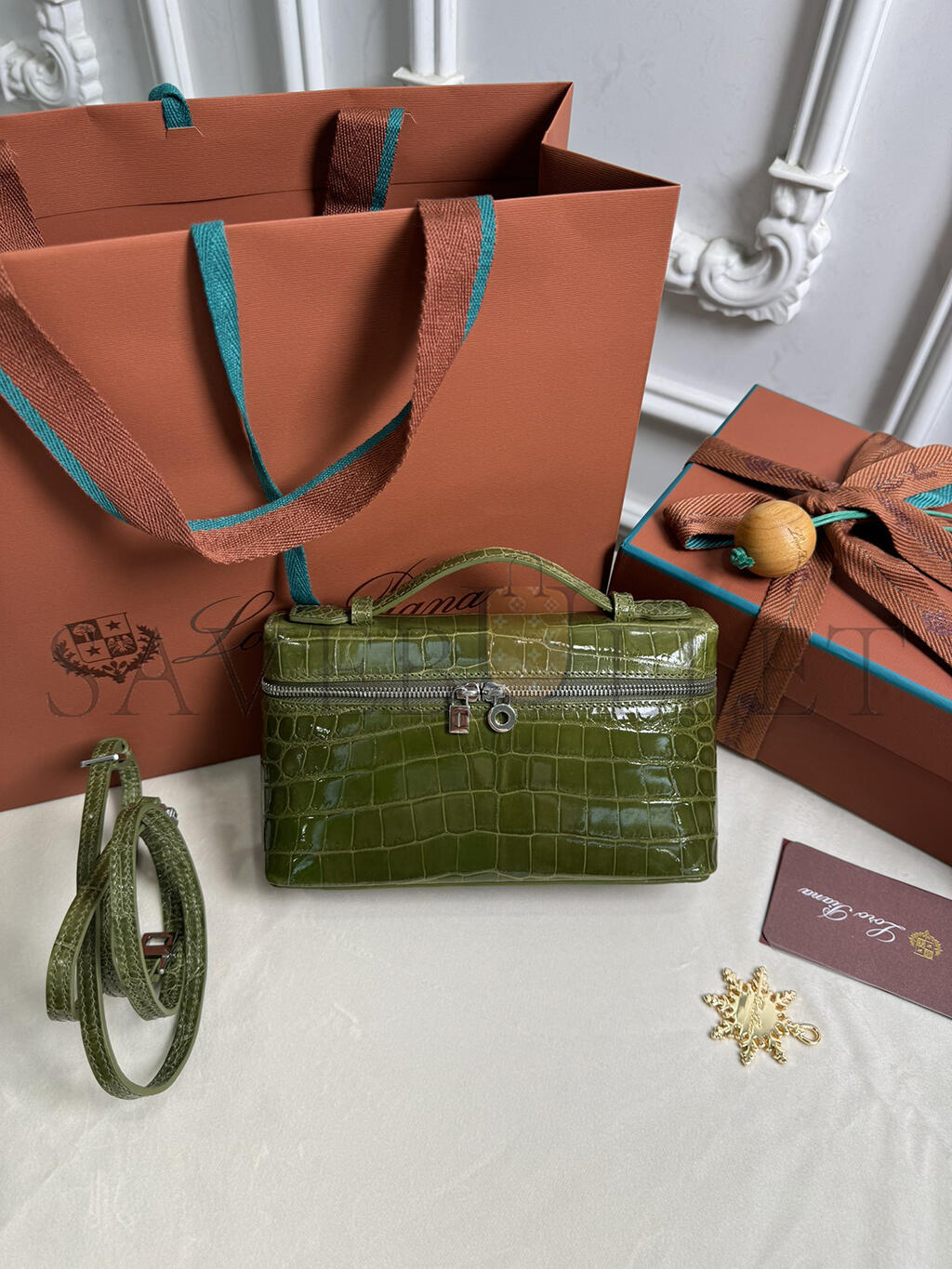 LORO PIANA EXTRA POCKET L19 CROCODILE LEATHER (19*11*6.5cm)