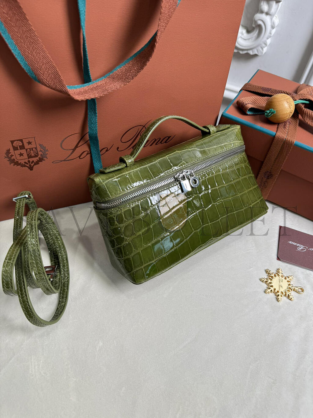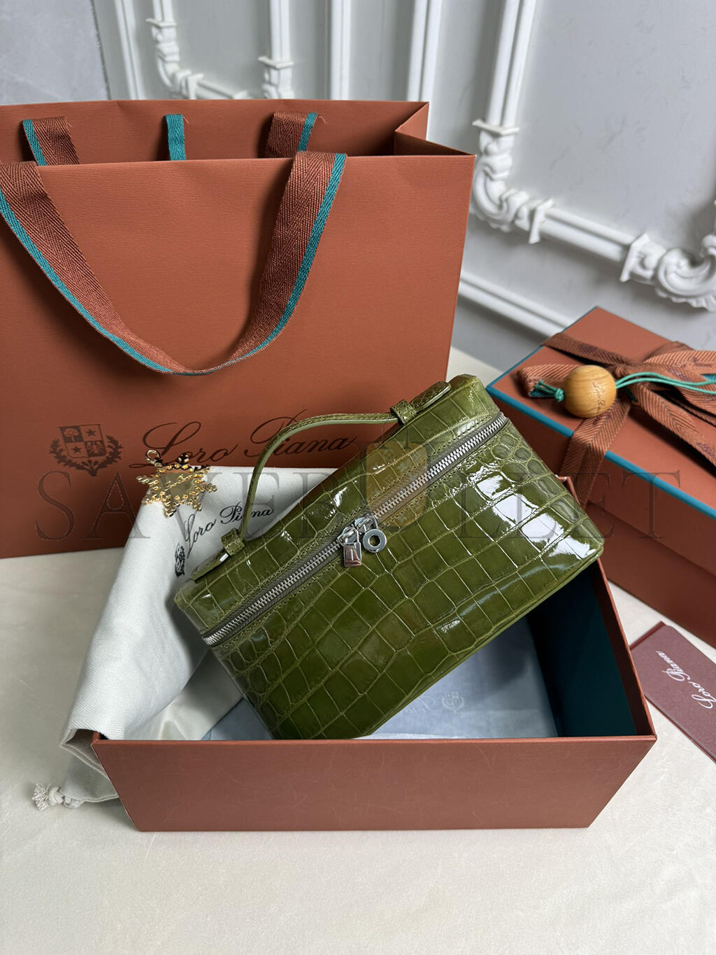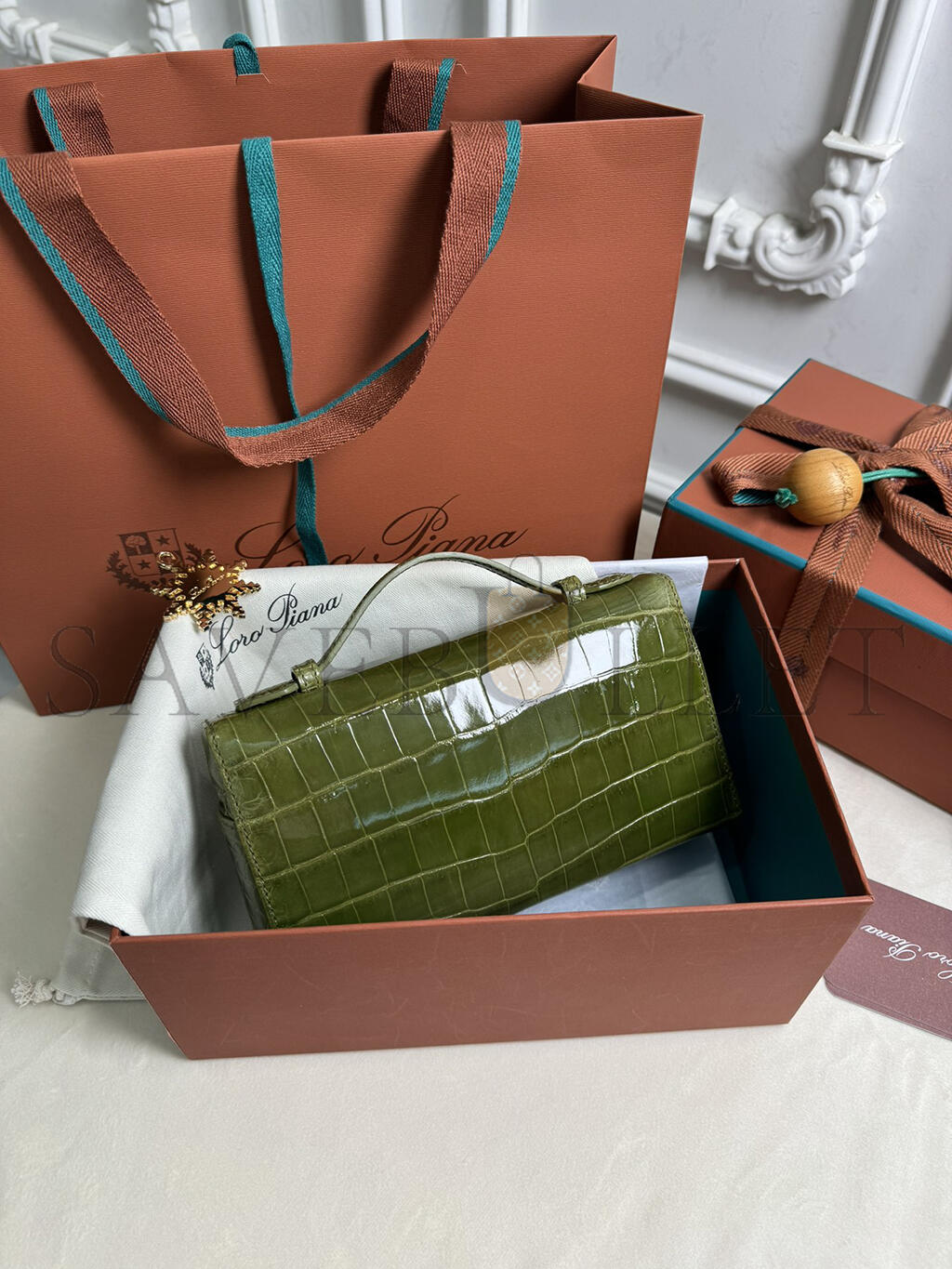LORO PIANA EXTRA POCKET L19 CROCODILE LEATHER (19*11*6.5cm)