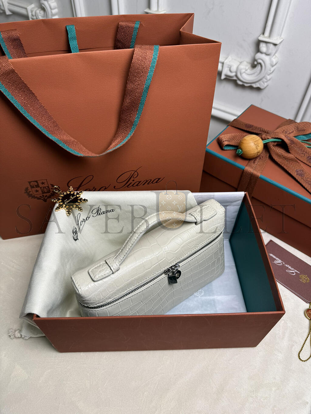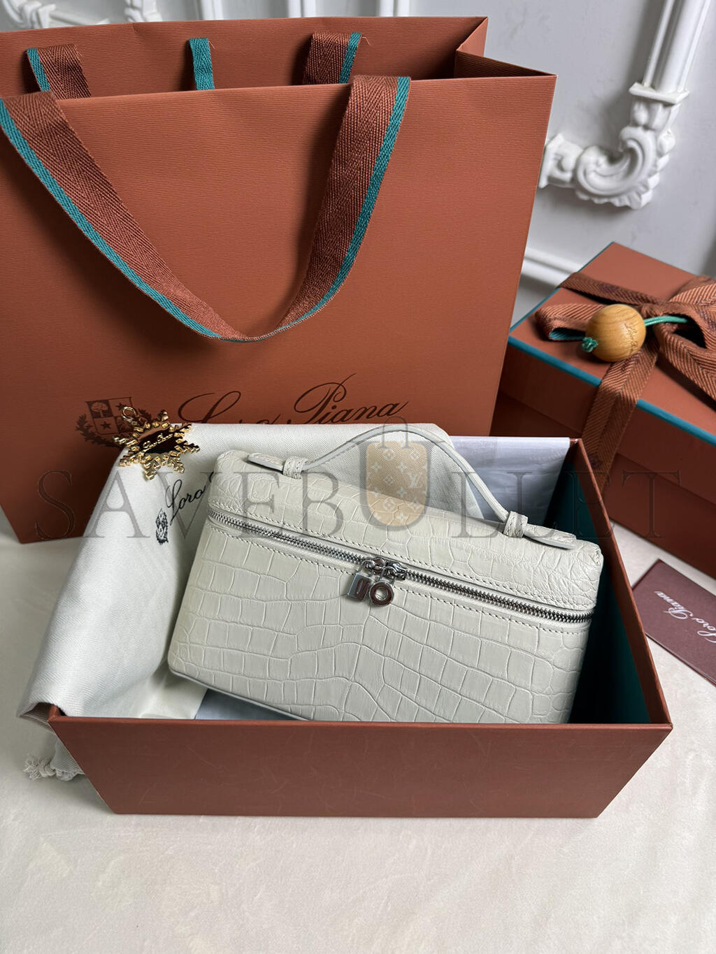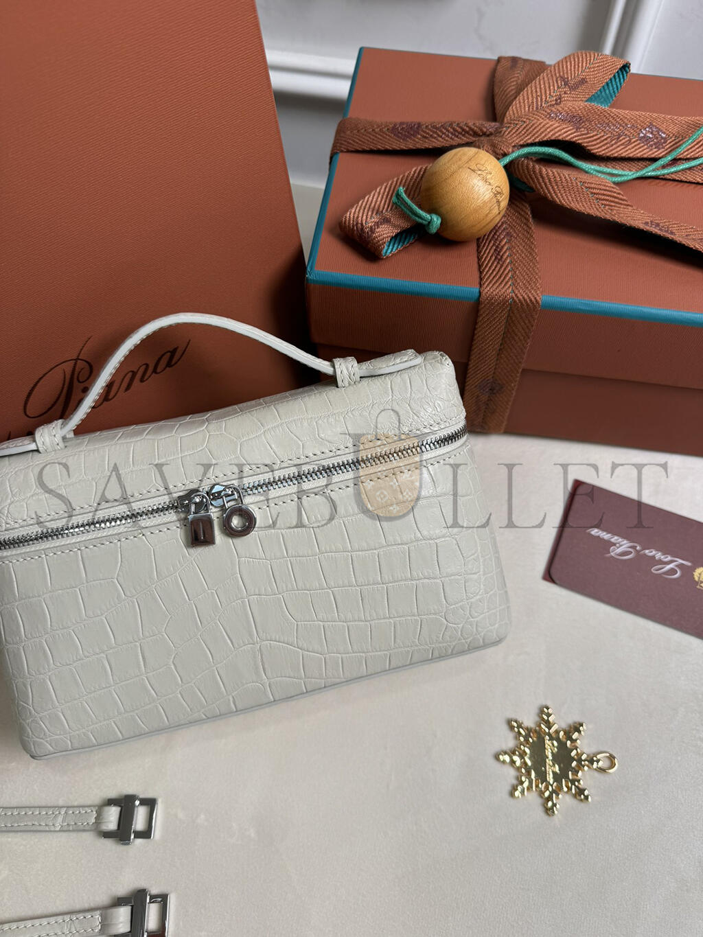 LORO PIANA EXTRA POCKET L19 CROCODILE LEATHER (19*11*6.5cm)