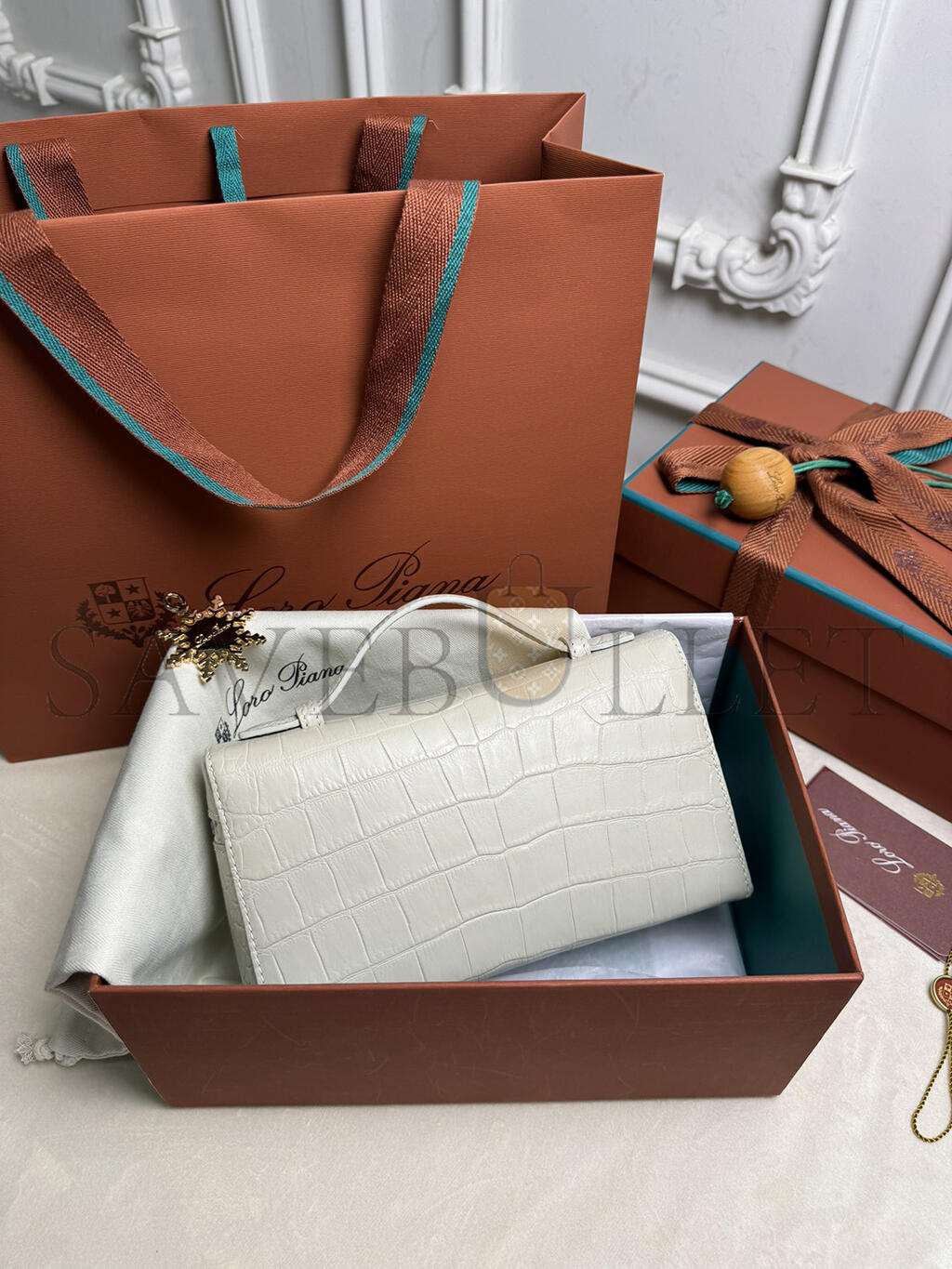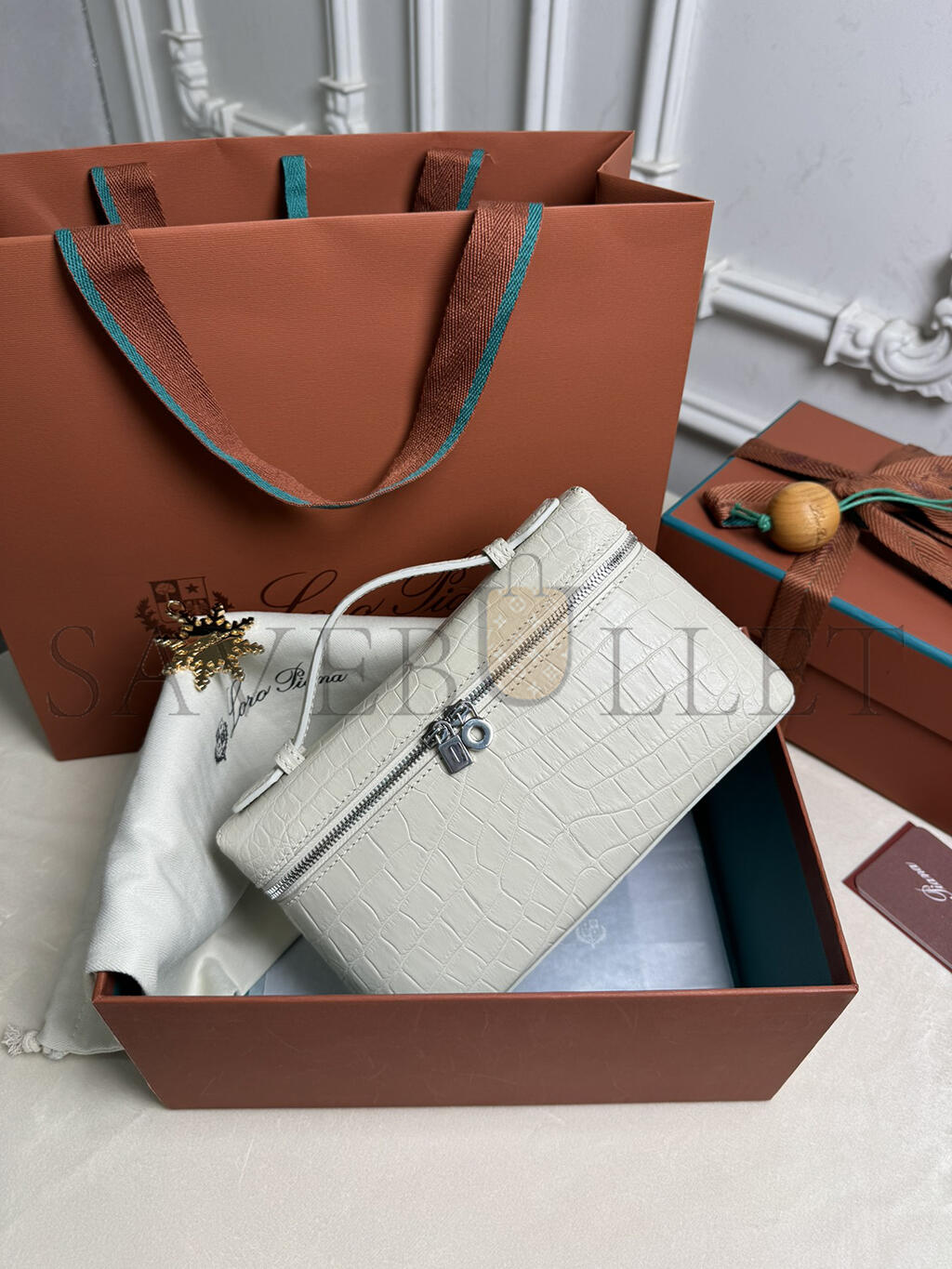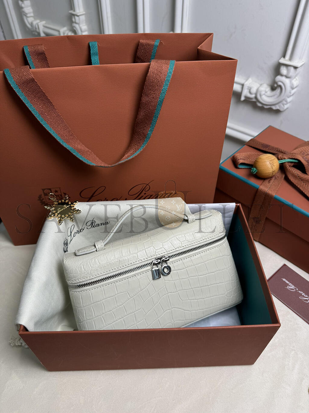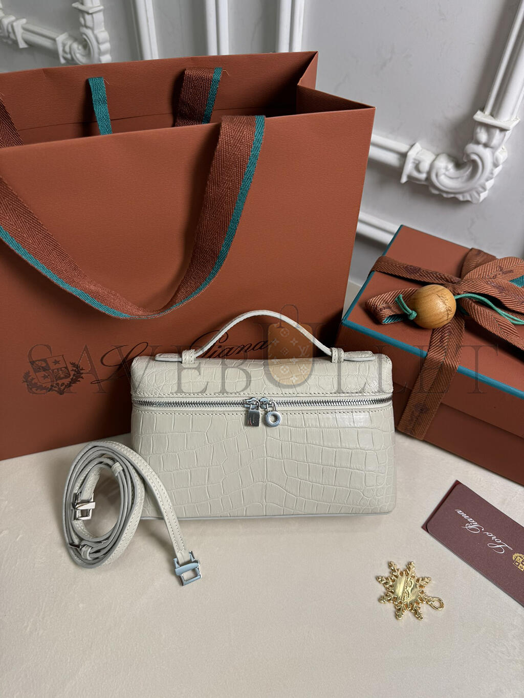 LORO PIANA EXTRA POCKET L19 CROCODILE LEATHER (19*11*6.5cm)