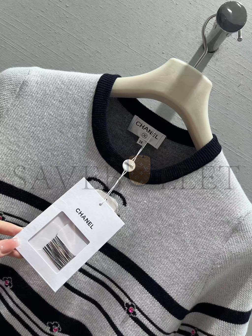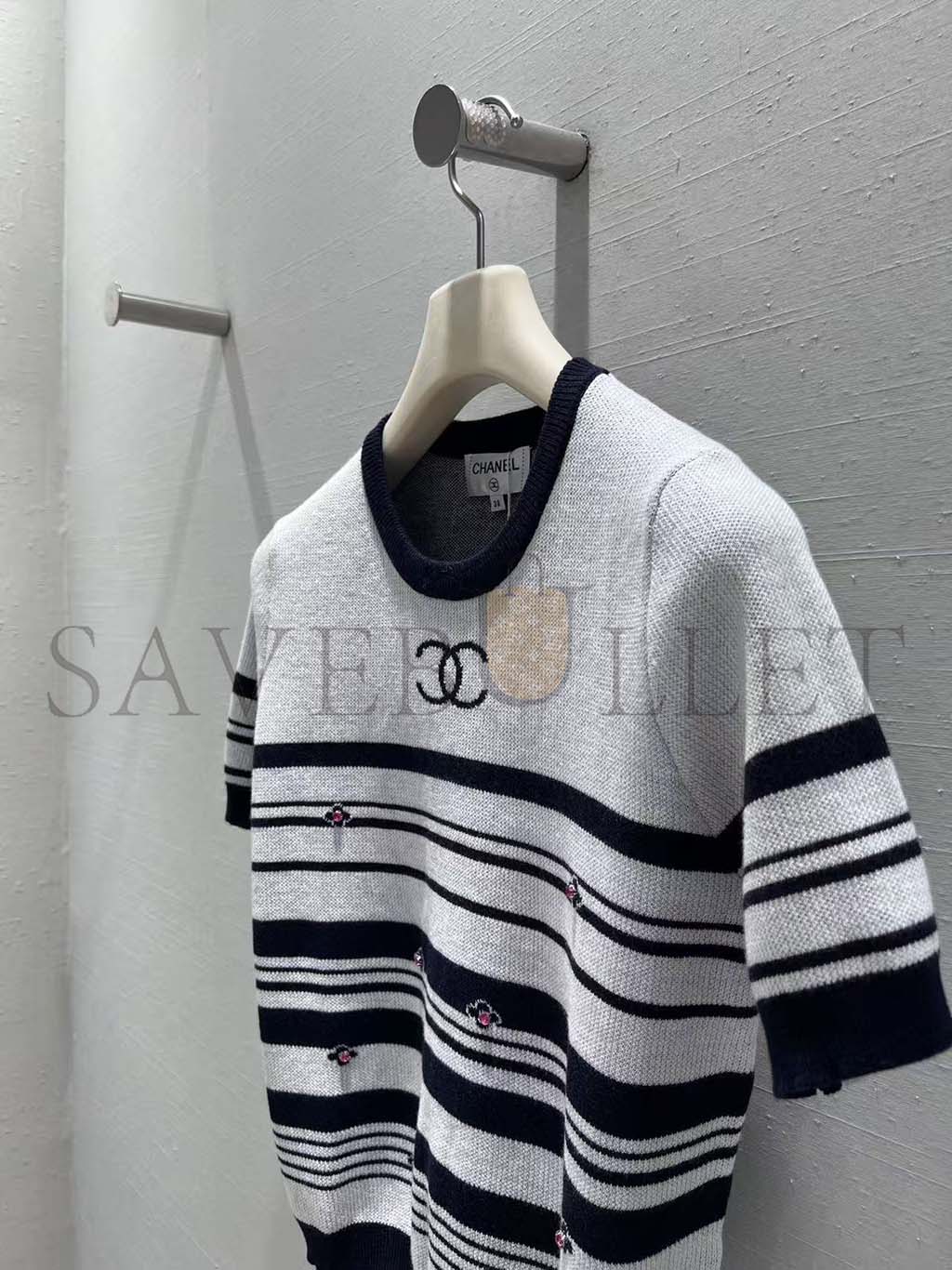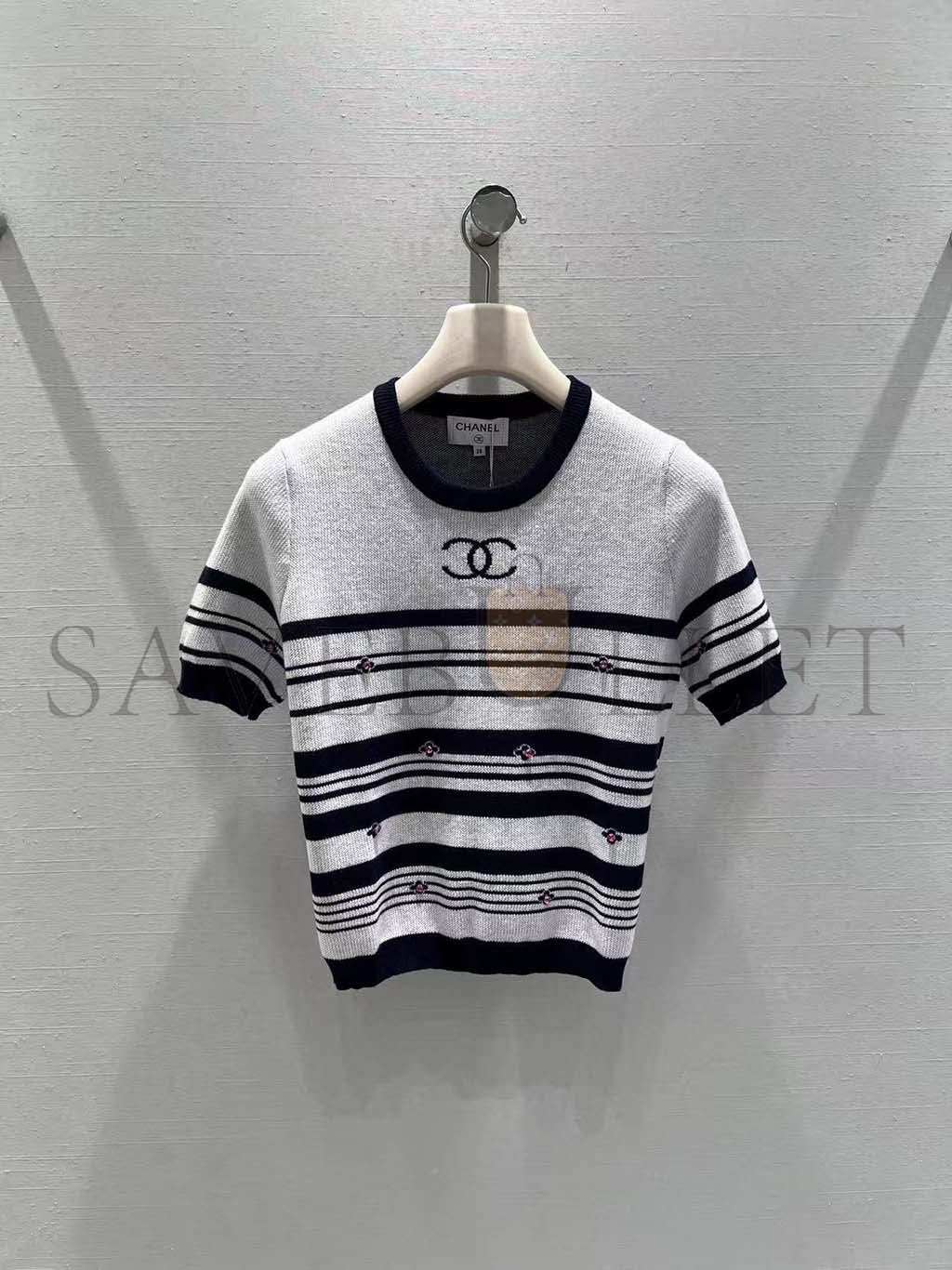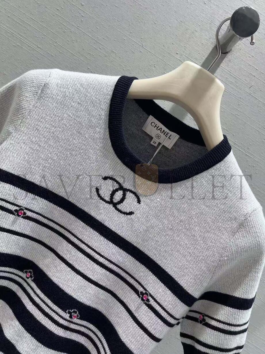 CHANEL STRIPED KNIT SHORT SLEEVE