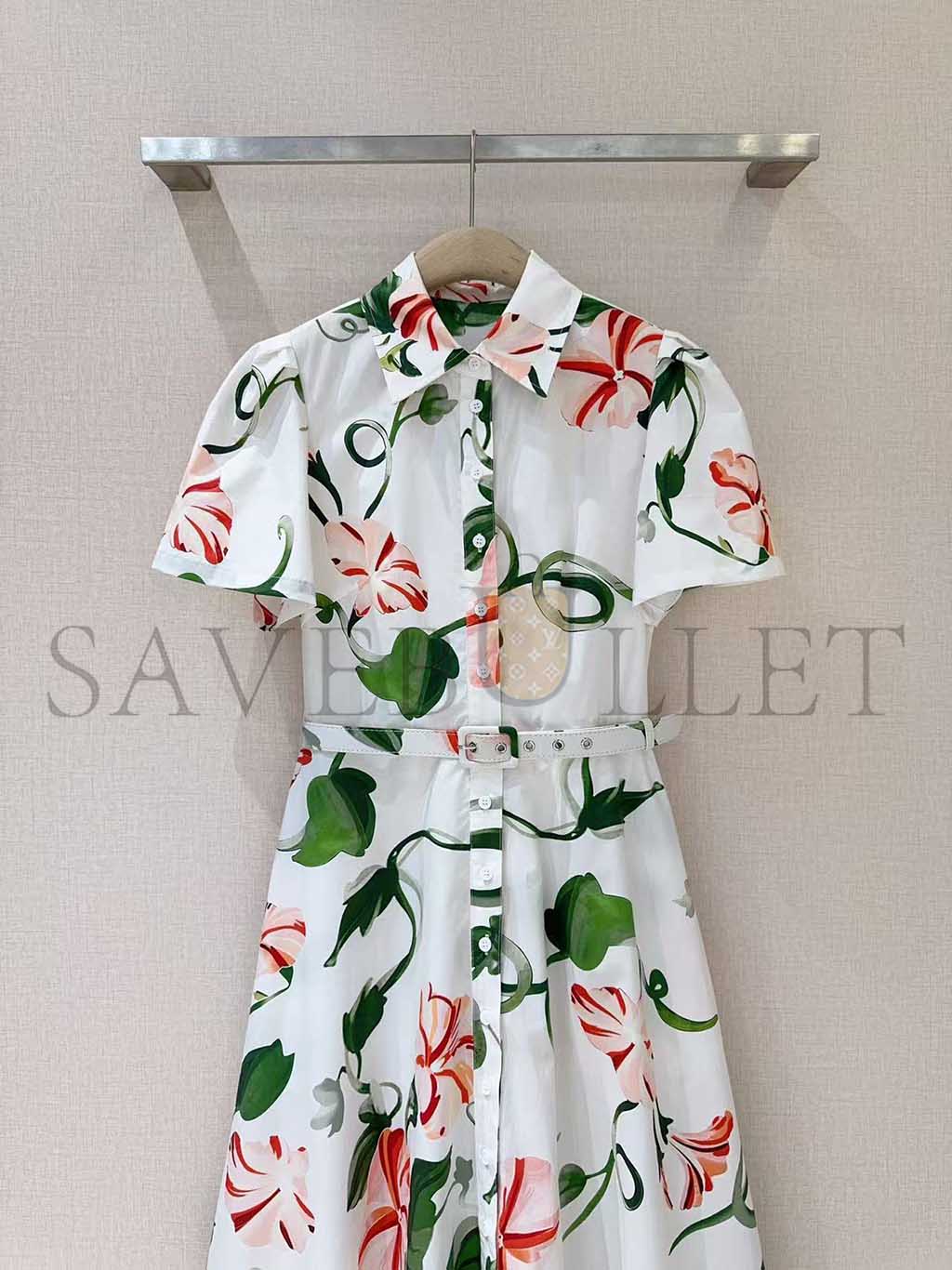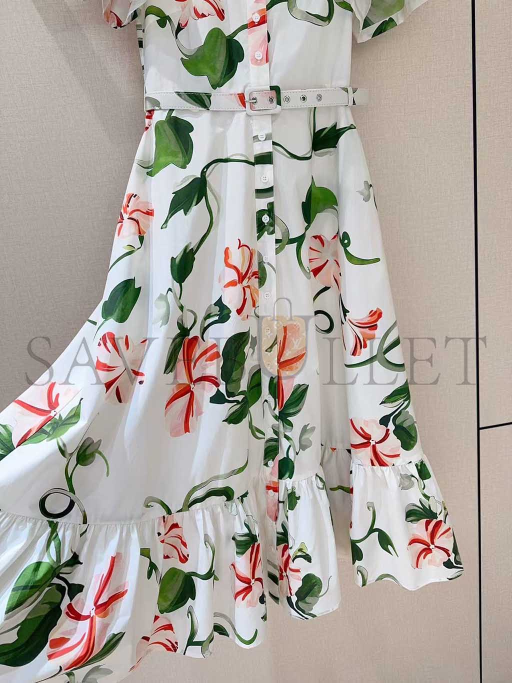 LEO LIN BECCA BELTED FLORAL LINEN-BLEND SHIRT DRESS