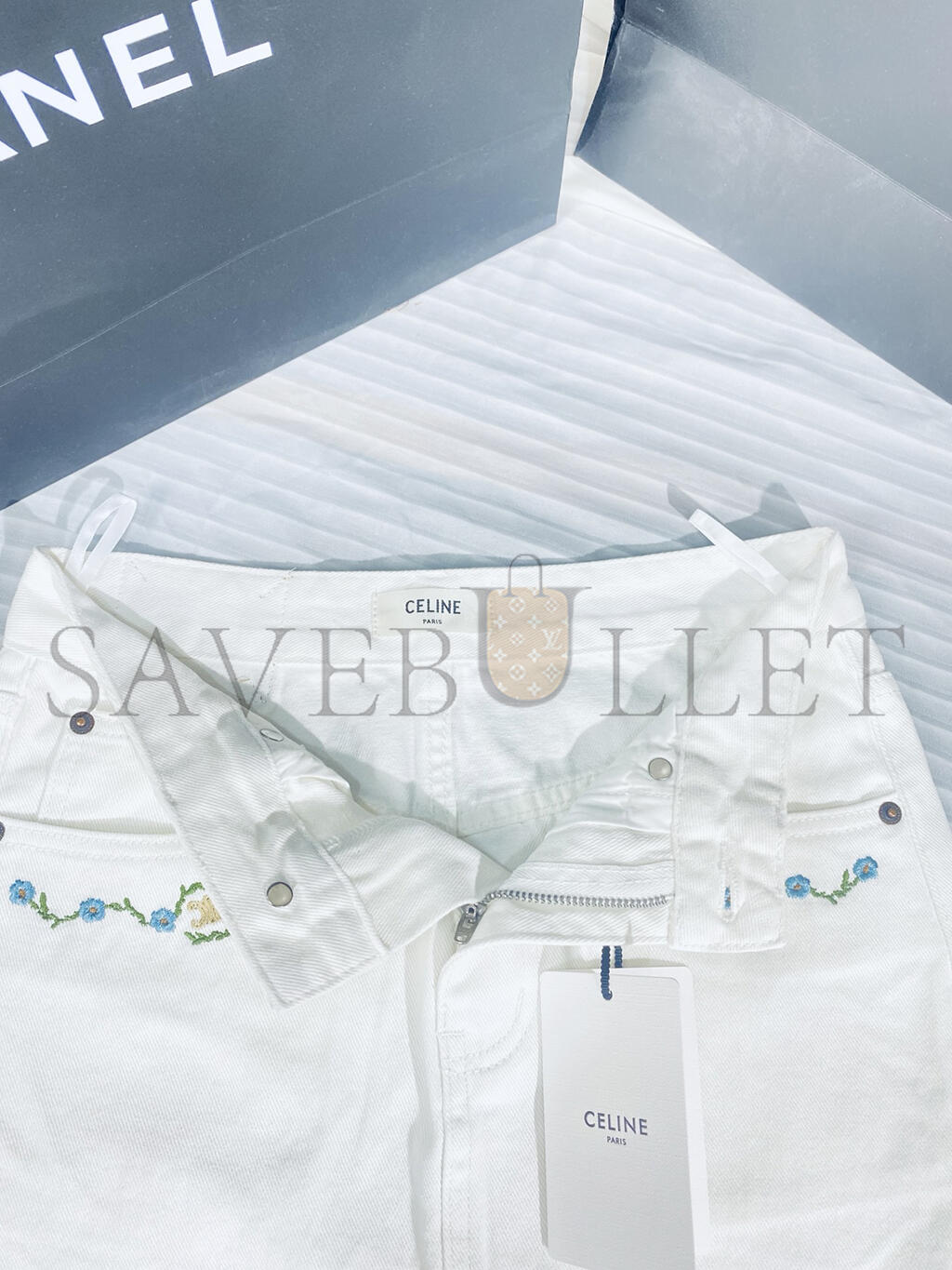 celine jeans-engraved zip and button