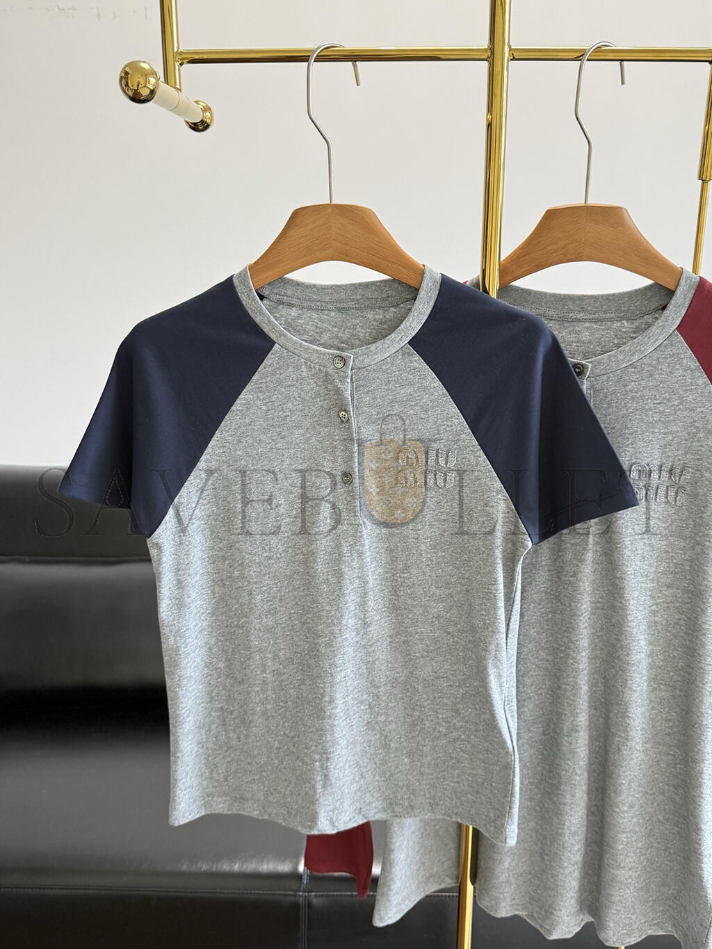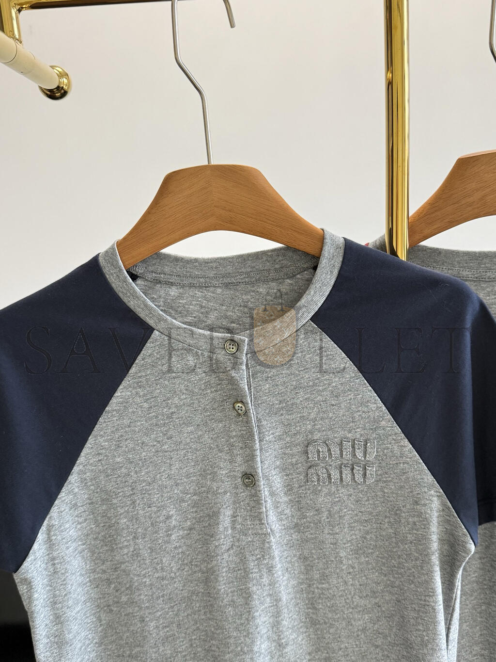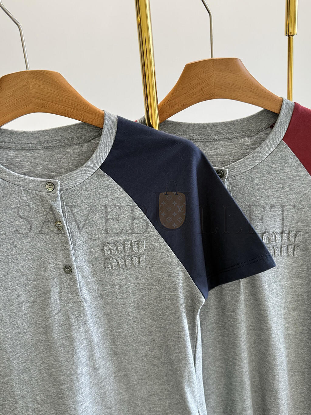 MIU MIU COTTON PLAIN KNIT HENLEY SWEATER MJNA18