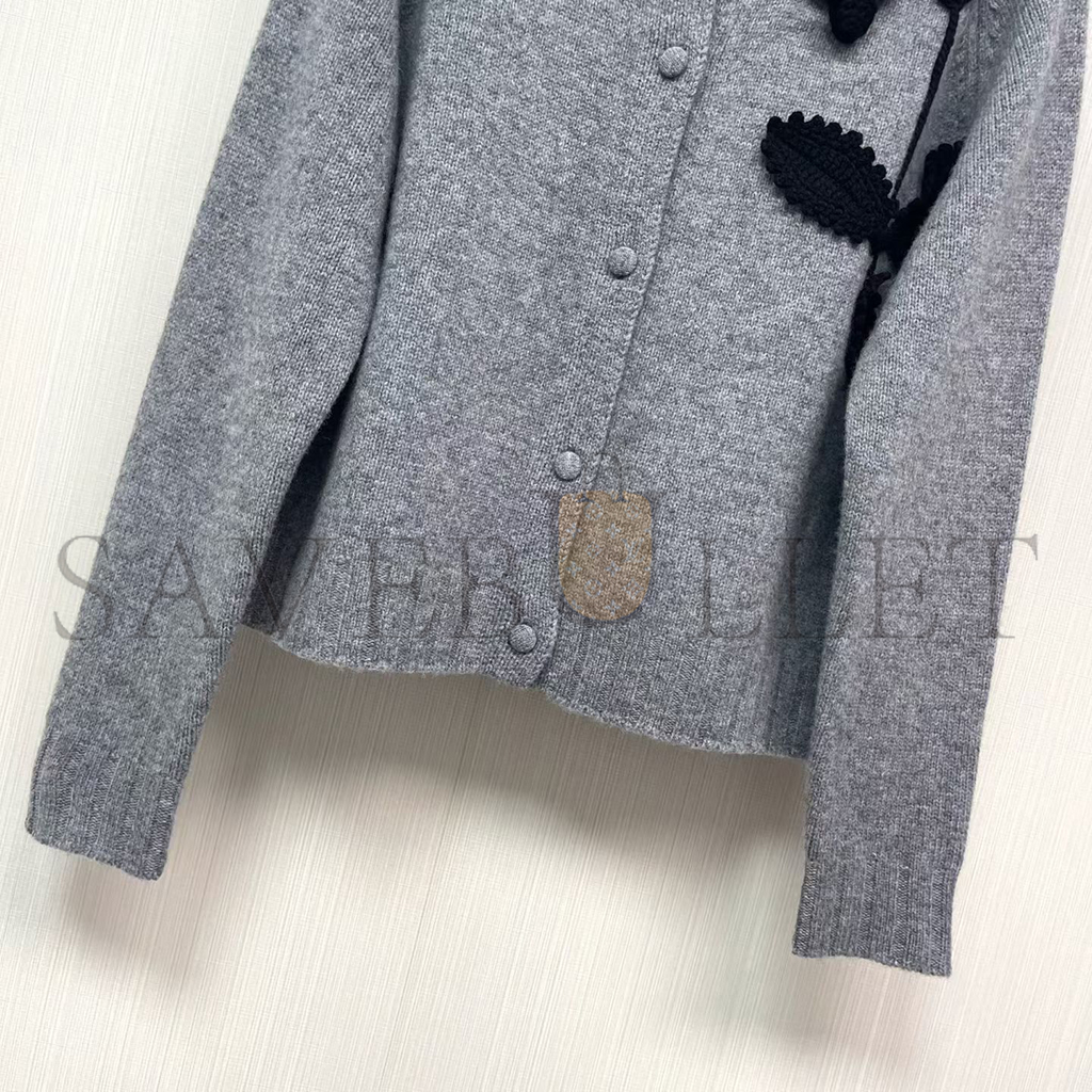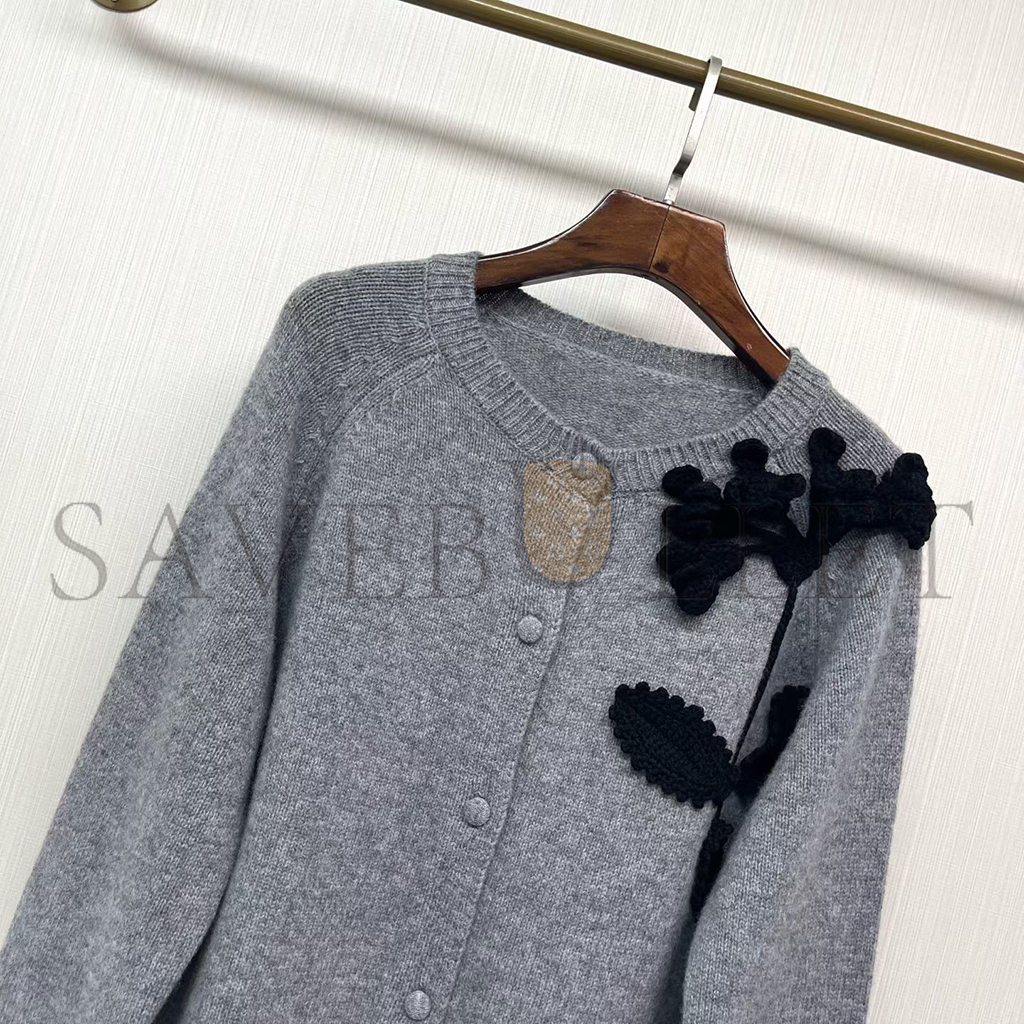 MIU MIU FLORAL EMBELLISHED KNITTED CARDIGAN