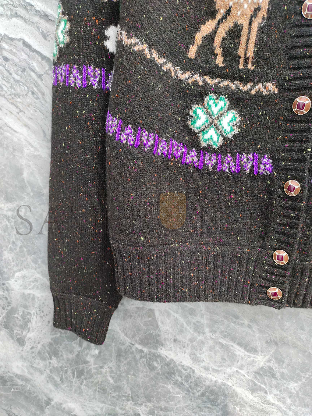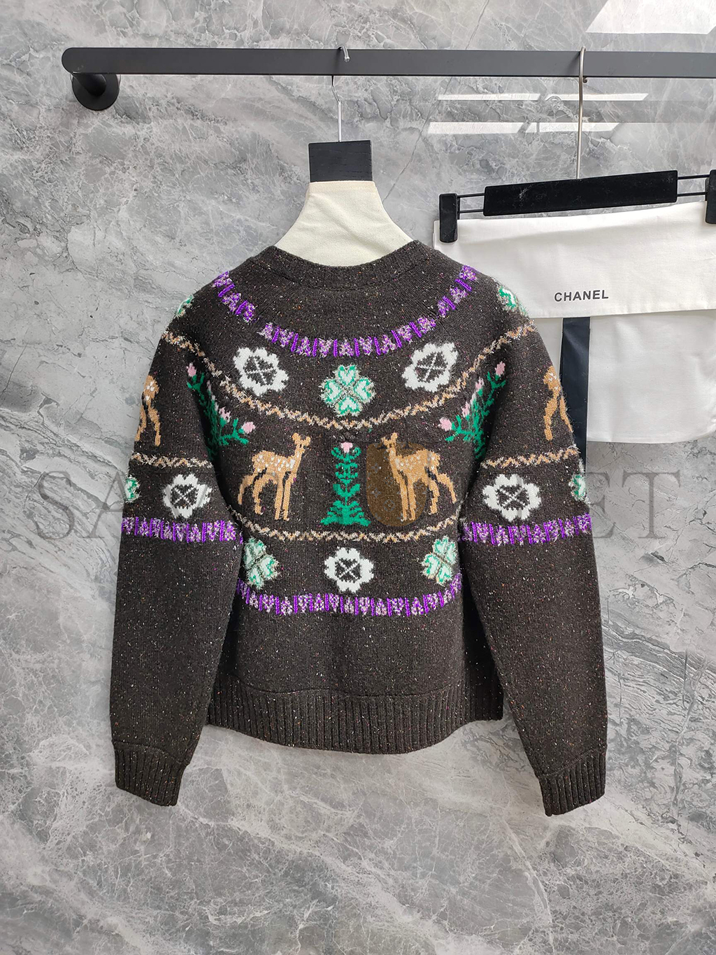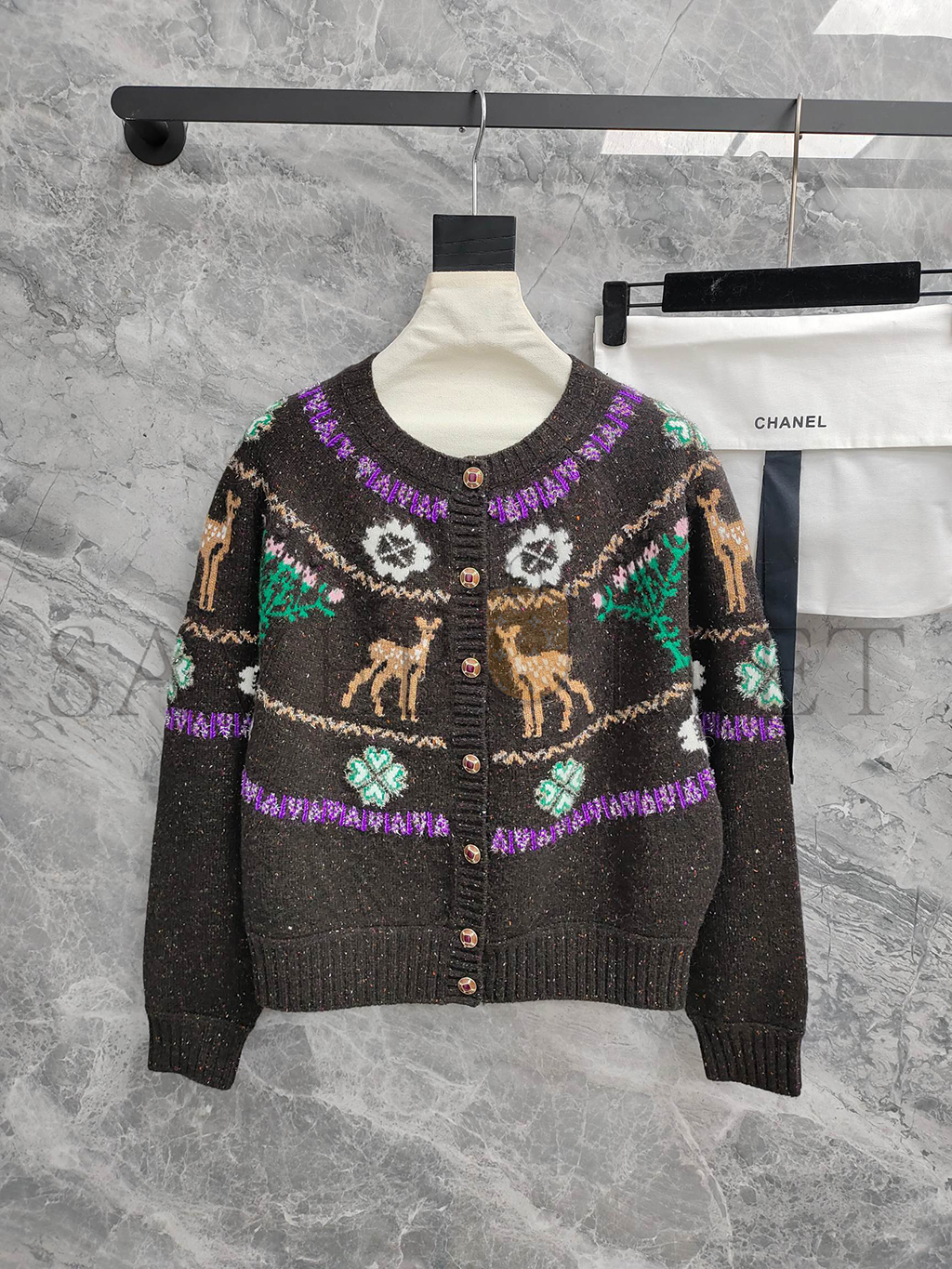 CHANEL CARDIGAN LONG SLEEVE REINDEER CLOVER TWEED BROWN CASHMERE