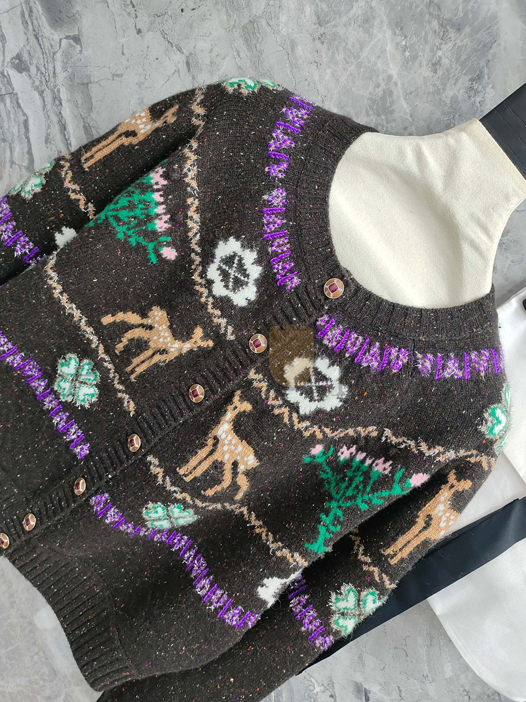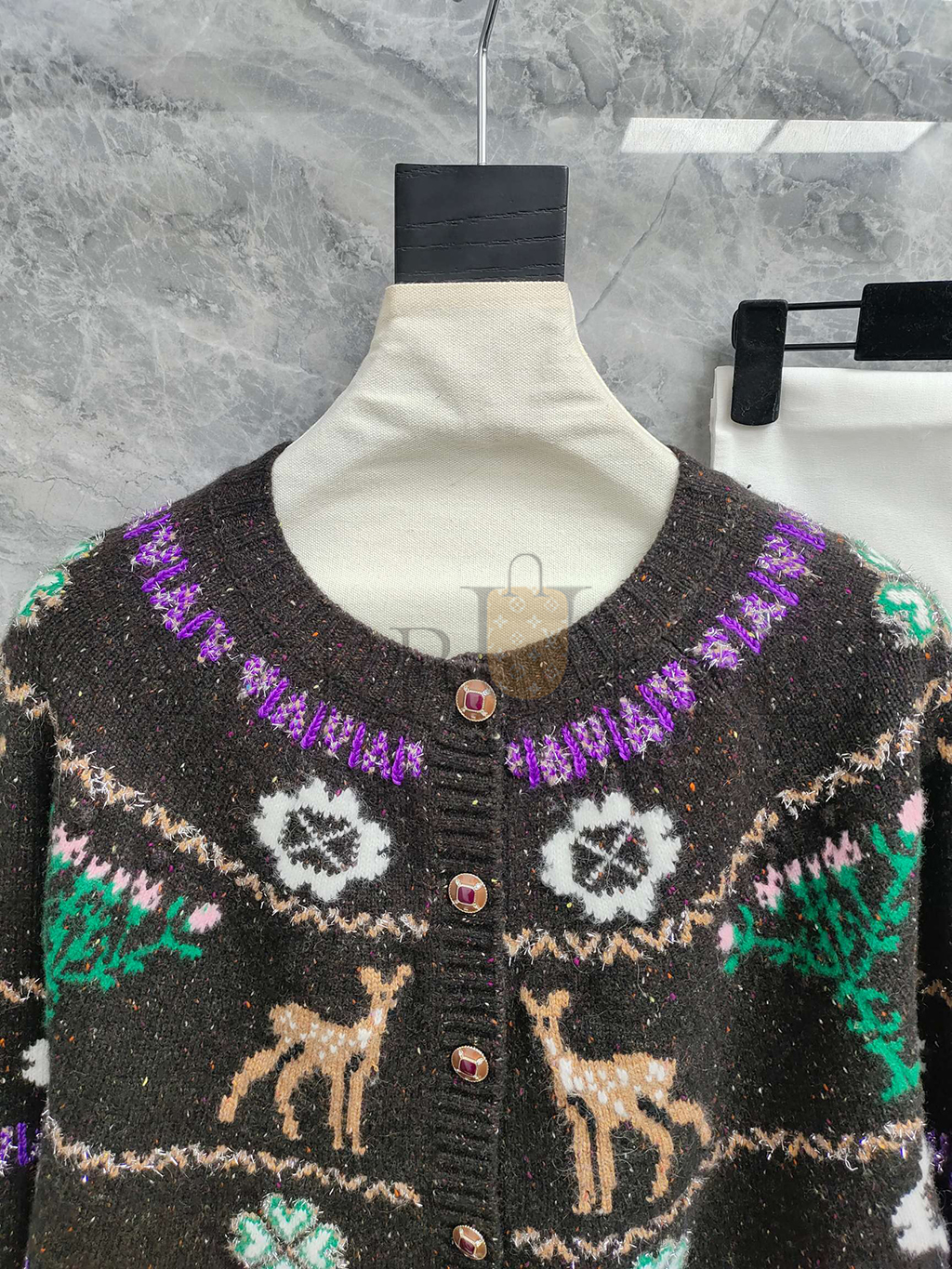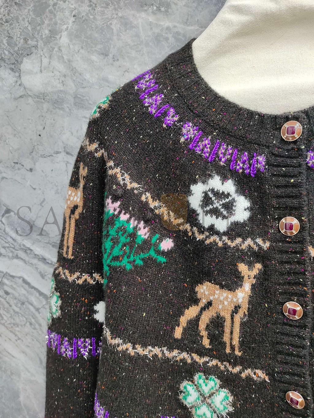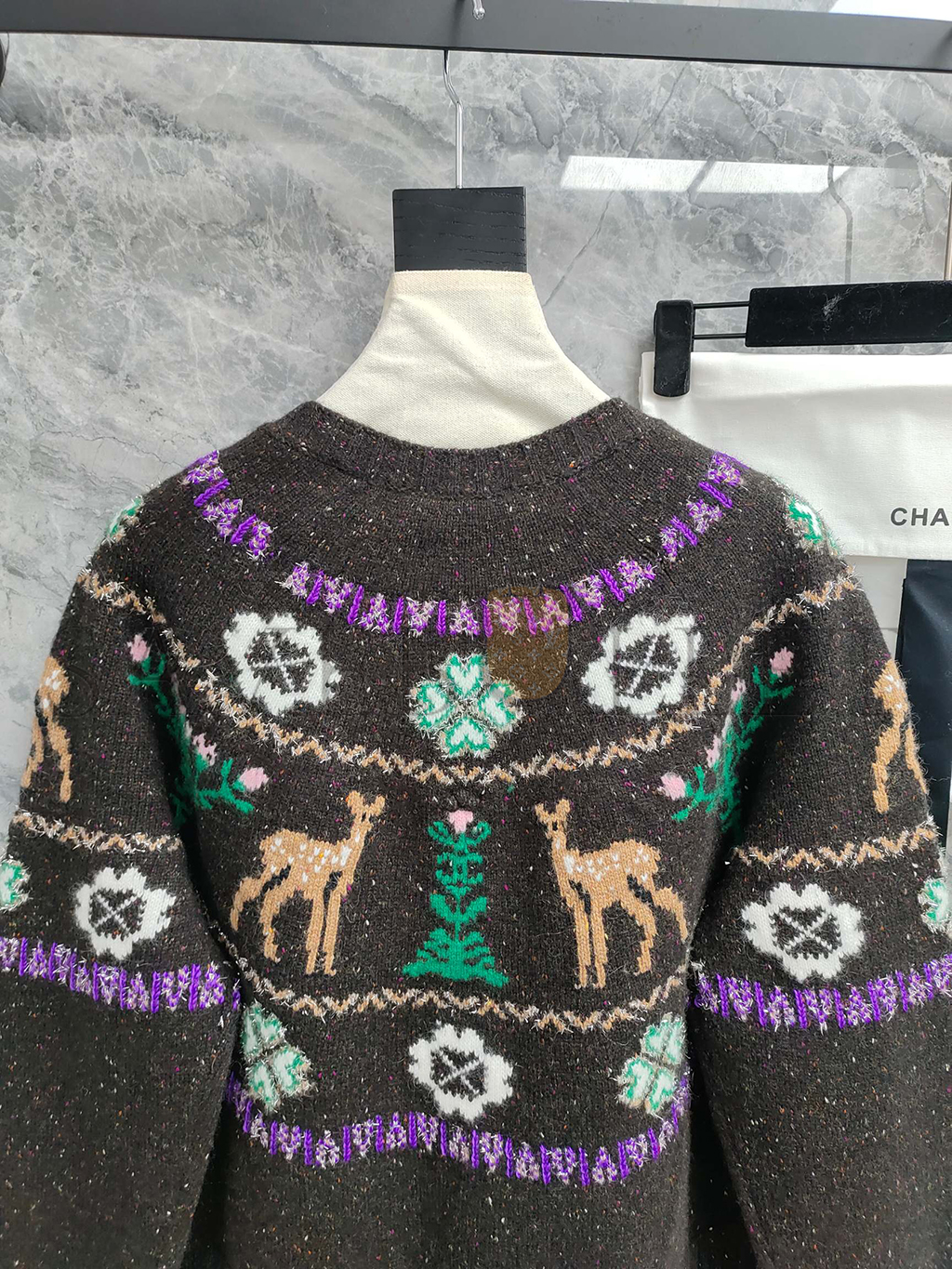 CHANEL CARDIGAN LONG SLEEVE REINDEER CLOVER TWEED BROWN CASHMERE