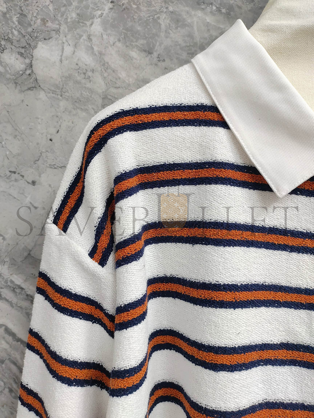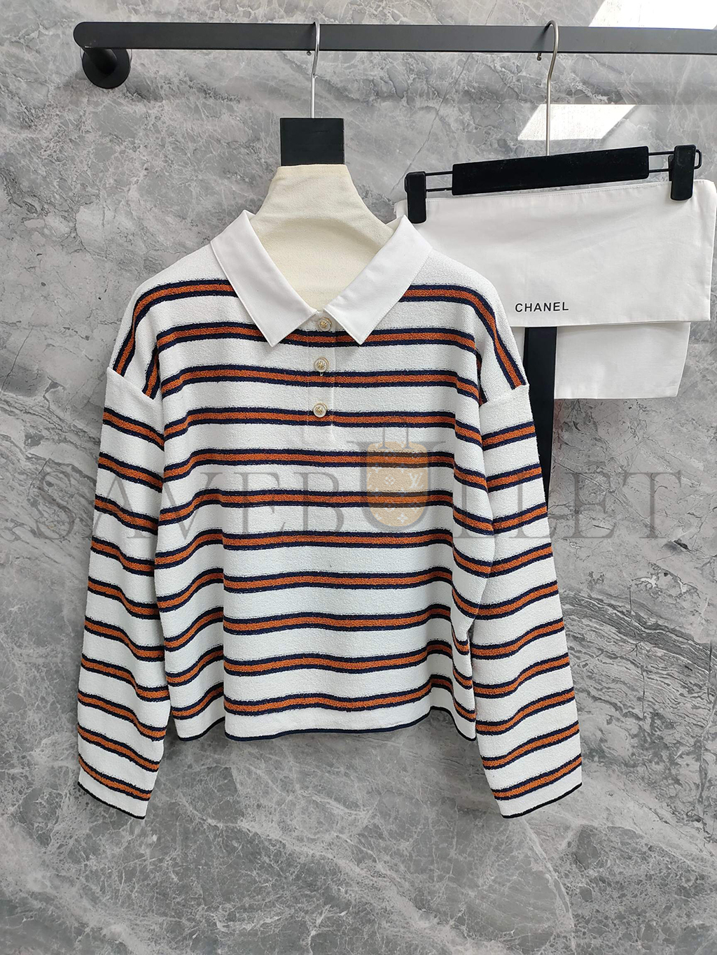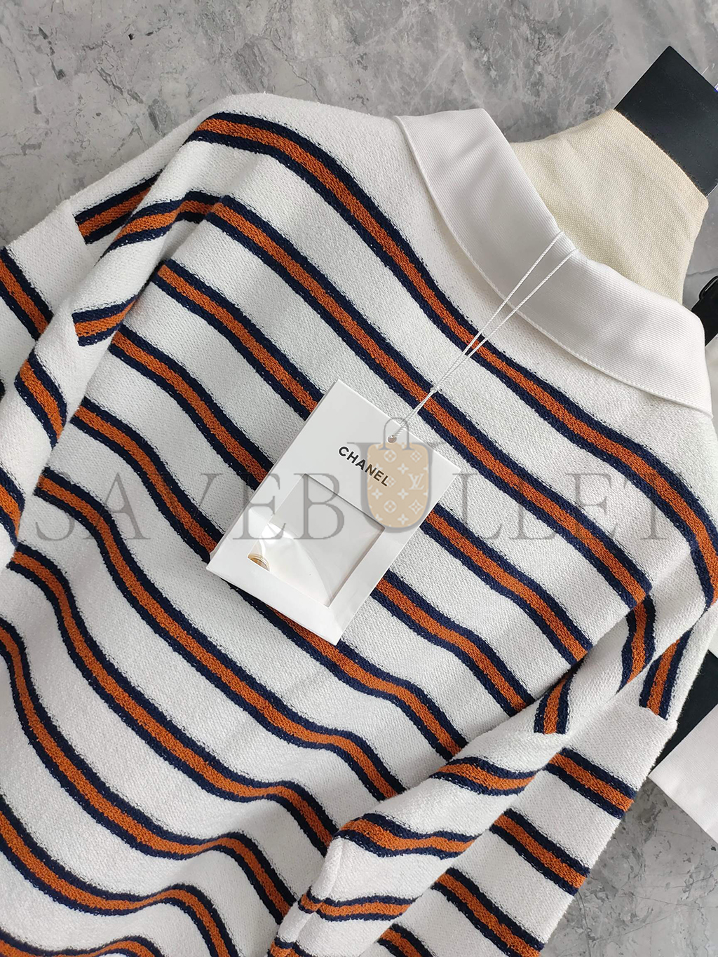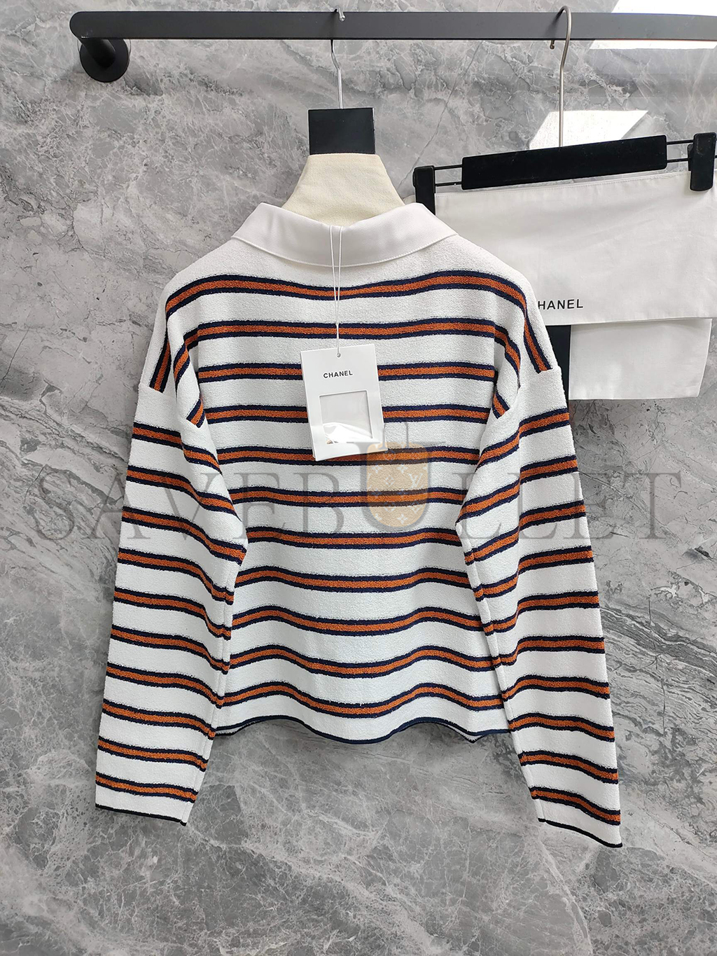 CHANEL COTTON BLEND STRIPED POLO SHIRT
