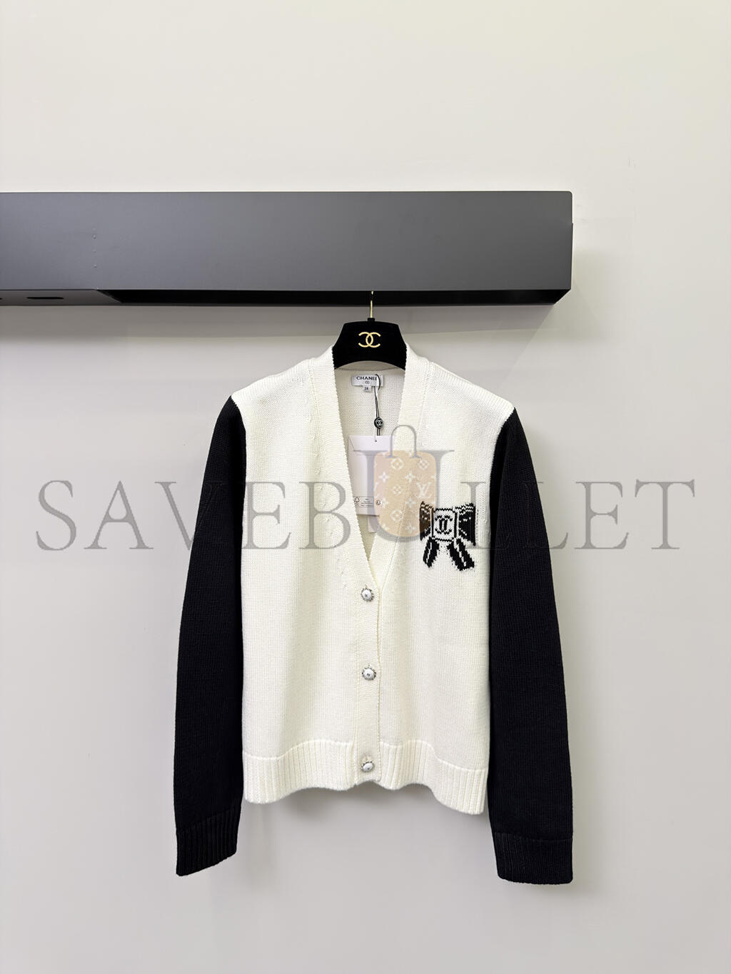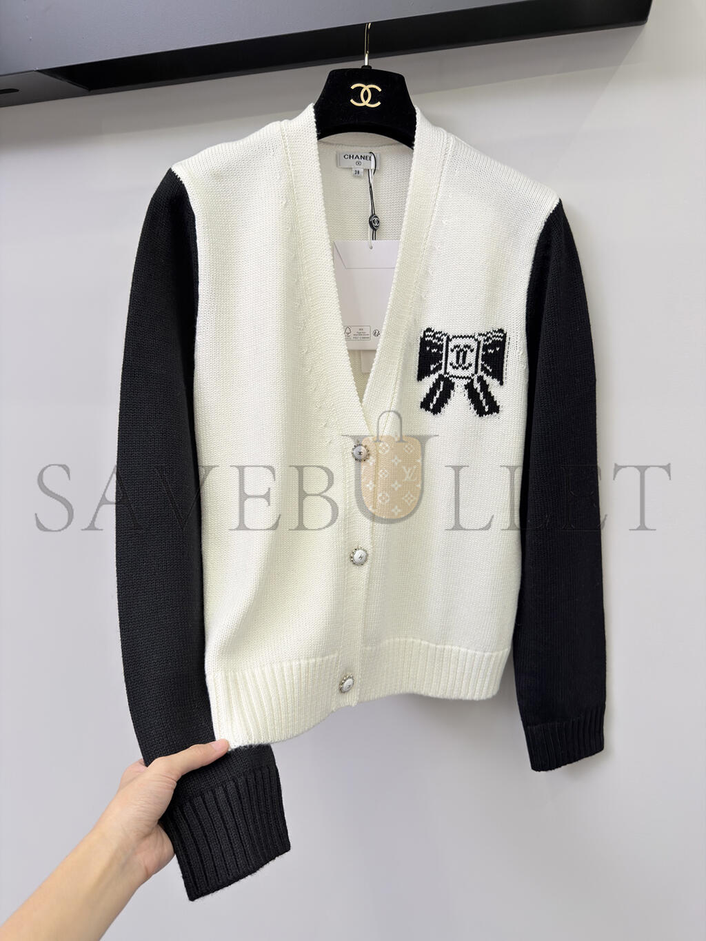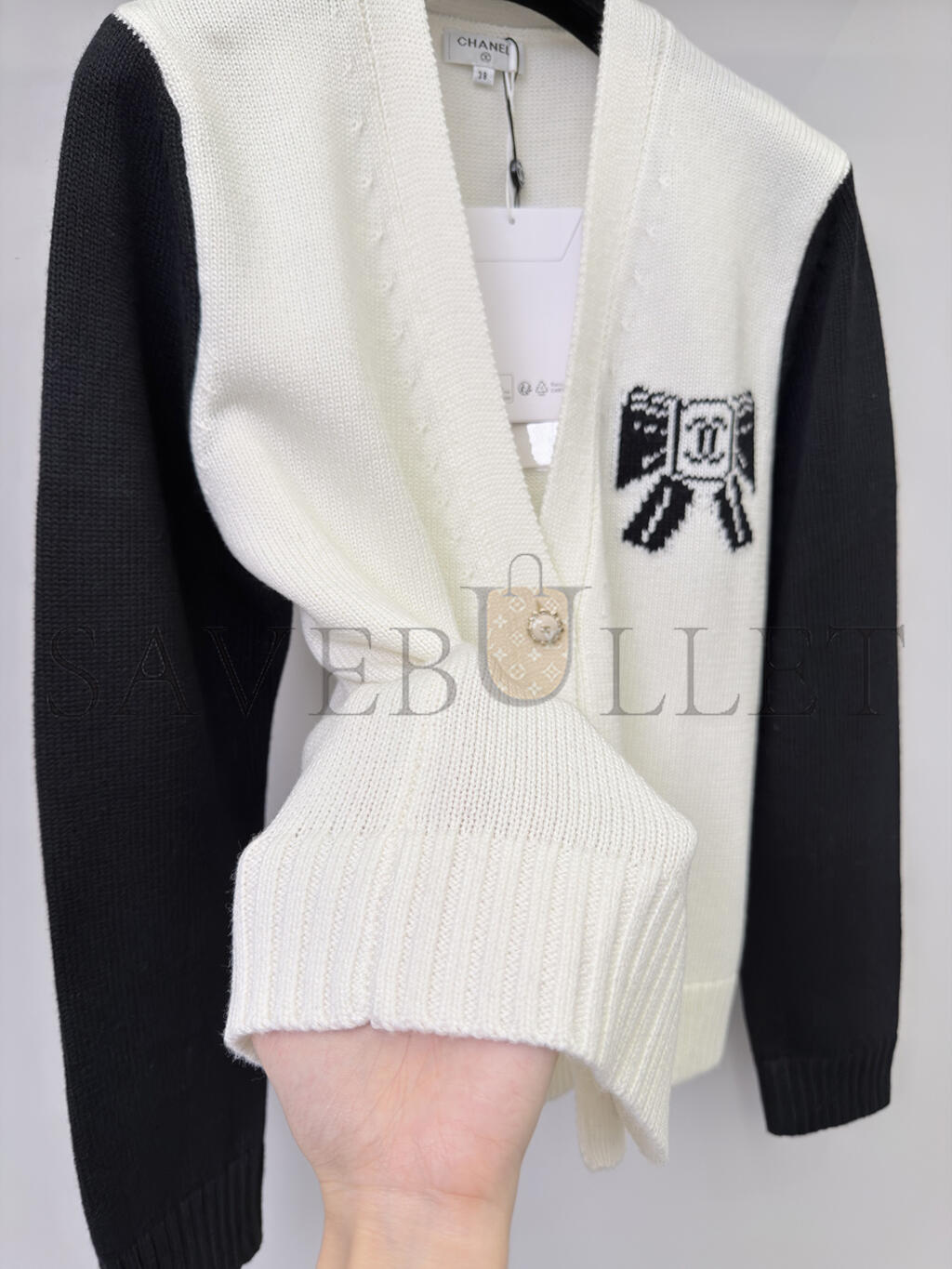 CHANEL BOW-KNIT V-NECK CARDIGAN