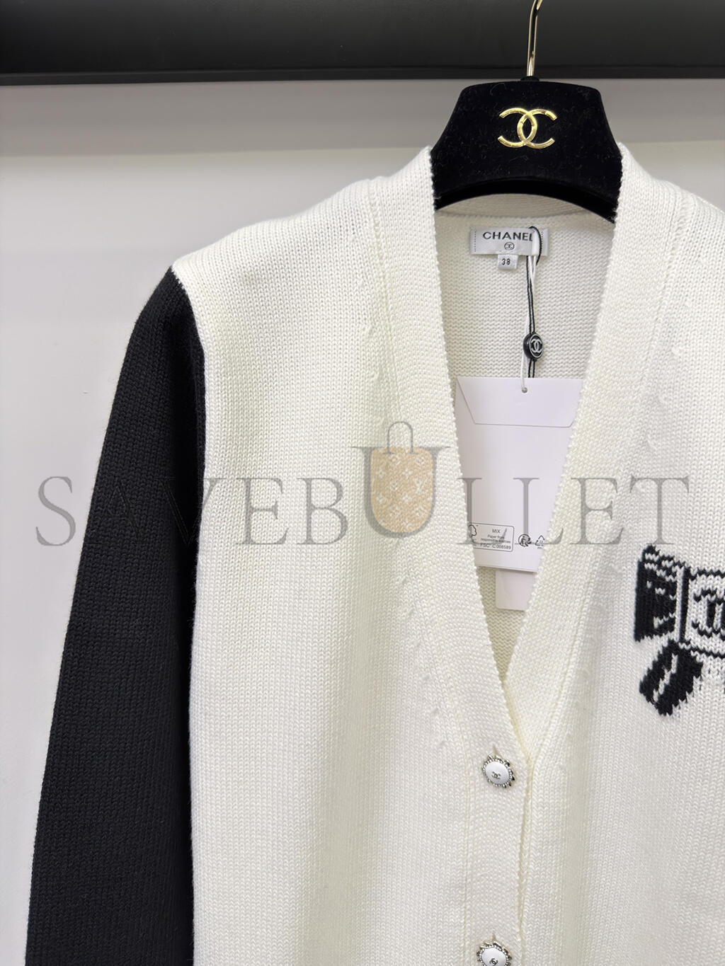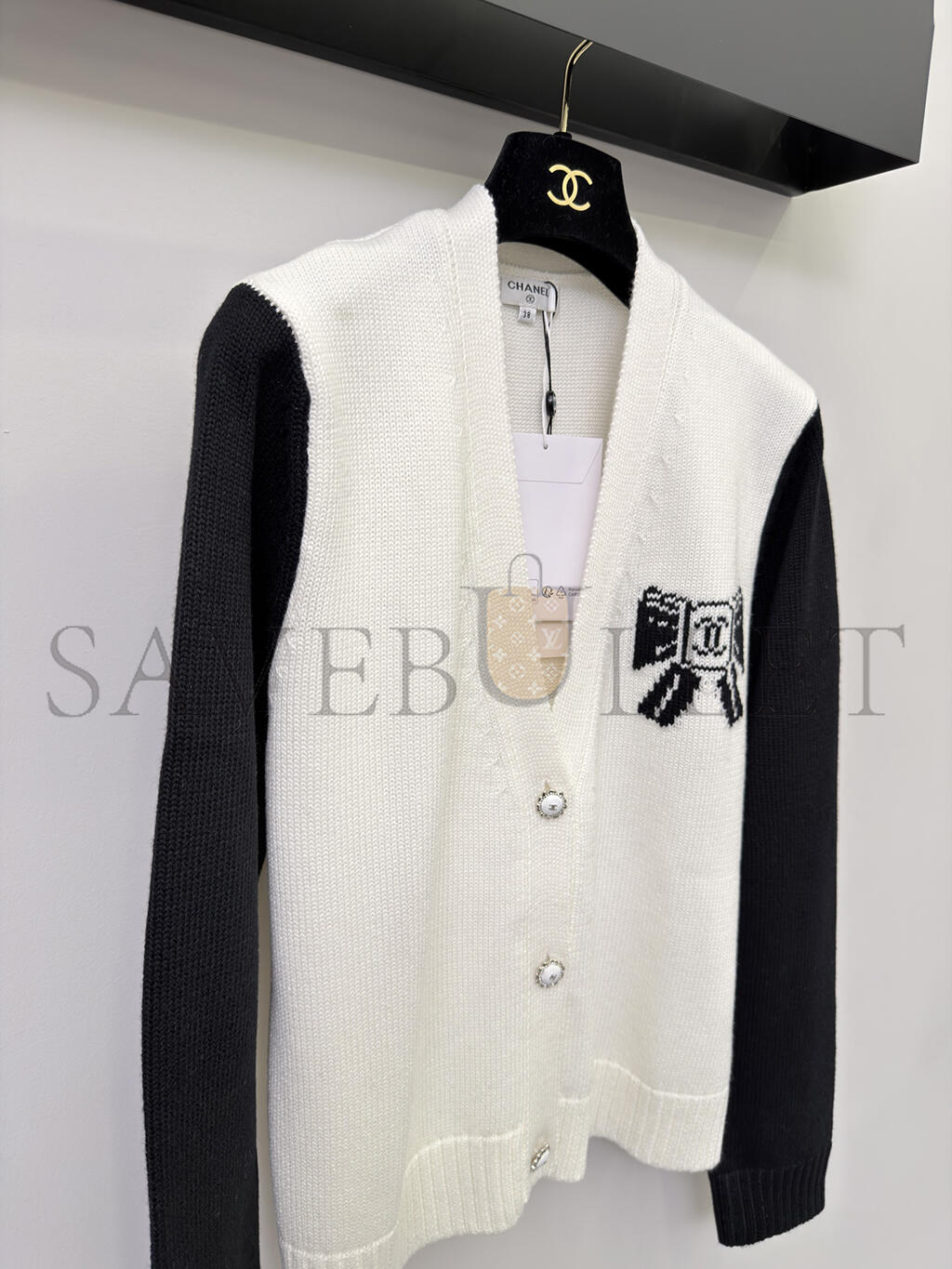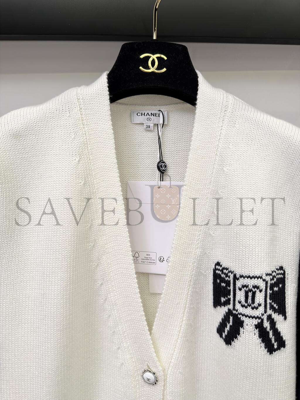 CHANEL BOW-KNIT V-NECK CARDIGAN