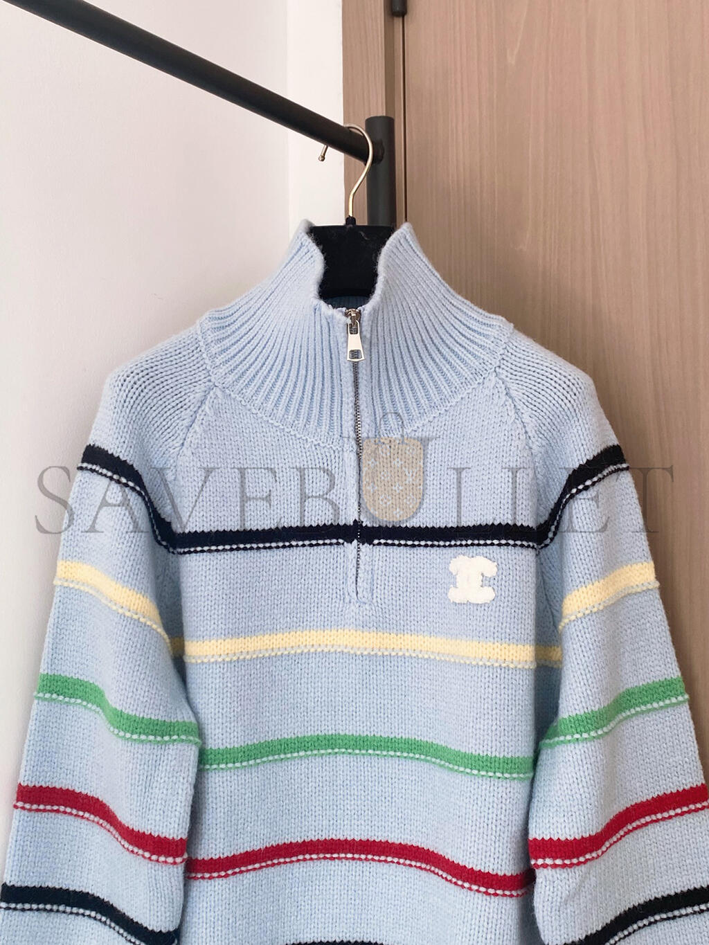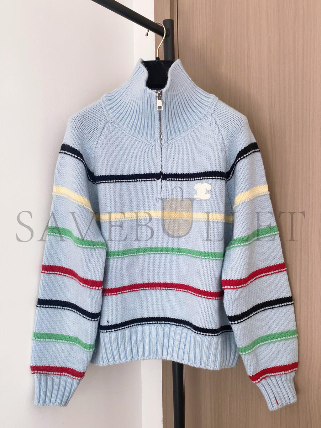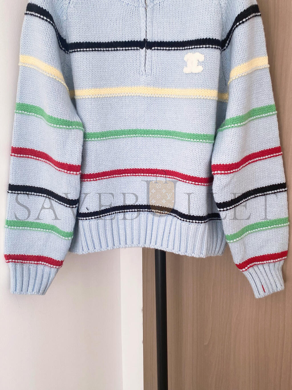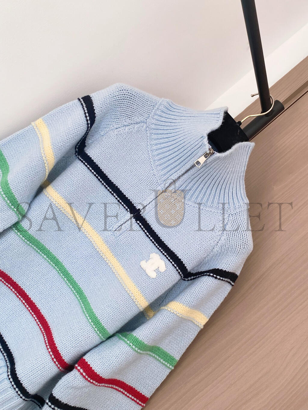 CHANEL COLORFUL STRIPED COLLARED ZIPPER KNIT LONG SLEEVE