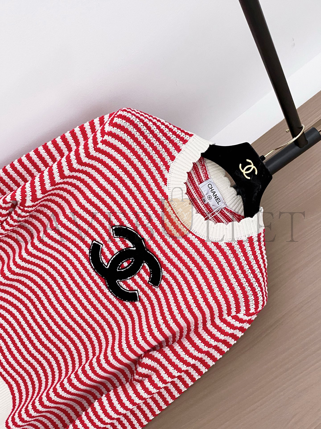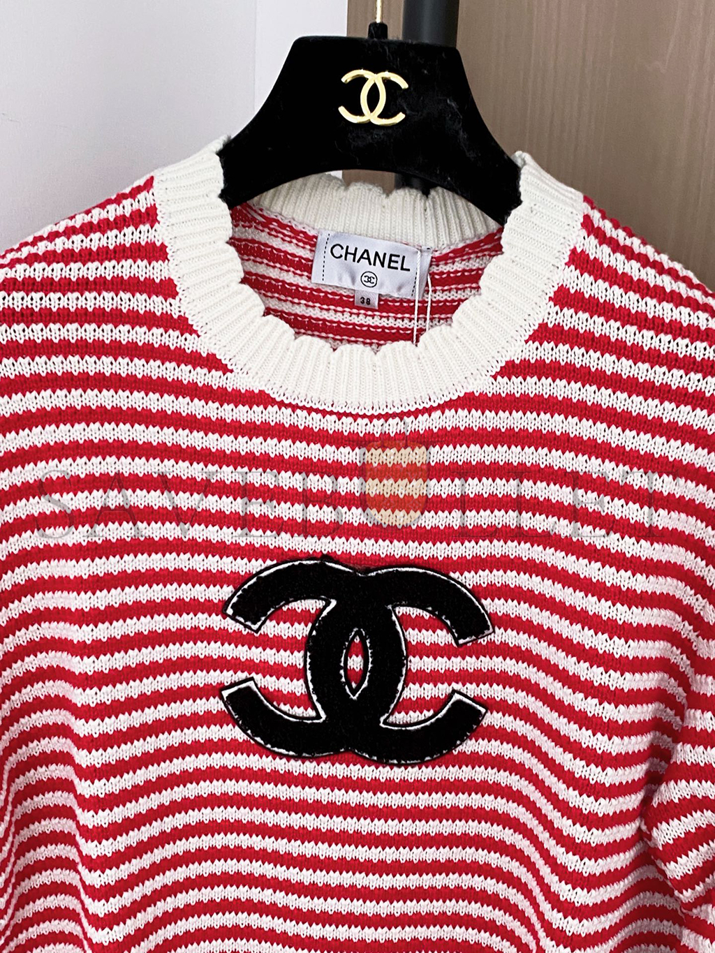 CHANEL STRIPED CC PULLOVER