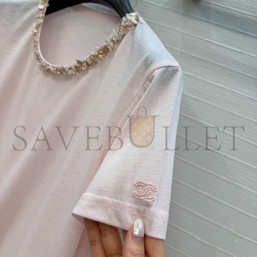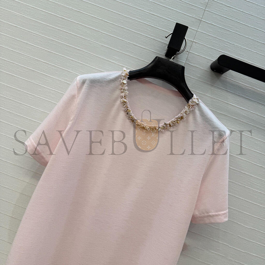 CHANEL SHORT-SLEEVE JEWEL NECK T-SHIRT