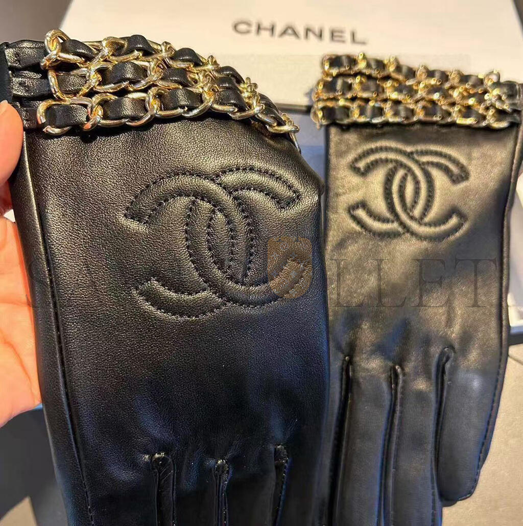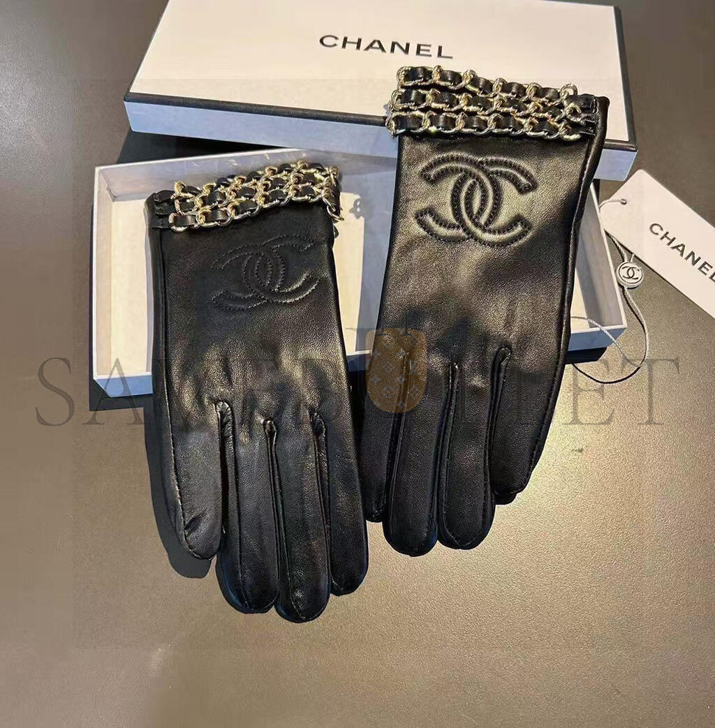 CHANEL LEATHER CHAIN GLOVES