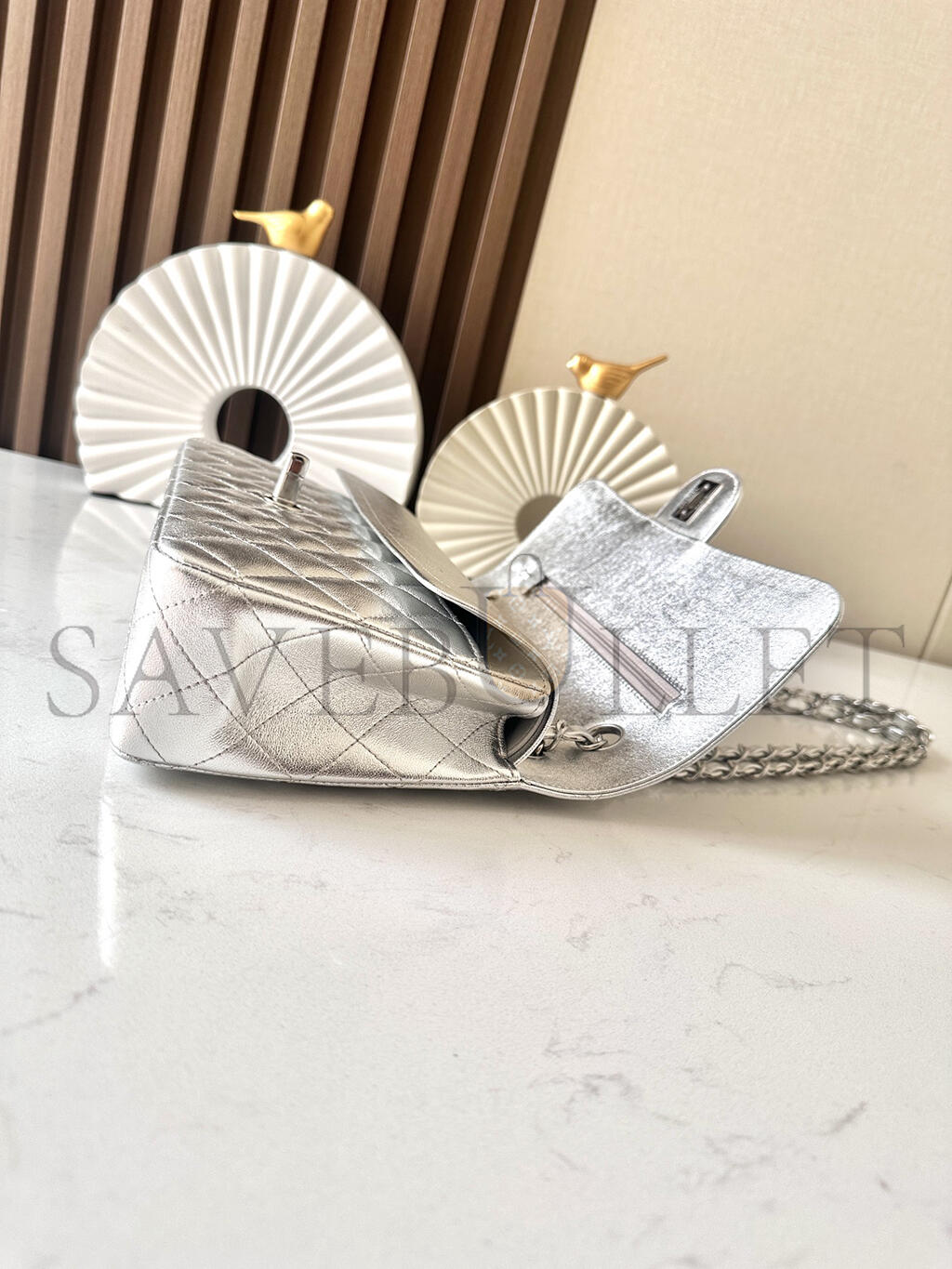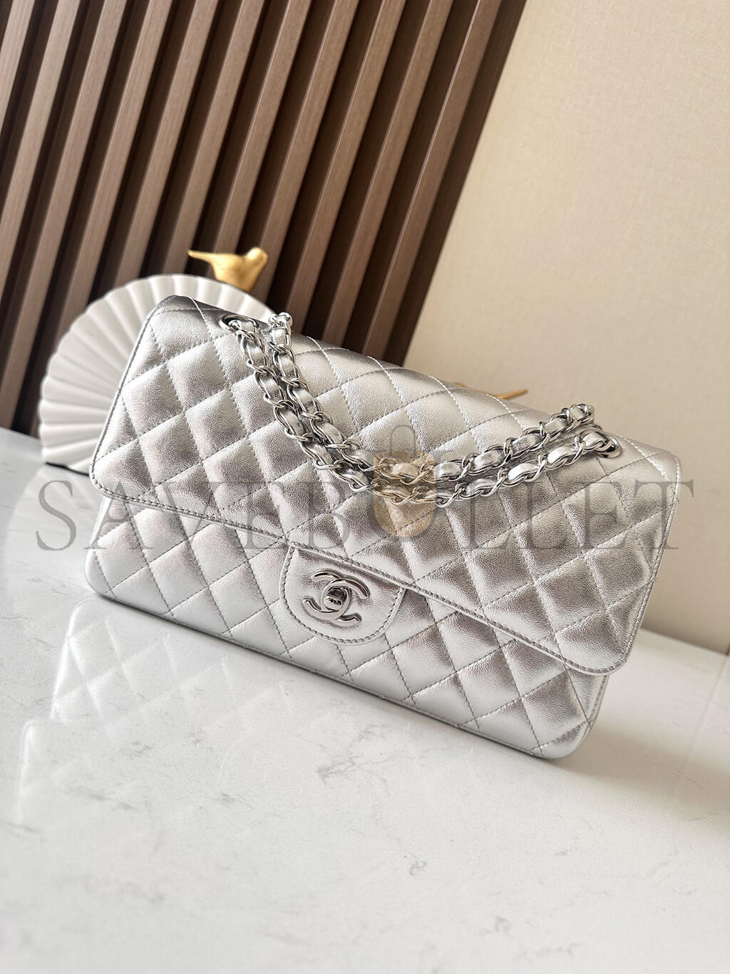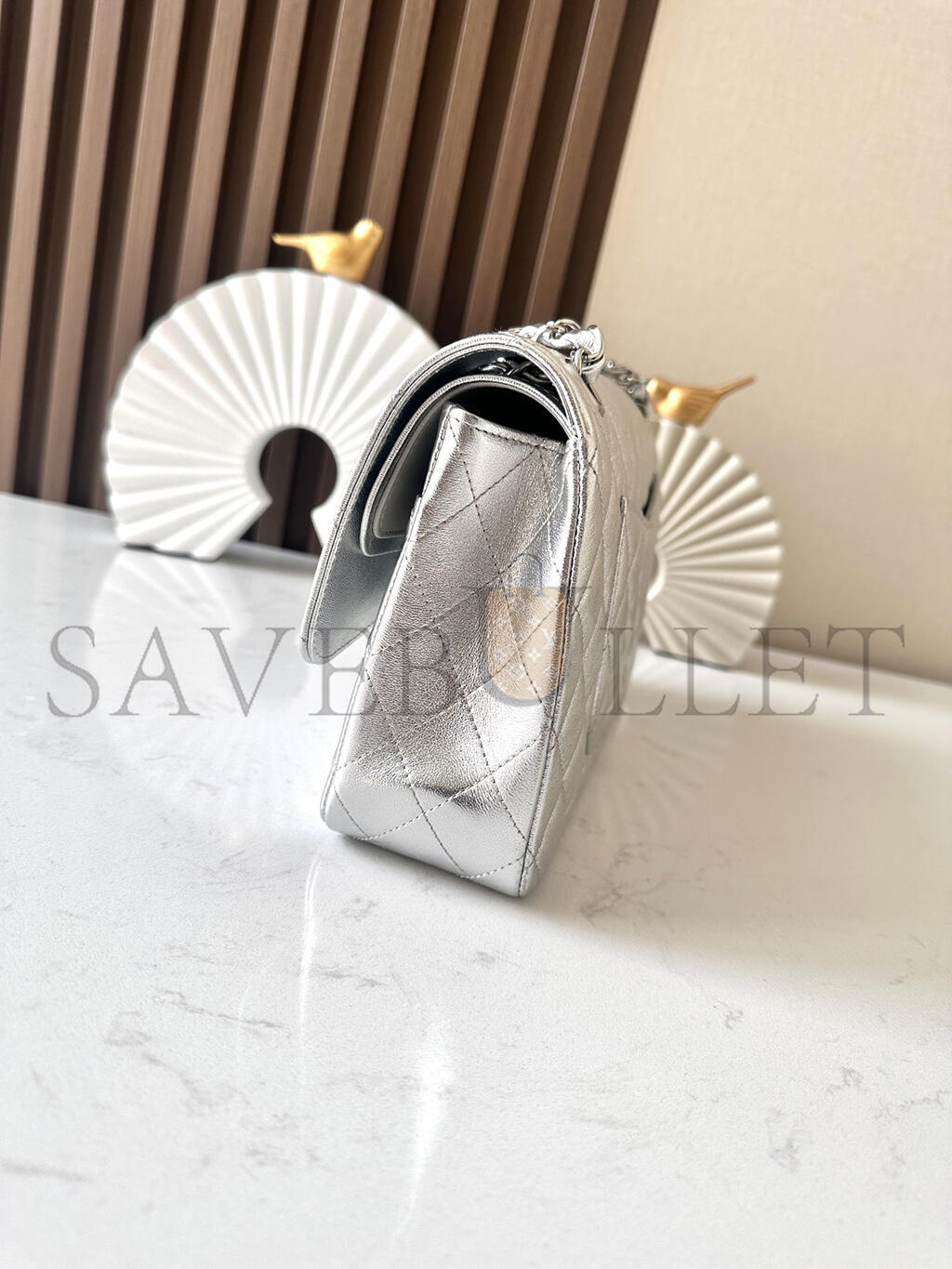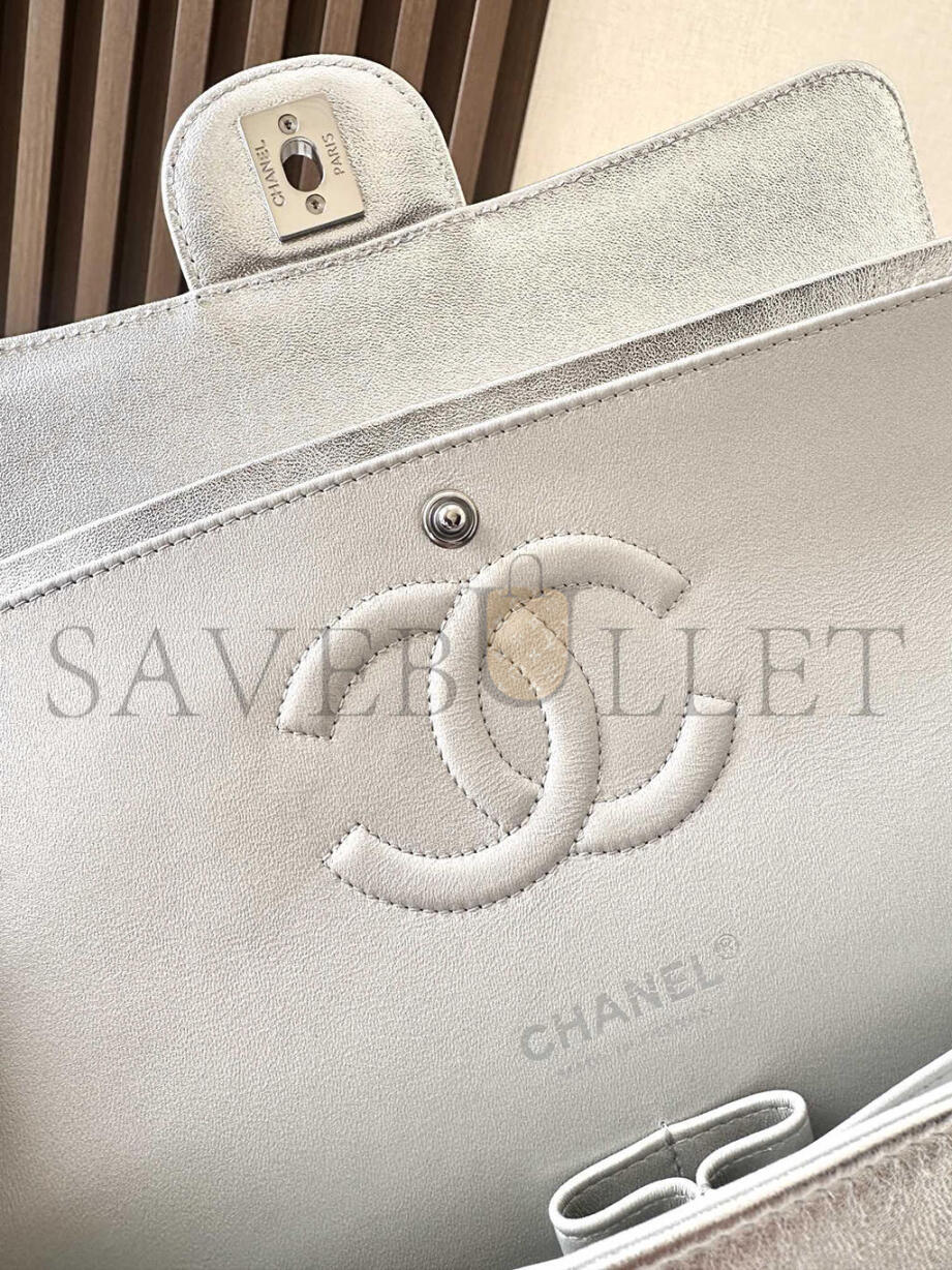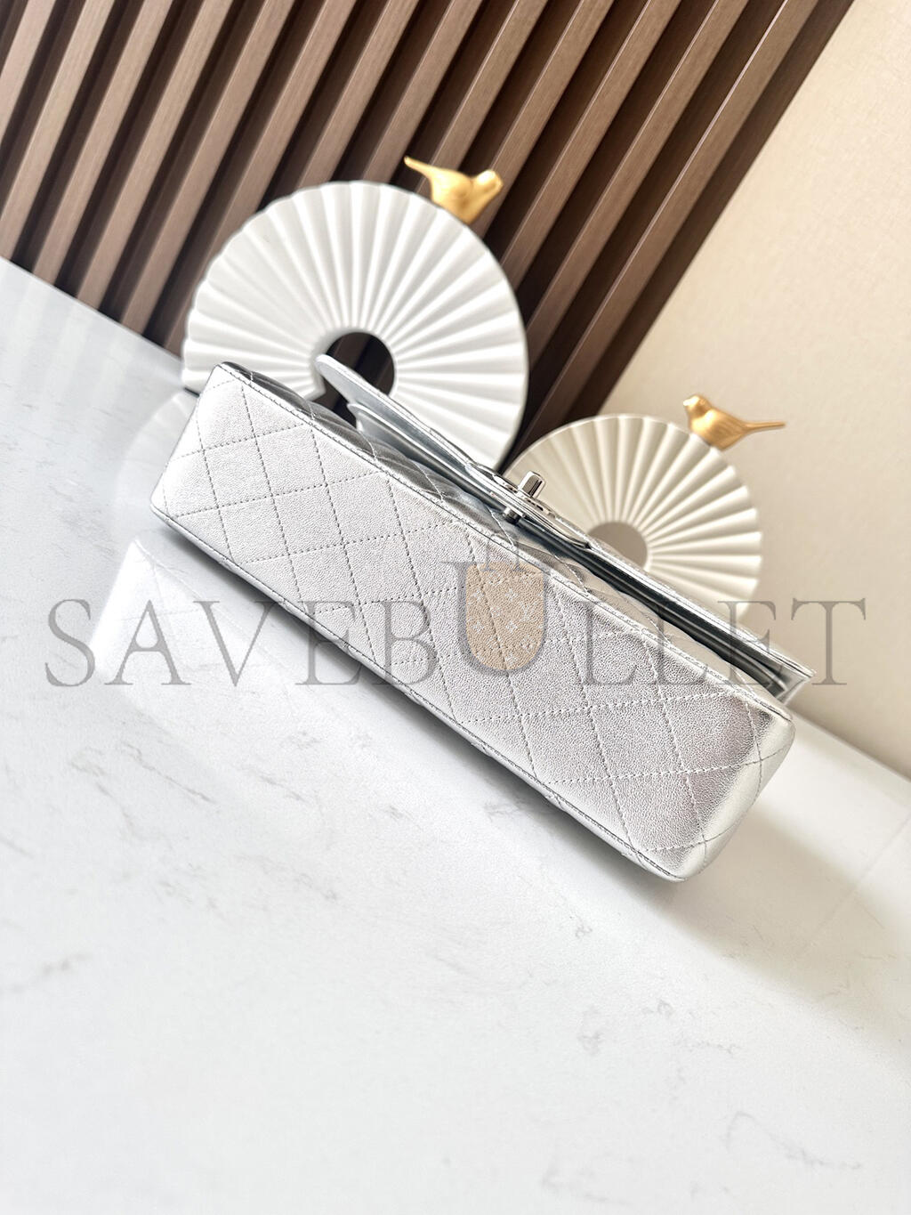 CHANEL SILVER METALLIC LAMBSKIN MEDIUM CLASSIC FLAP BAG A01112 (25.5*15*6cm)