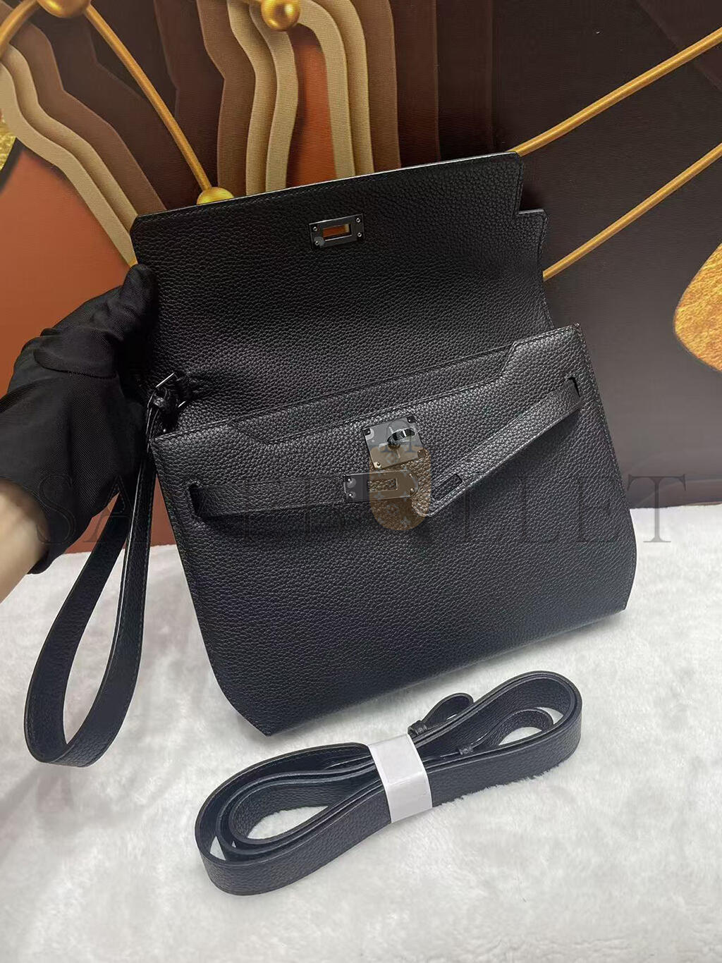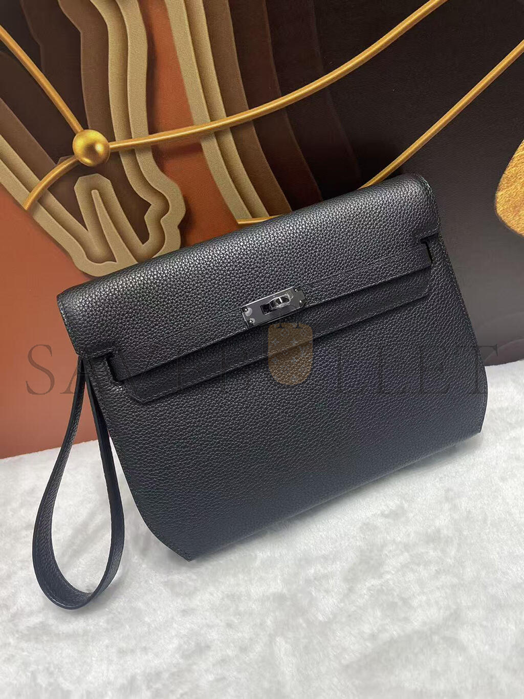 HERMES KELLY DEPECHES 25 MONOCHROME POUCH TOGO H082295CH89 (25.2*19.5*4cm)