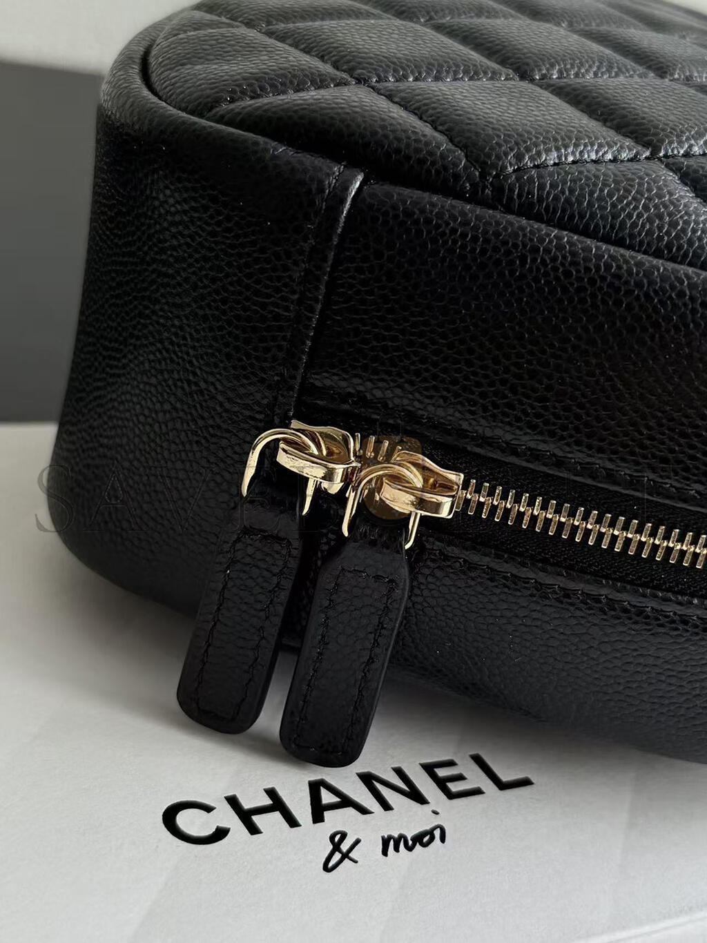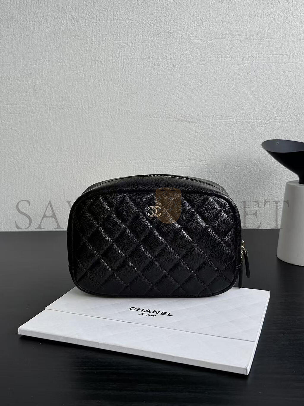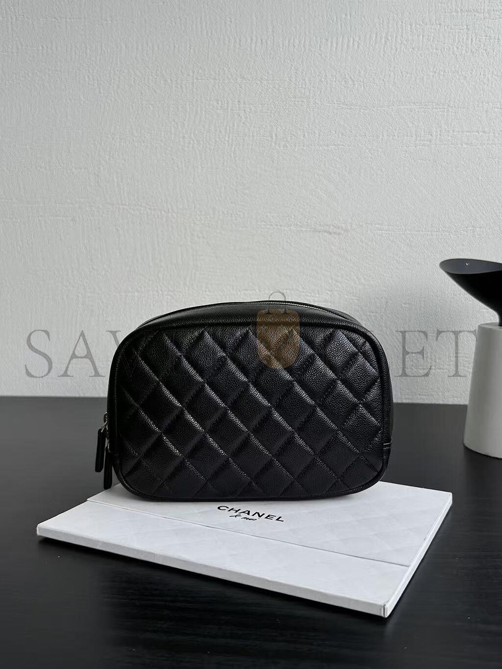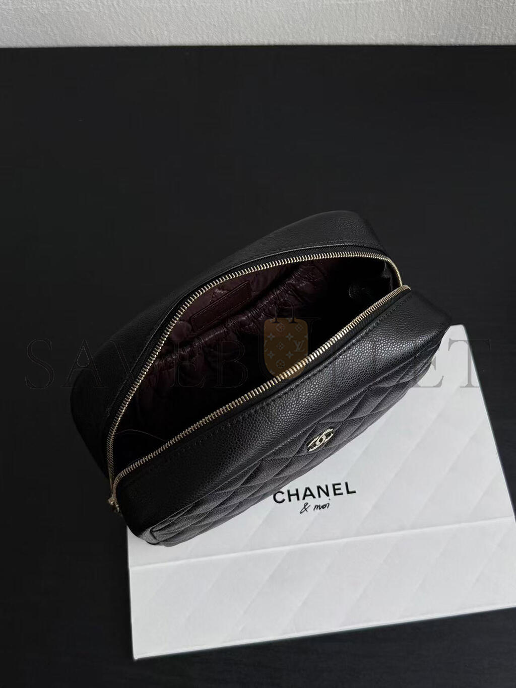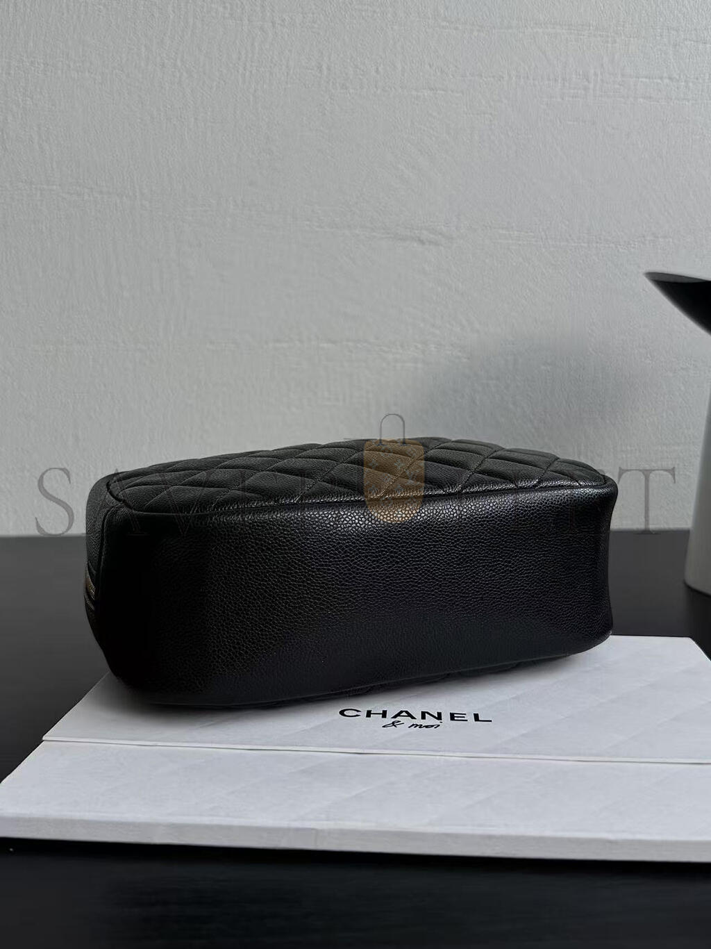 CHANEL CAVIAR QUILTED POUCH COSMETIC CASE GOLD HARDWARE (18.5*11*6cm)