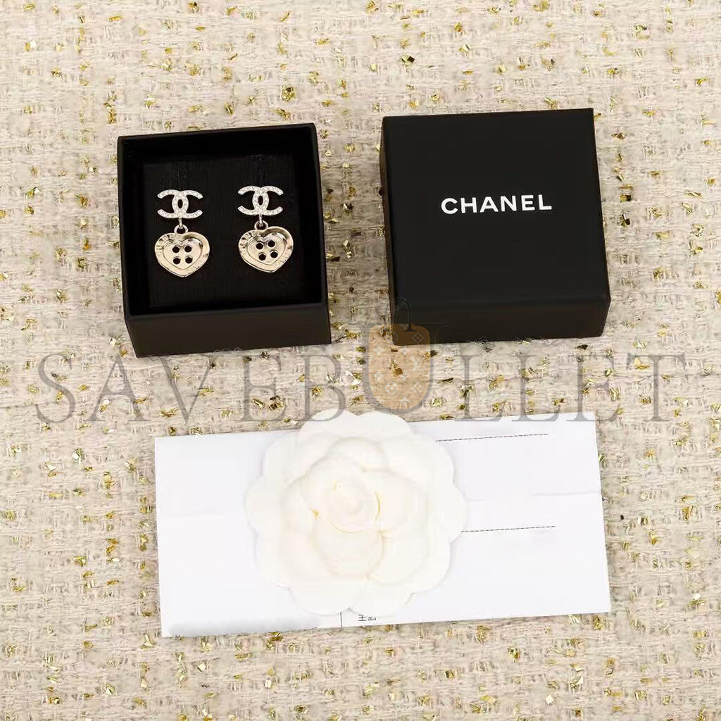 CHANEL HEART-SHAPED BUTTON PENDANT EARRINGS